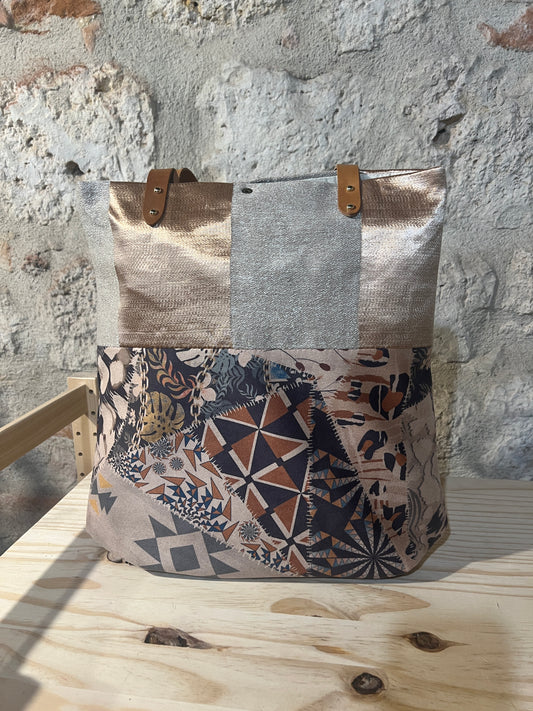 La Nuova Myrtillo realizzata in tessuto di tappezzeria con manici in pelle, foderata in cotone con una pratica tasca interna chiusa con zip, ha anche un pratico automatico per permettere una parziale chiusura in alto e inoltre all'interno adesso trovi anche un gancio in pelle per attacca le chiavi le pochette il portamonete....insomma tutto quello che hai bisogno di trovare al volo, per me la pratica pochette porta occhiali!!!