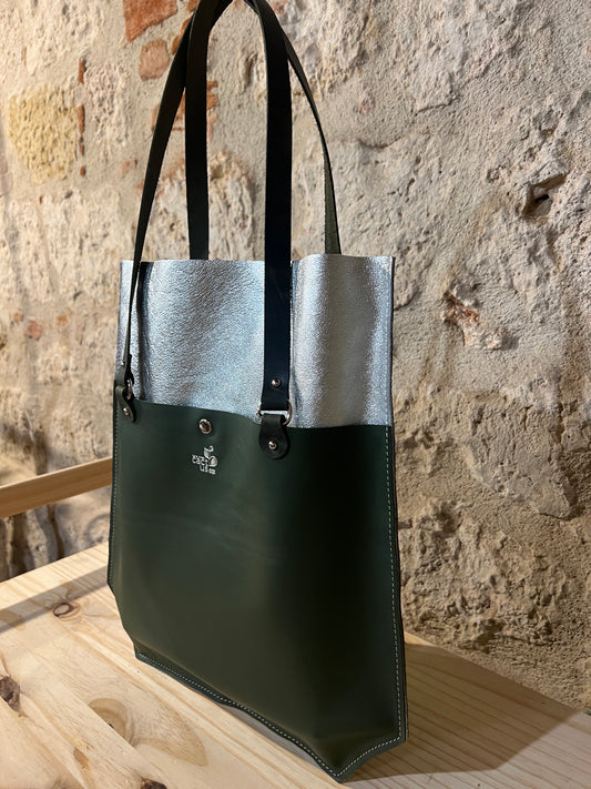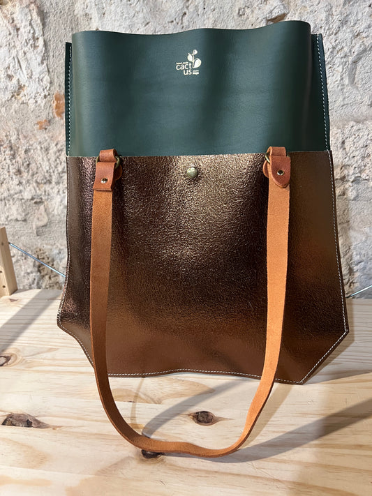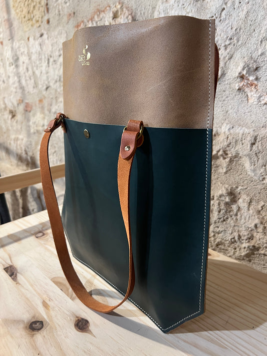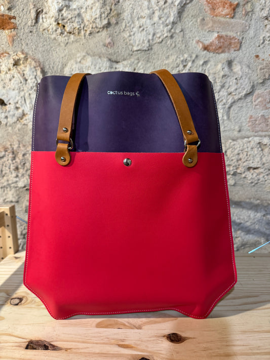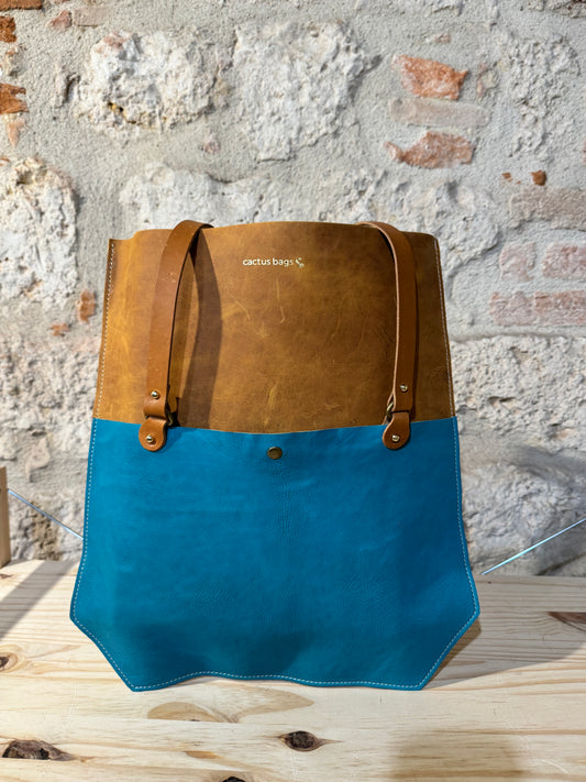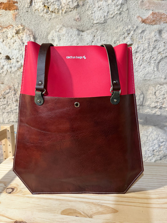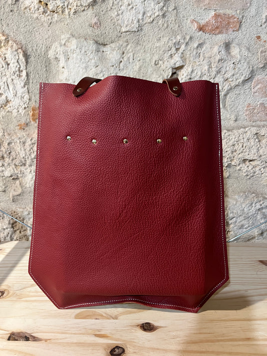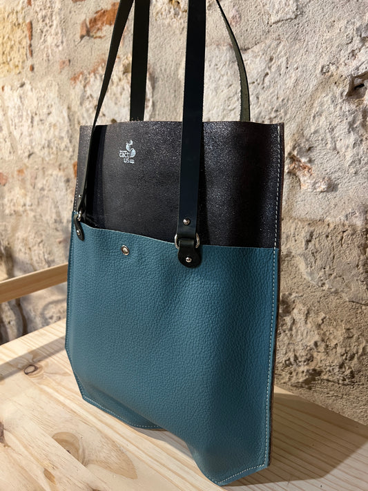 Composte da tre pannelli in pelle, il dietro il davanti e la tasca che si chiude e aderisce grazie all'automatico.