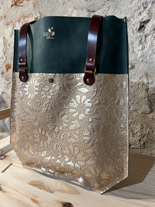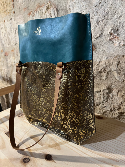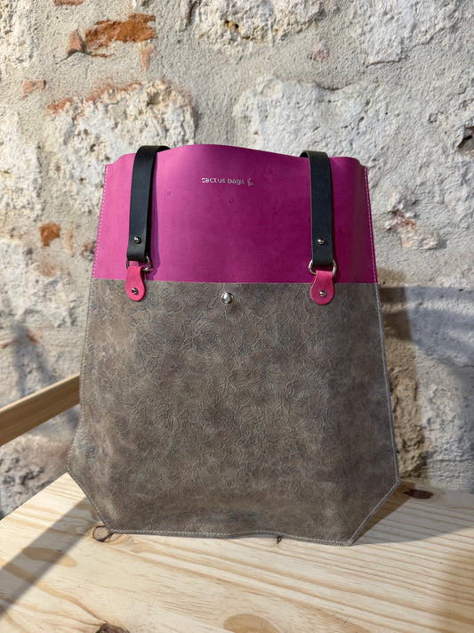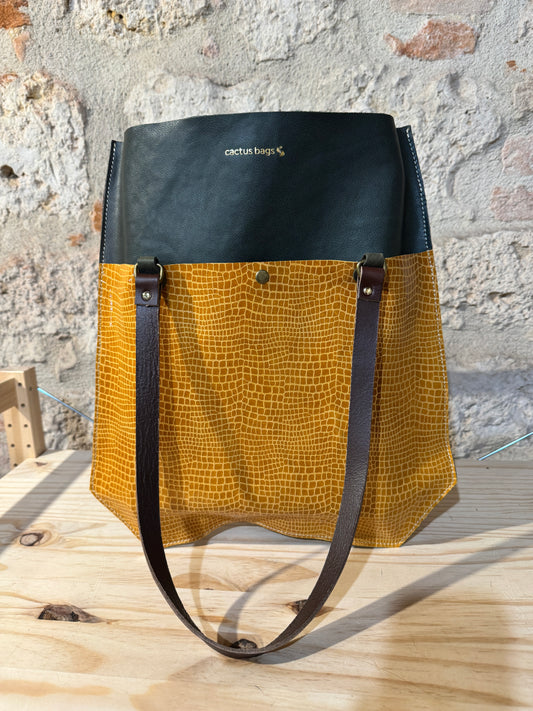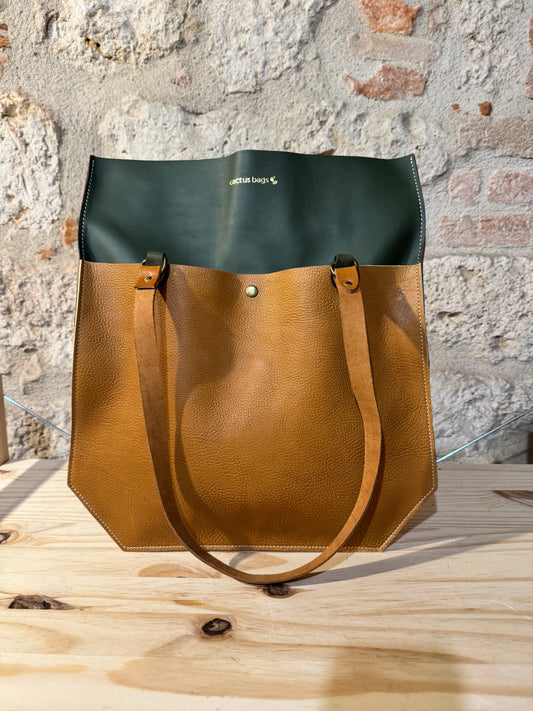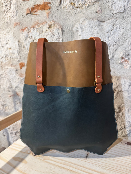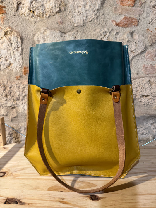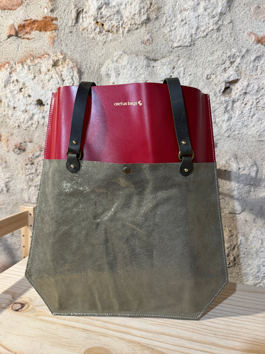 Composte da tre pannelli in pelle, il dietro il davanti e la tasca che si chiude e aderisce grazie all'automatico.