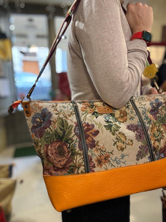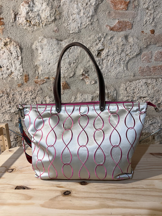 Orbea in Tessuto si presenta completamente revisionata rispetto a gli anni scorsi, resta una borsa completamente in tessuto per adattarsi alla primavera estate quindi molto leggera ma super capiente, i manici restano in pelle, ma qui arriva la grande novità, è chiusa con cerniera!!!!!