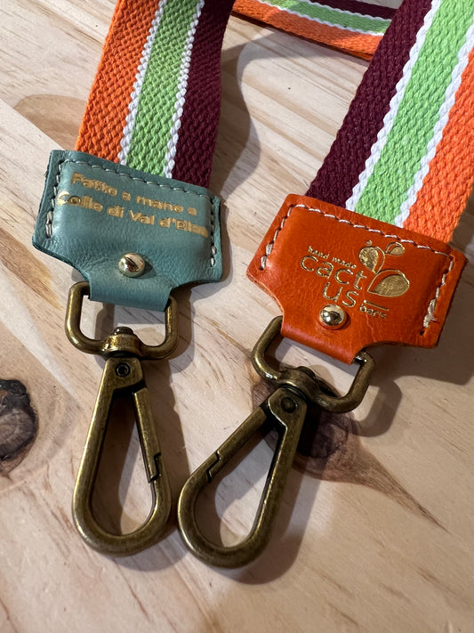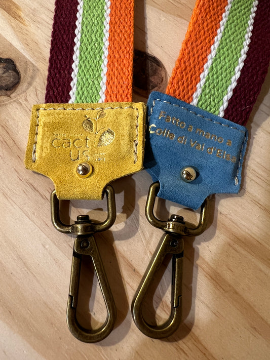 A completare una serie di accessori abbinabili ai vari modelli di borse, arriva la tracolla in tessuto con rifiniture in pelle.