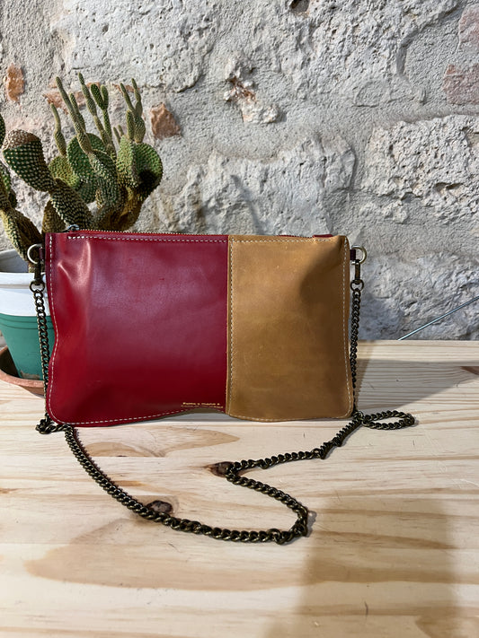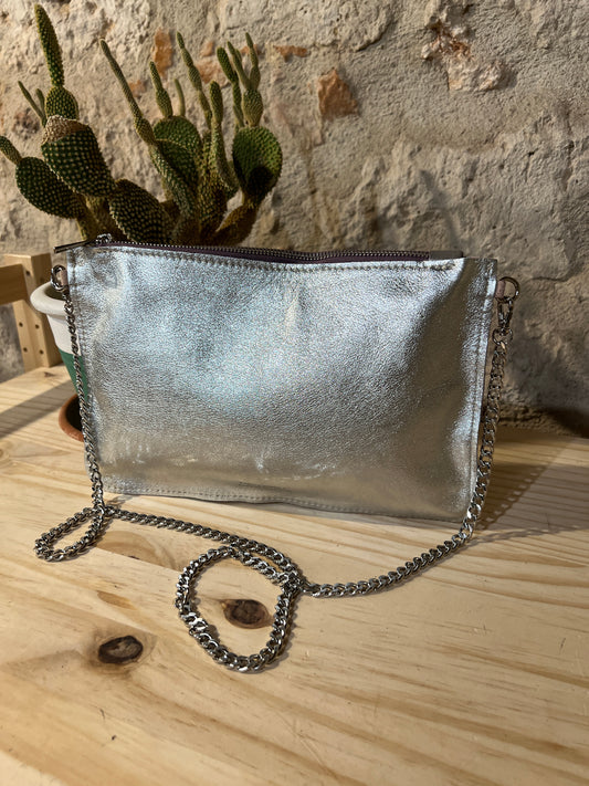 Yucca è la pochette completamente in pelle chiusa con cerniera, e completata dalla tracolla in metallo.