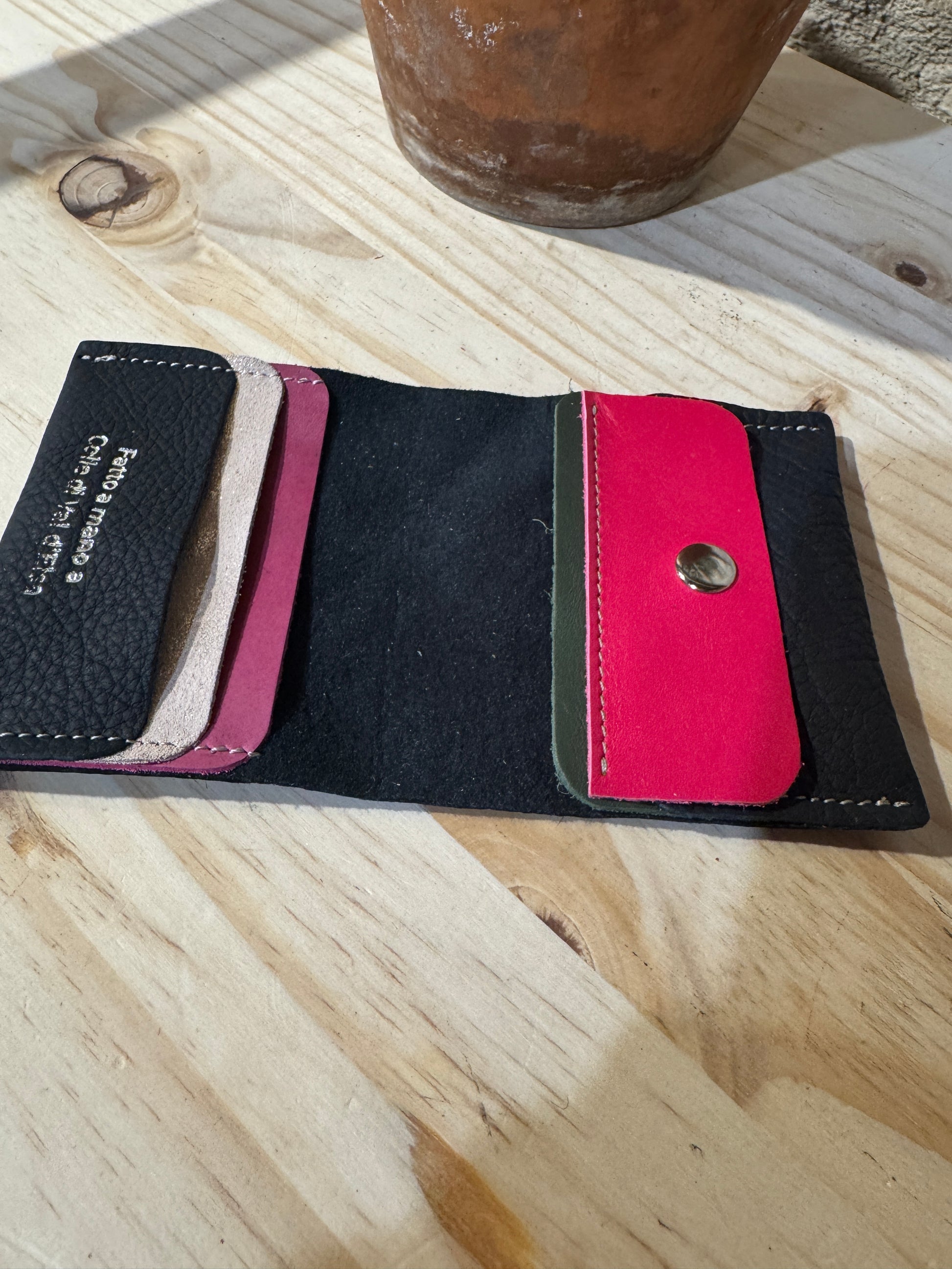 ADENIA, composto da 4 porta tessera più il portamonete, piccolo abbastanza da stare comodamente nella tasca dei pantaloni, ma non solo, perfettamente adattabile all'interno di tutti i Saguarini, Yucca, Aloe....
