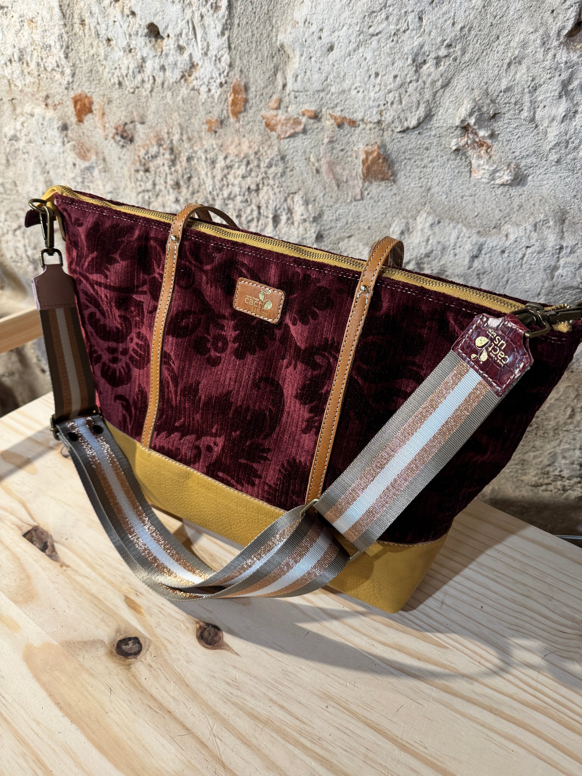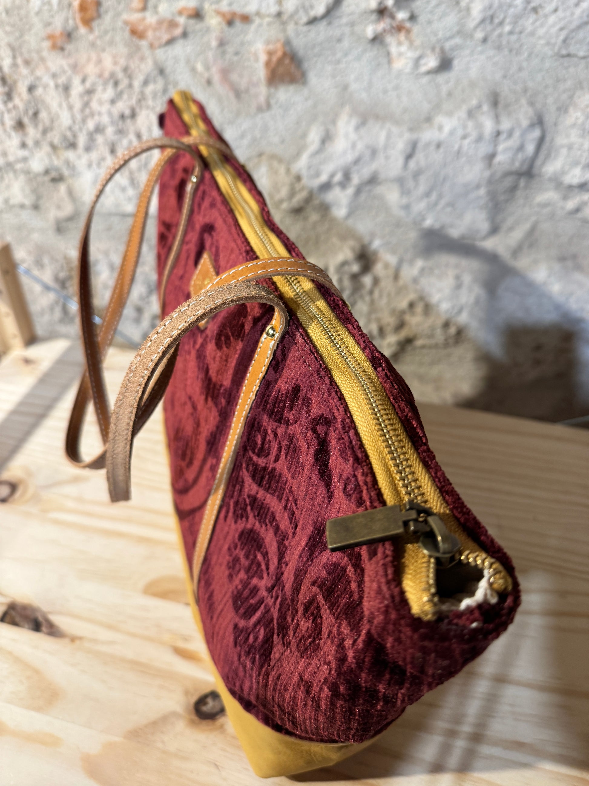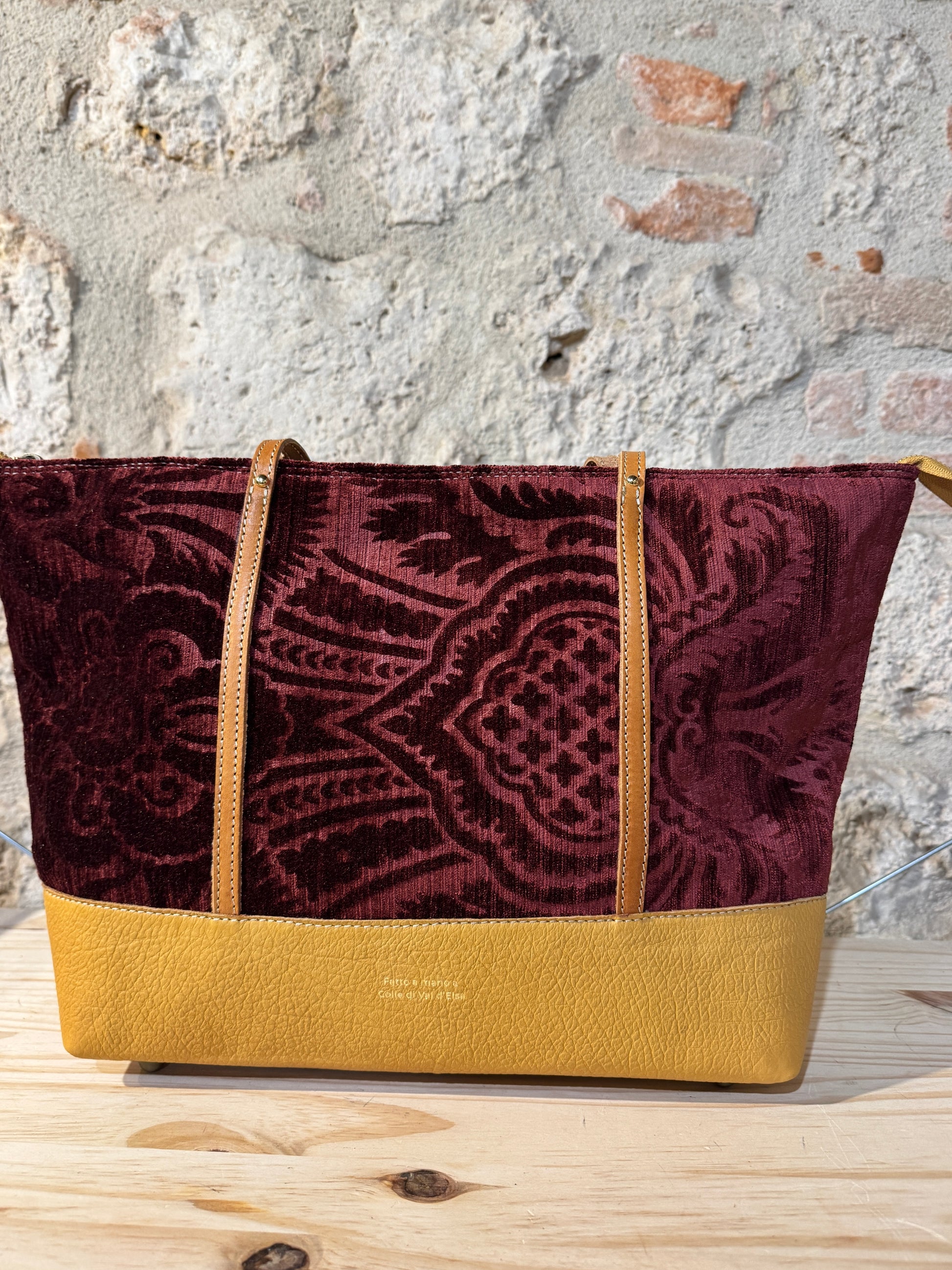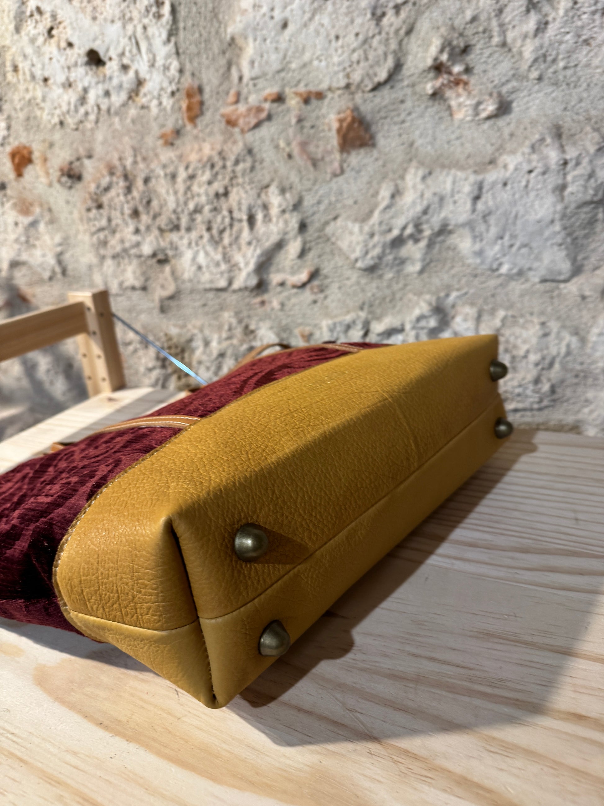 BORSA IN TESSUTO E MANICI E RIFINITURE IN PELLE