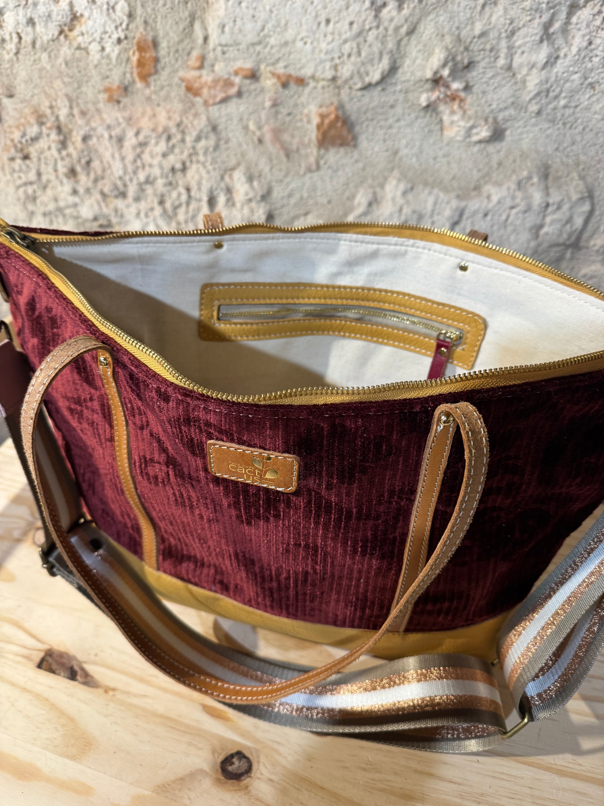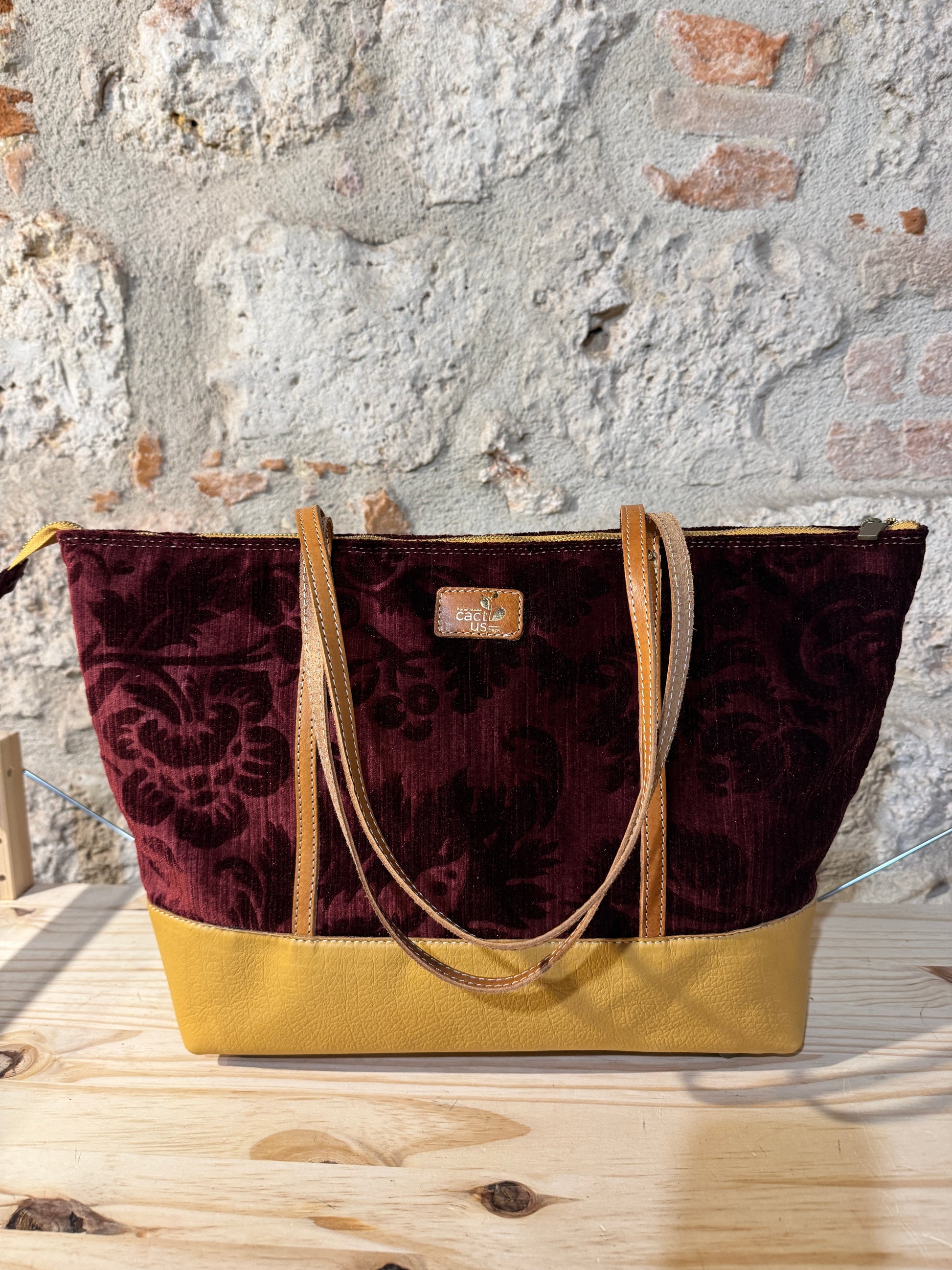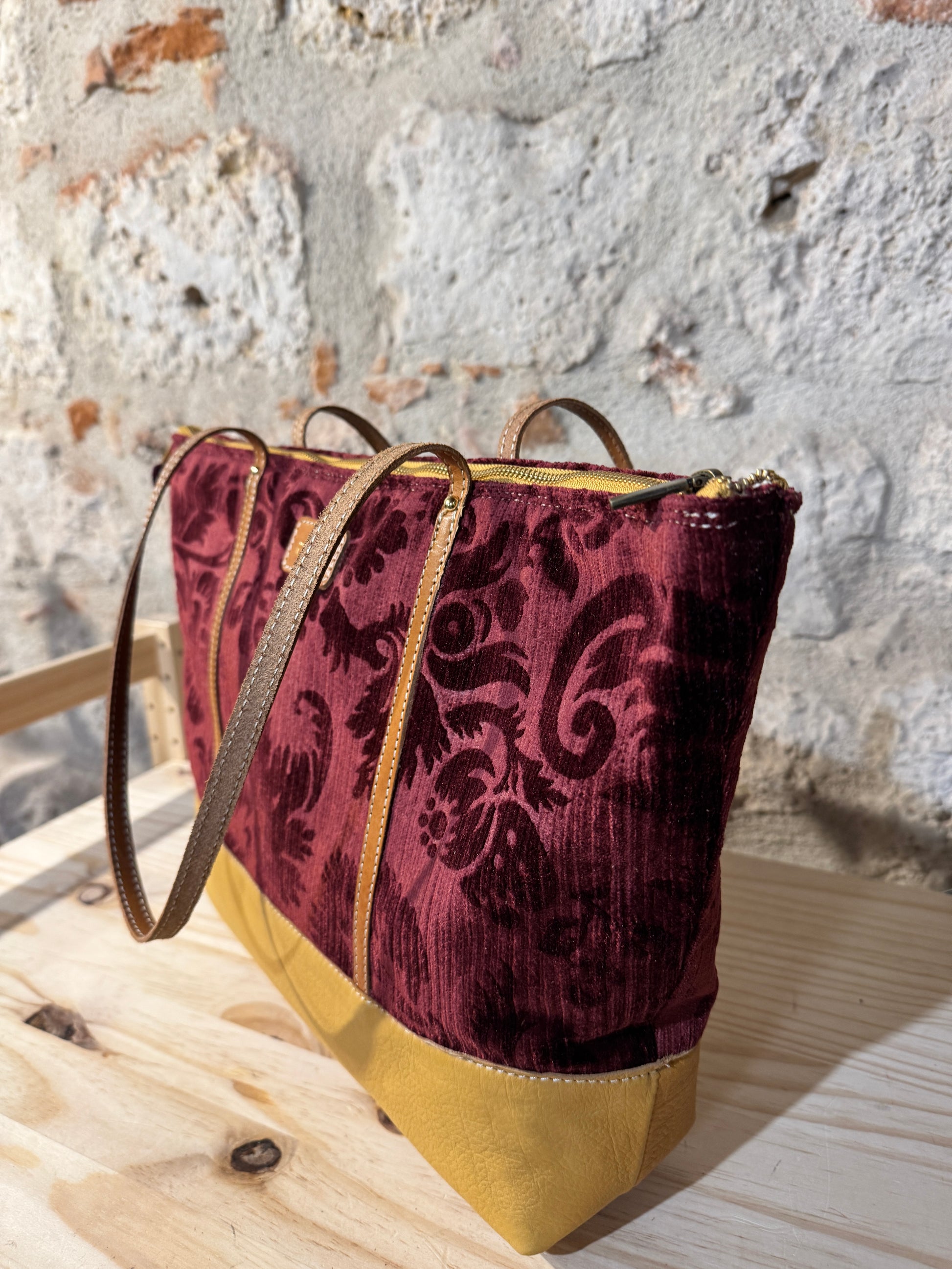 BORSA IN TESSUTO E MANICI E RIFINITURE IN PELLE