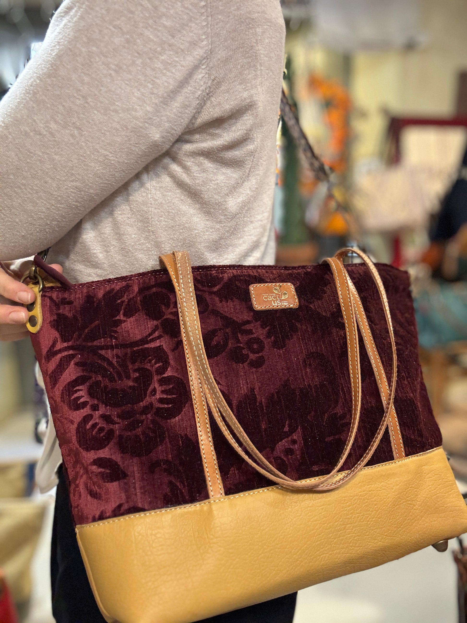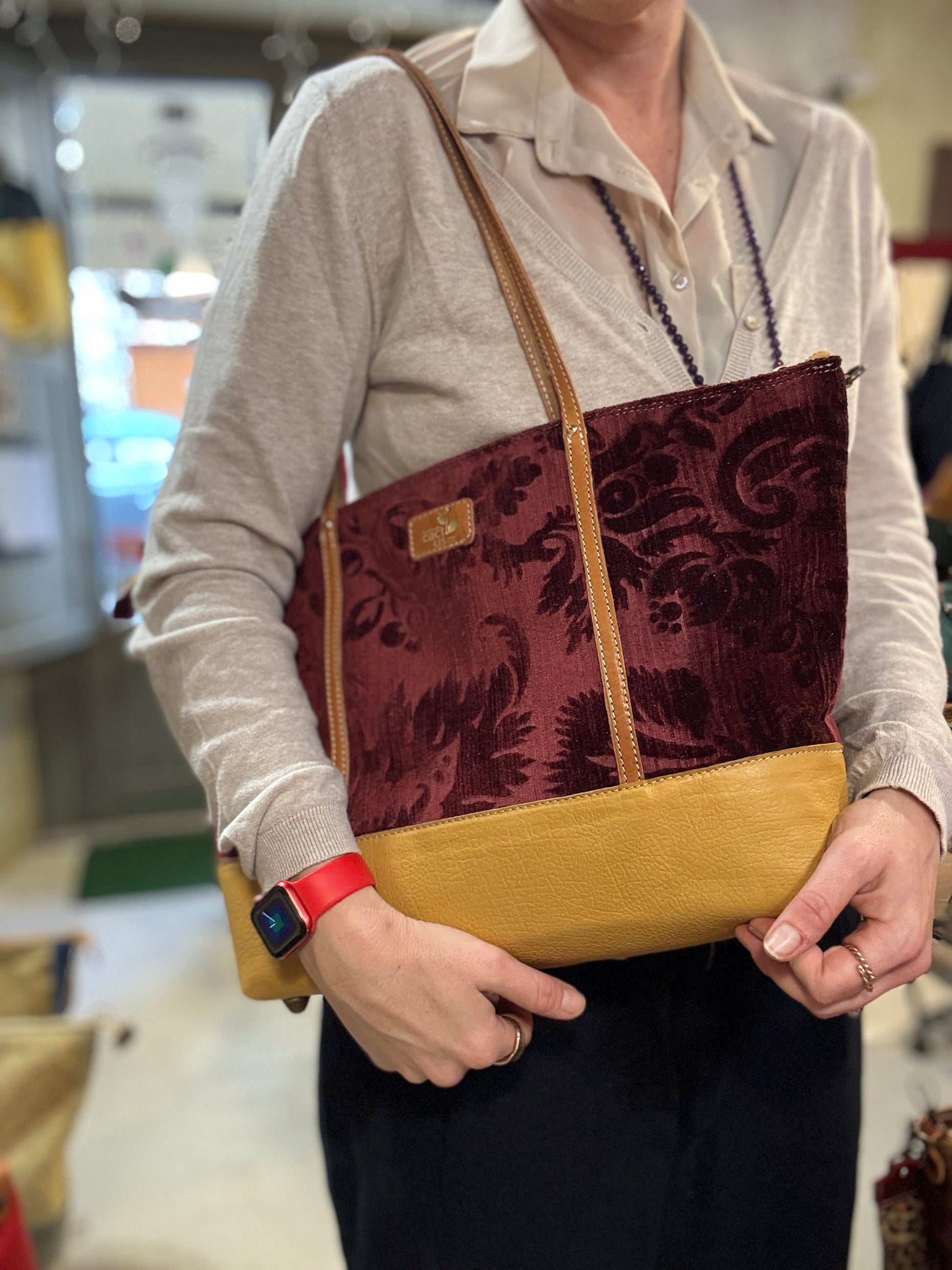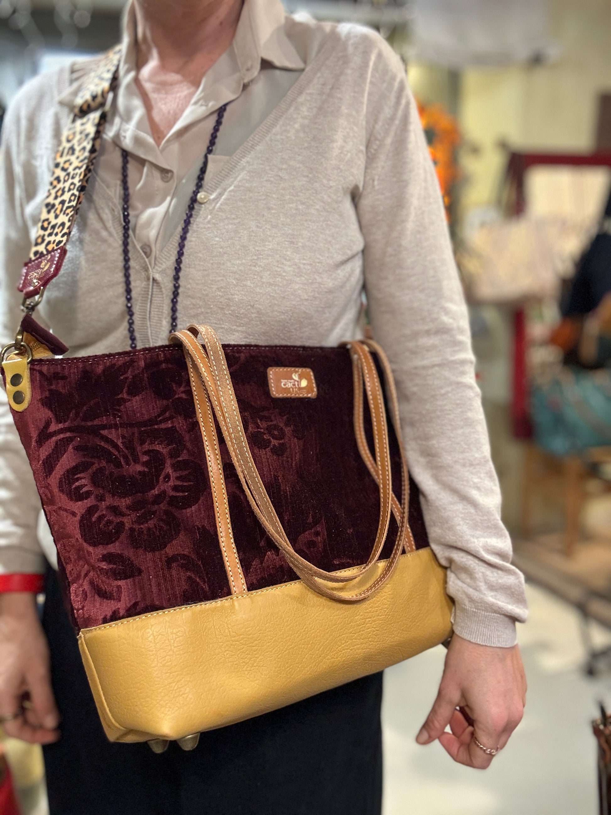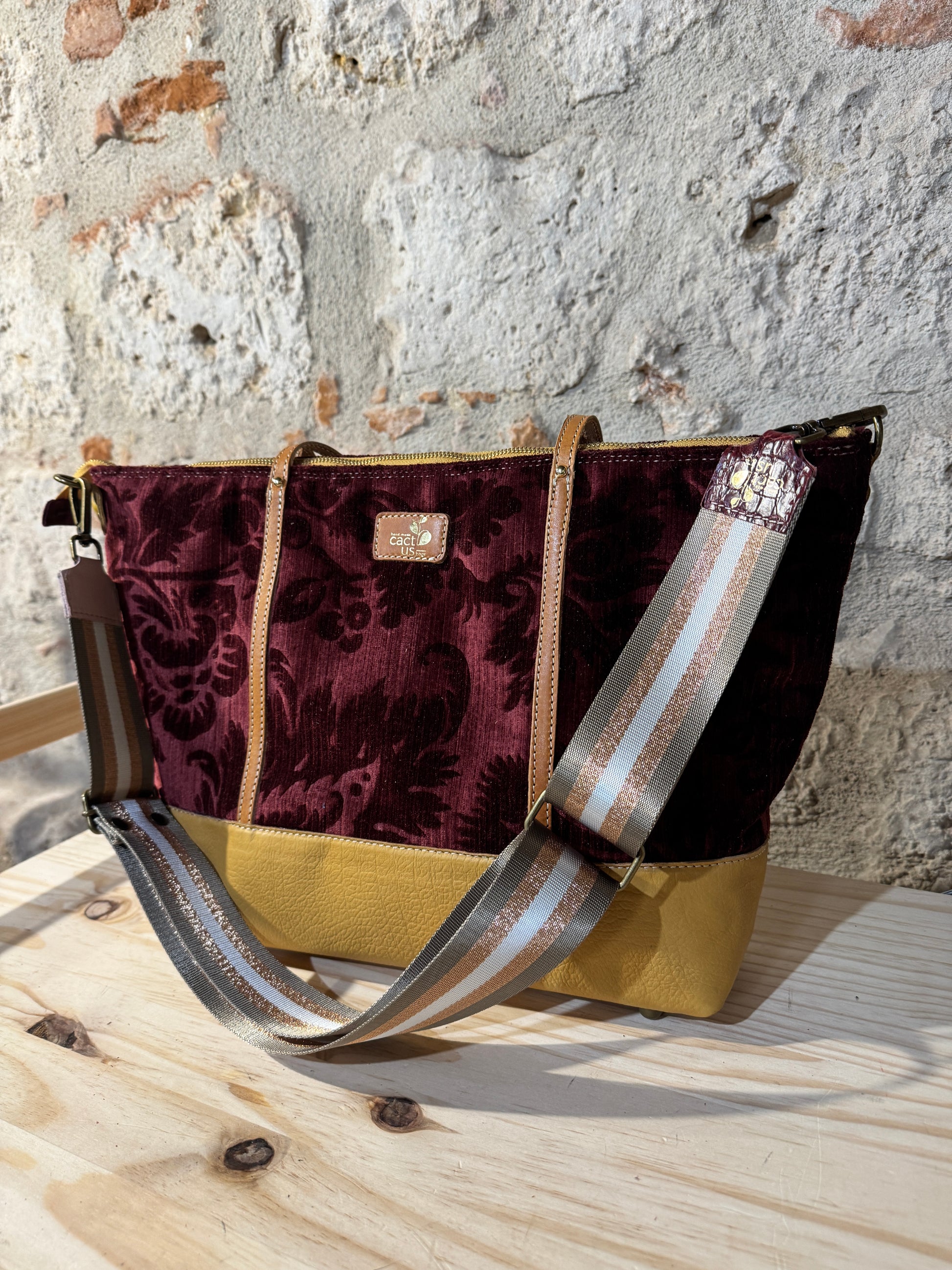 BORSA IN TESSUTO E MANICI E RIFINITURE IN PELLE