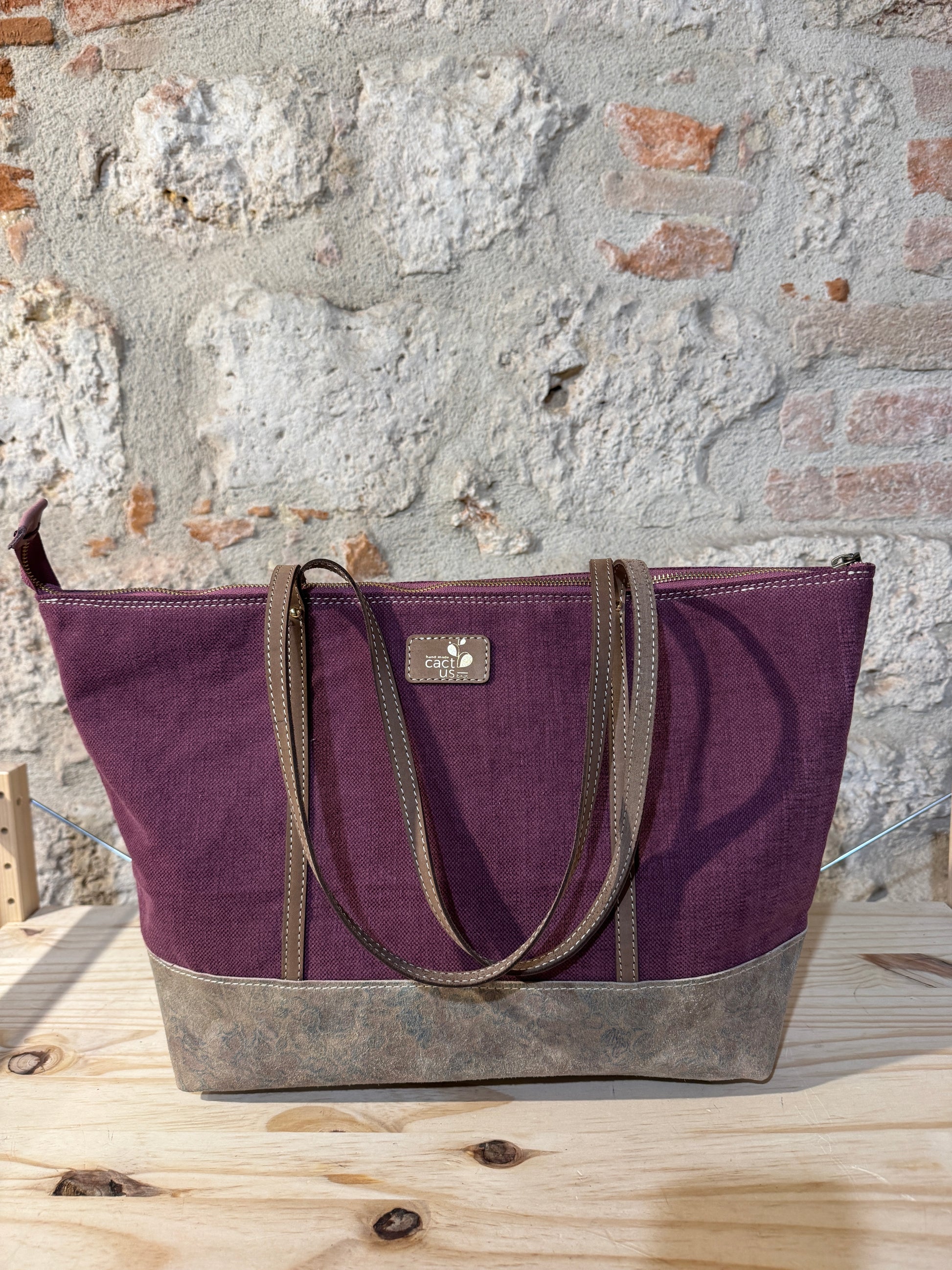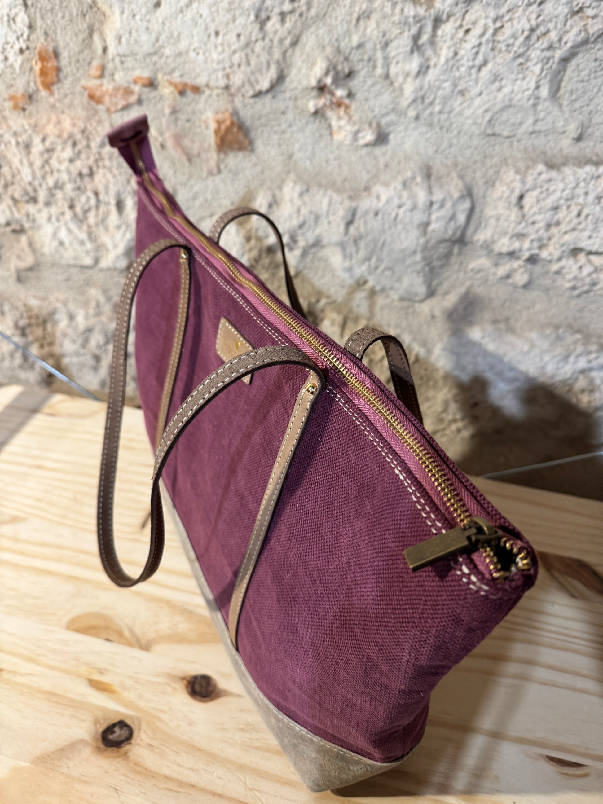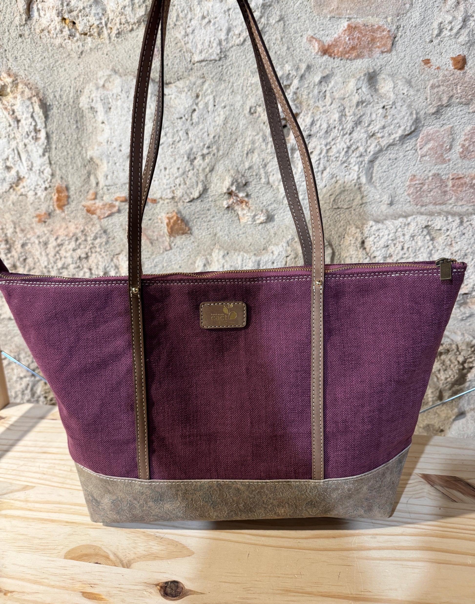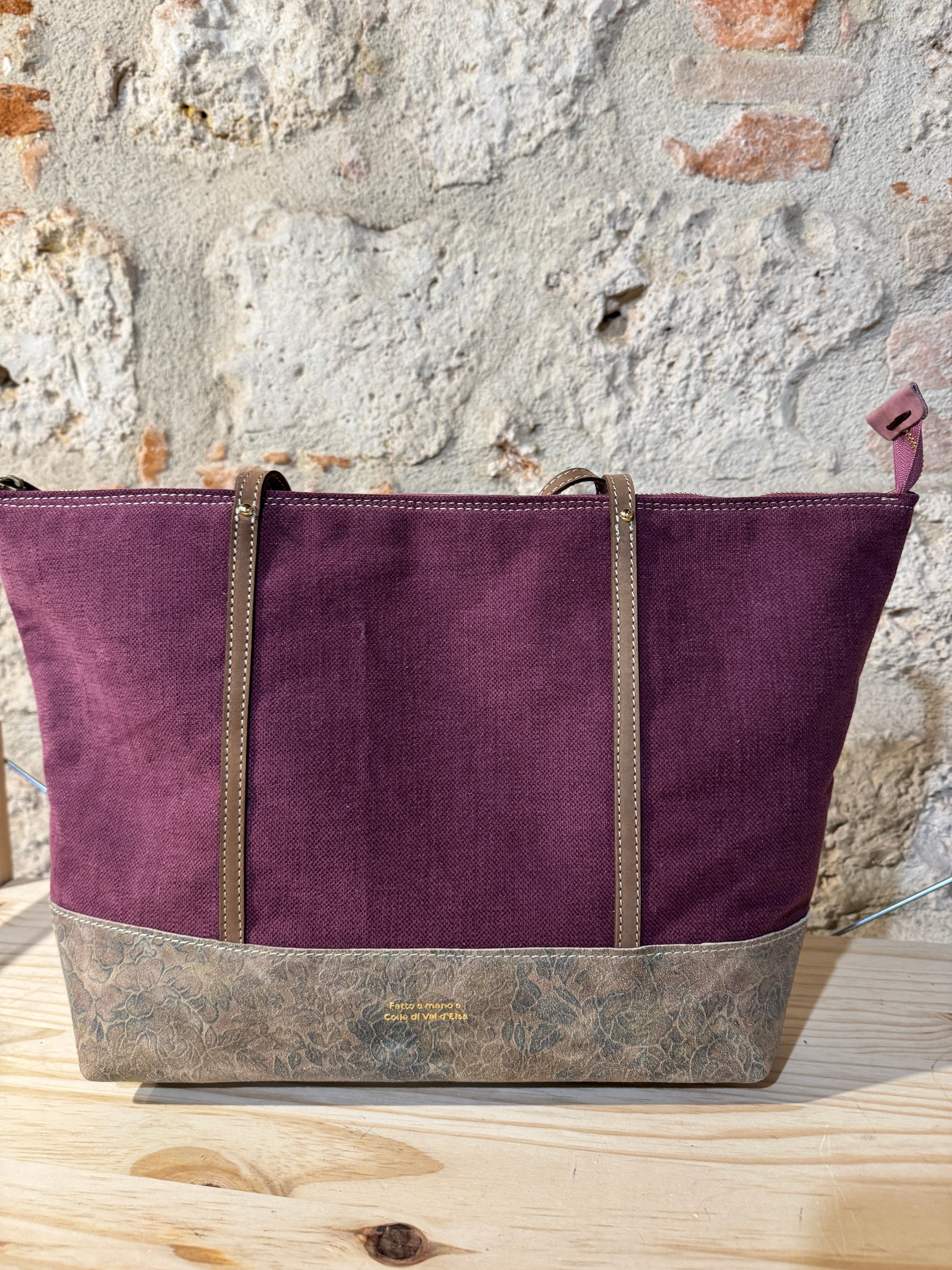 BORSA IN TESSUTO E MANICI E RIFINITURE IN PELLE