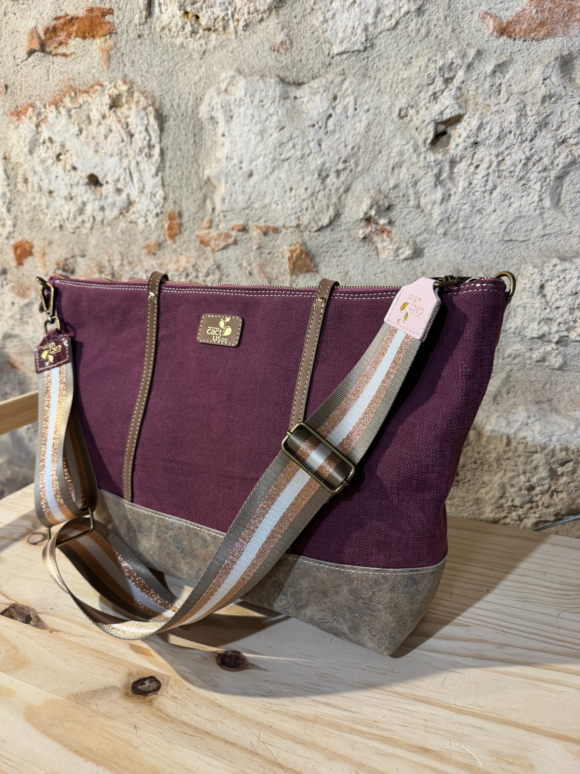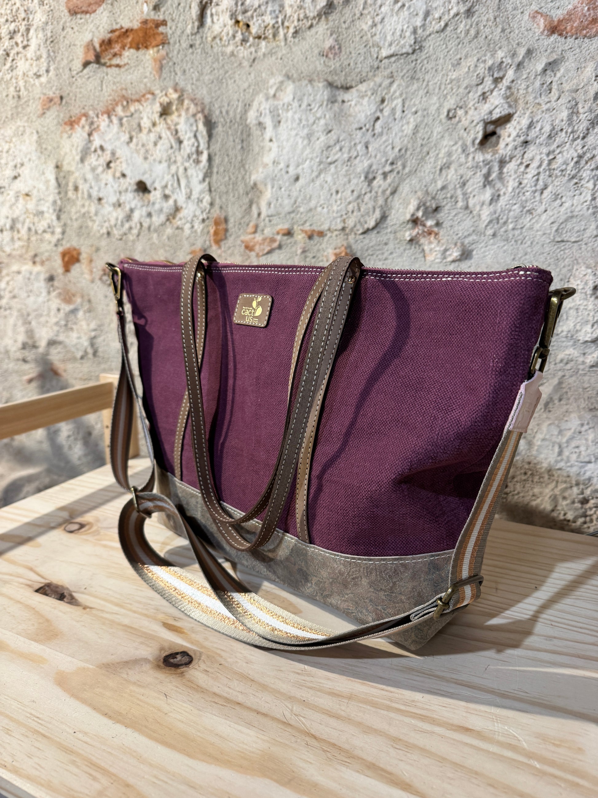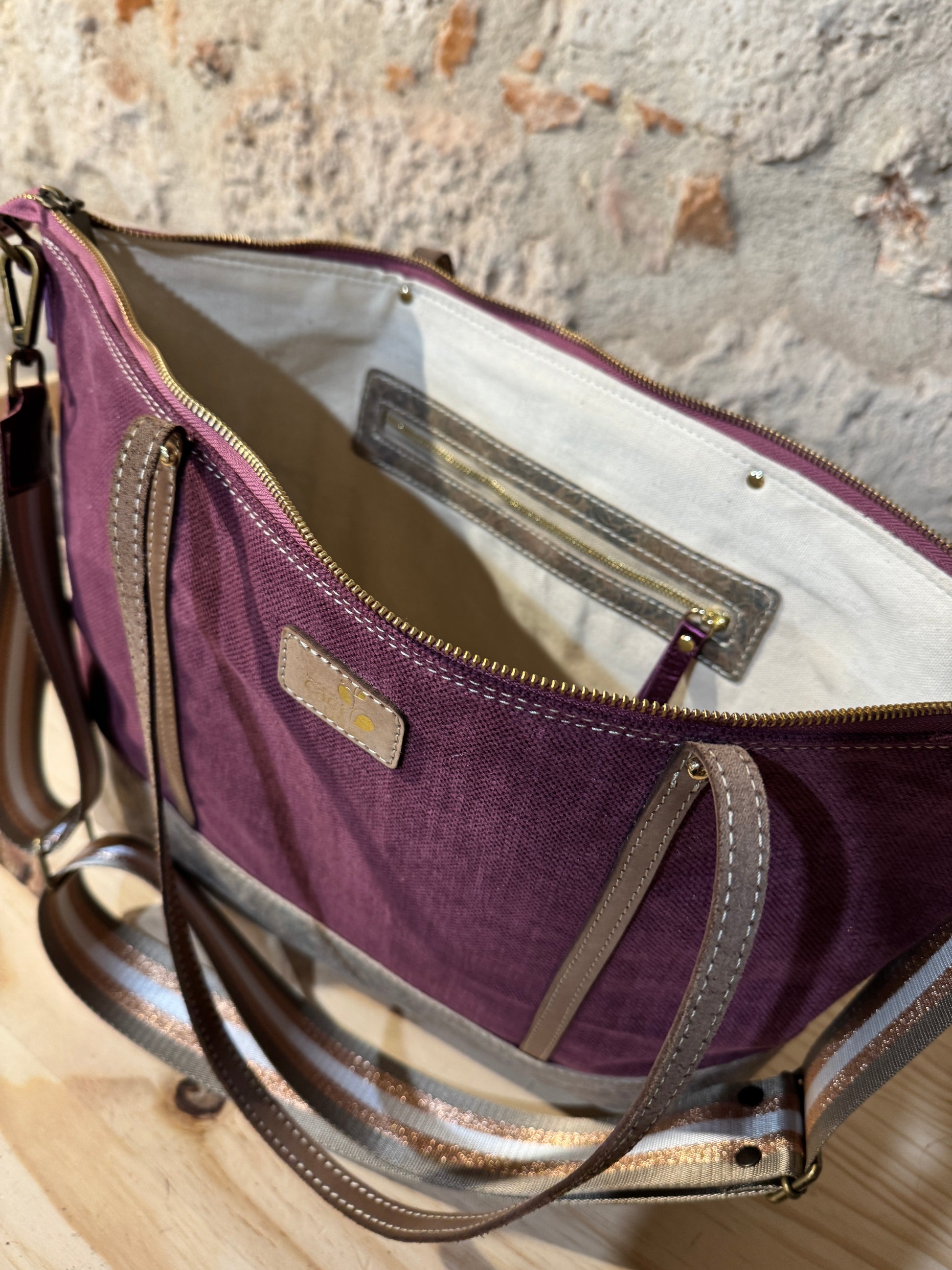 BORSA IN TESSUTO E MANICI E RIFINITURE IN PELLE