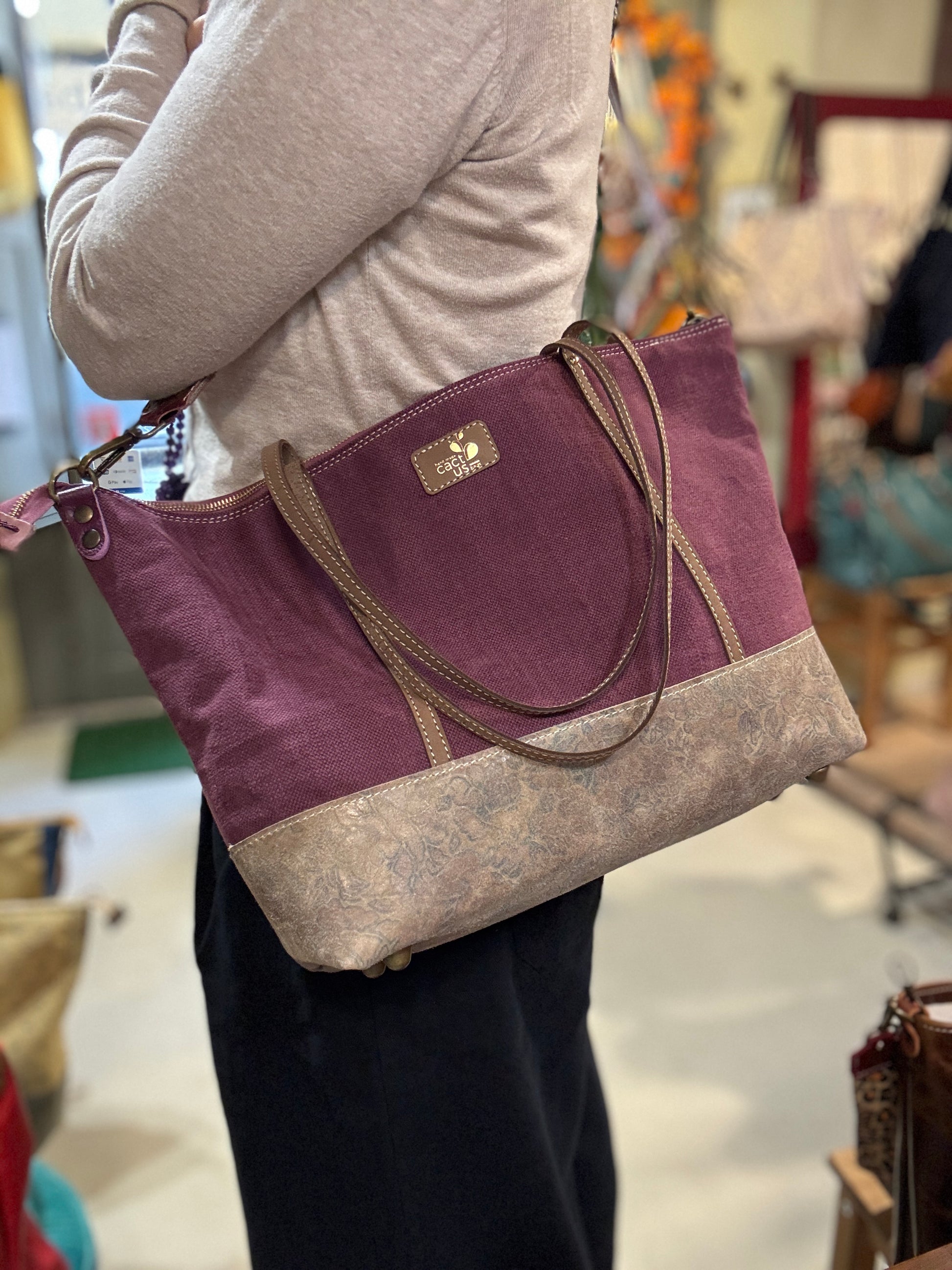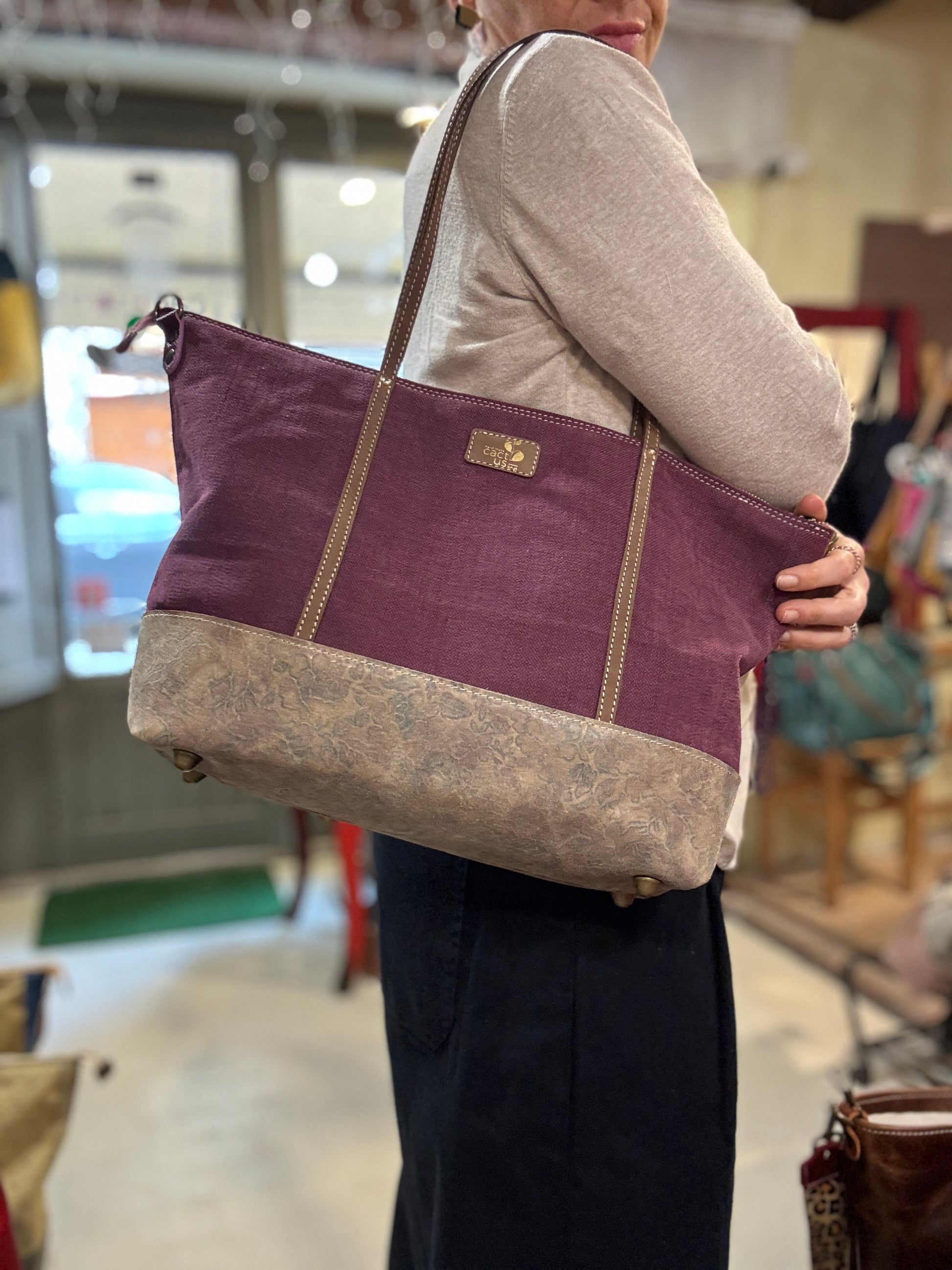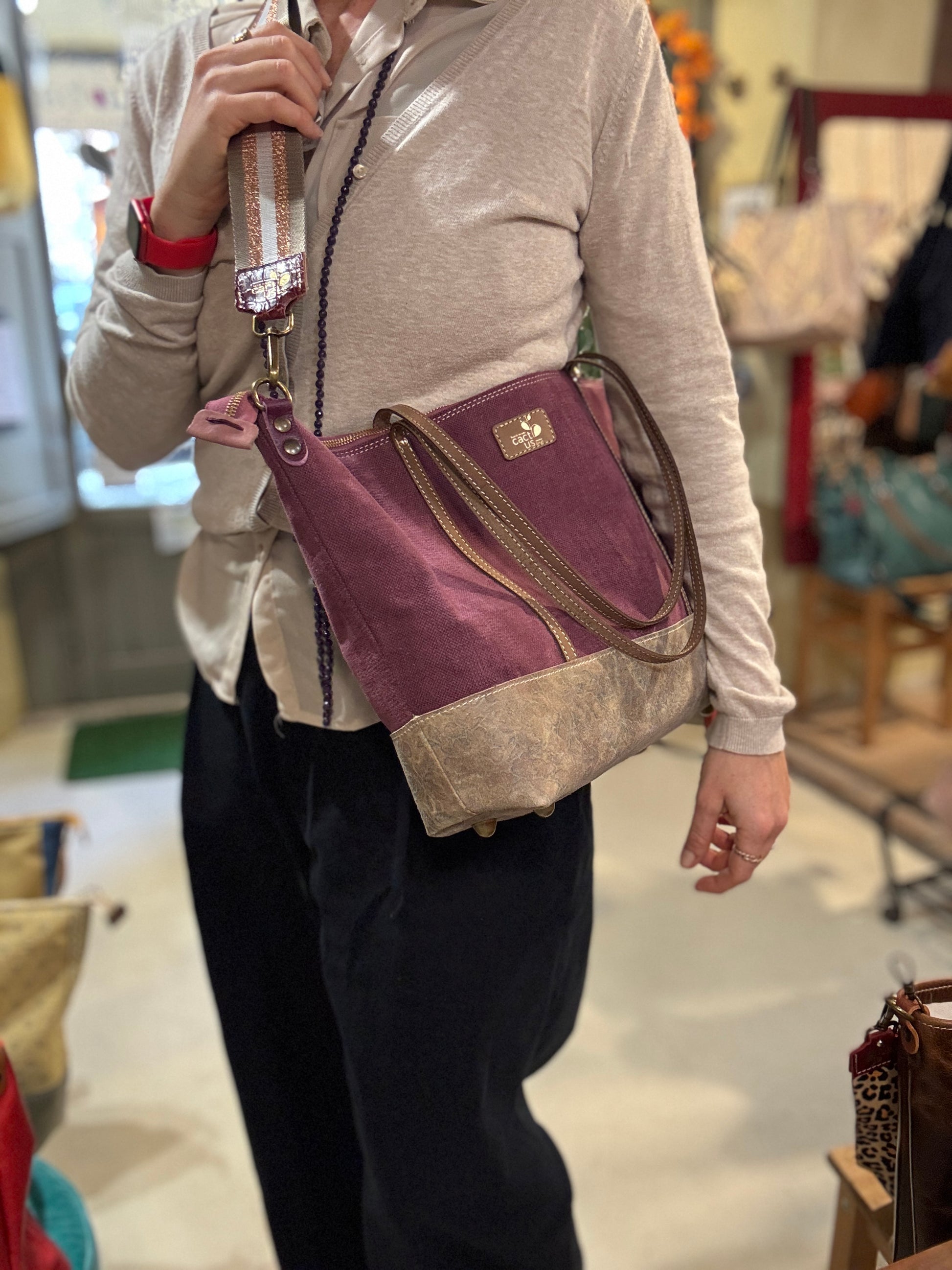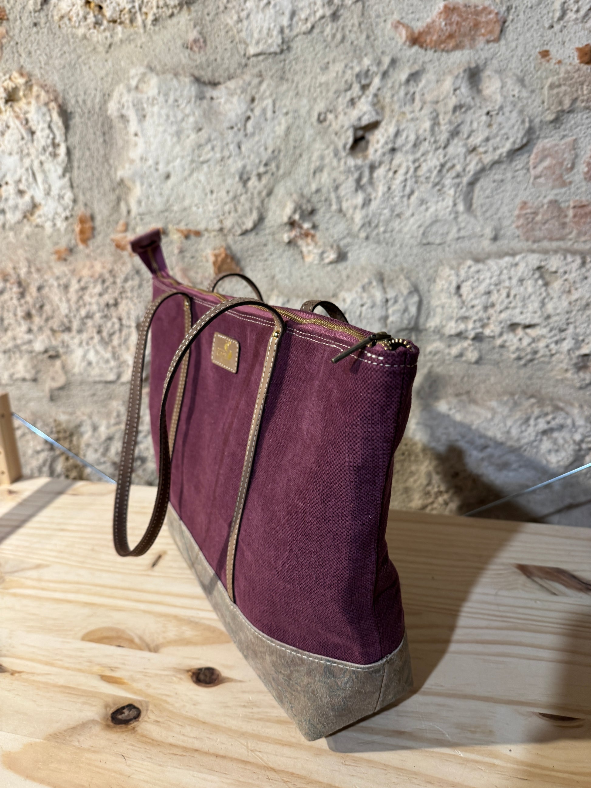 BORSA IN TESSUTO E MANICI E RIFINITURE IN PELLE