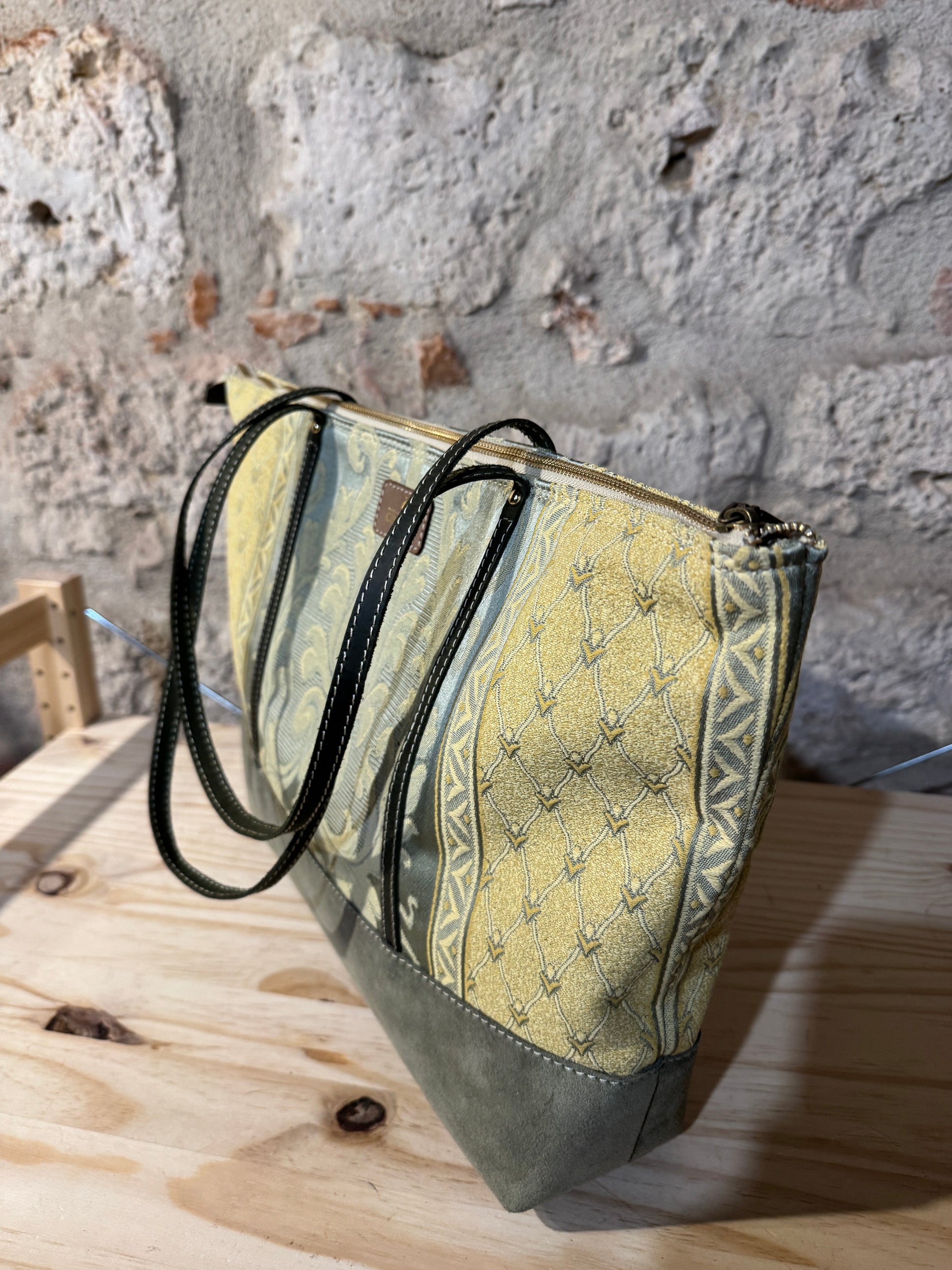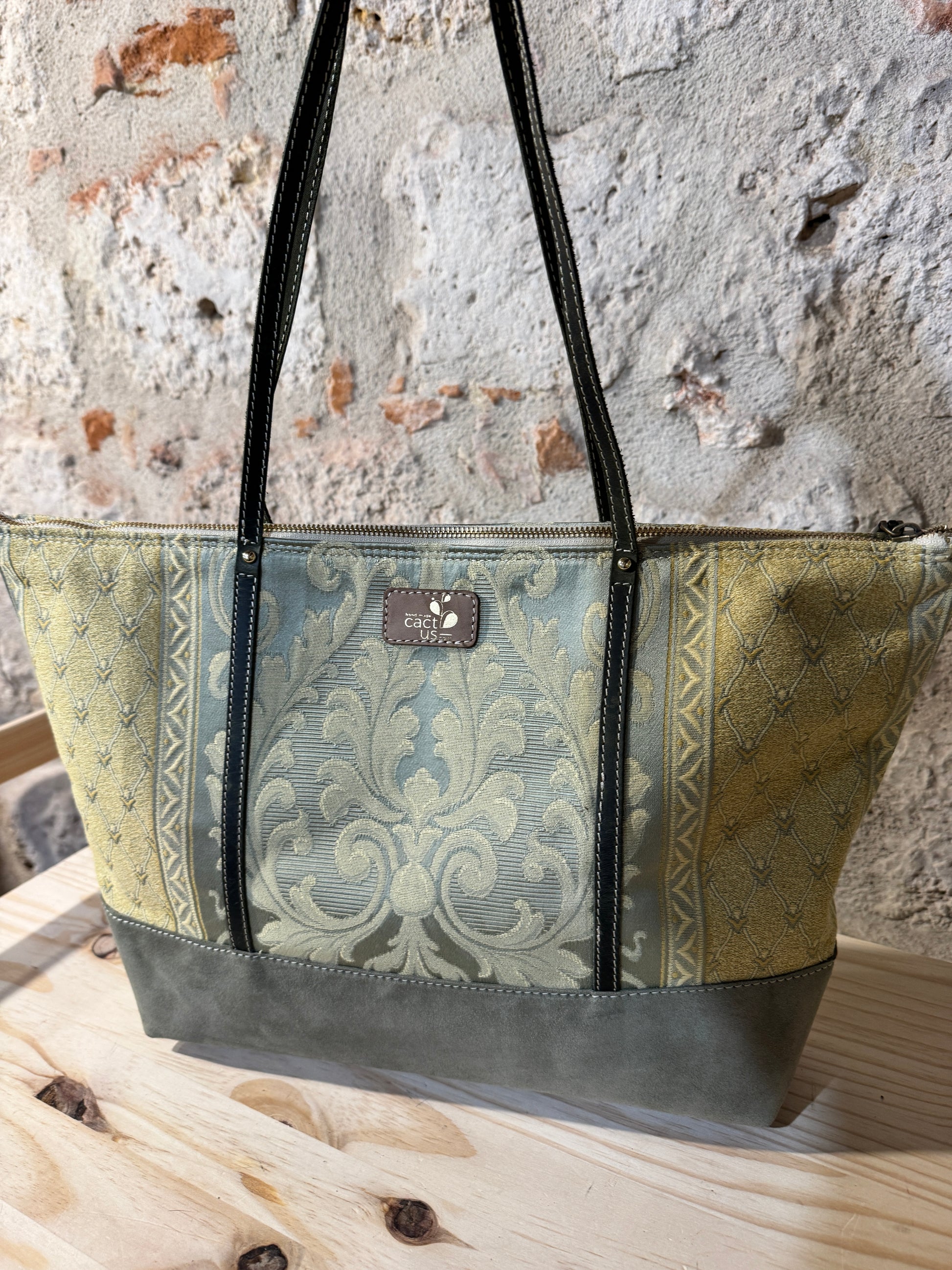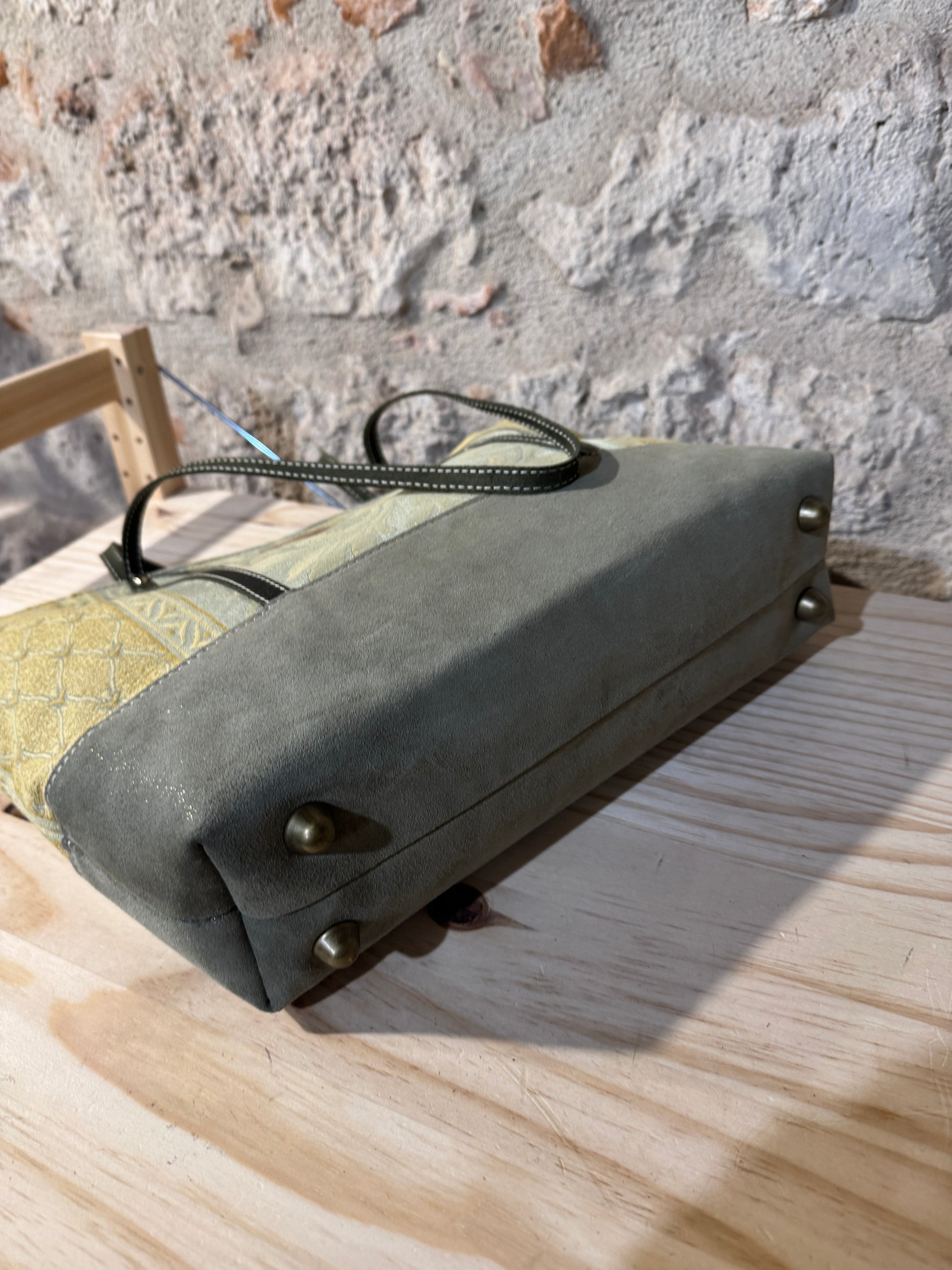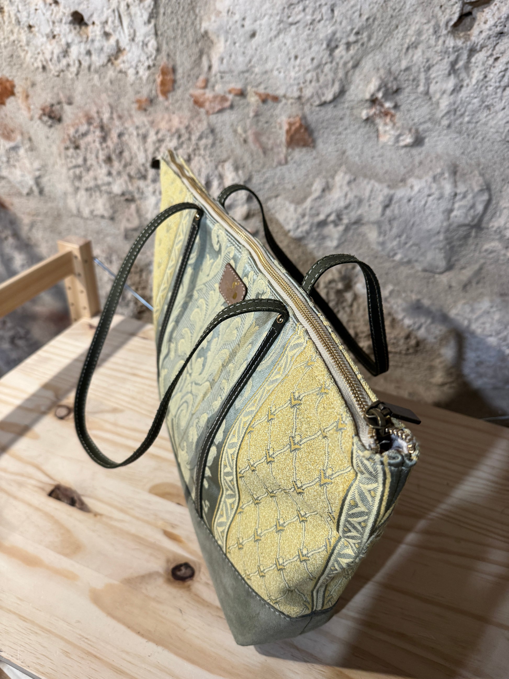 BORSA IN TESSUTO E MANICI E RIFINITURE IN PELLE