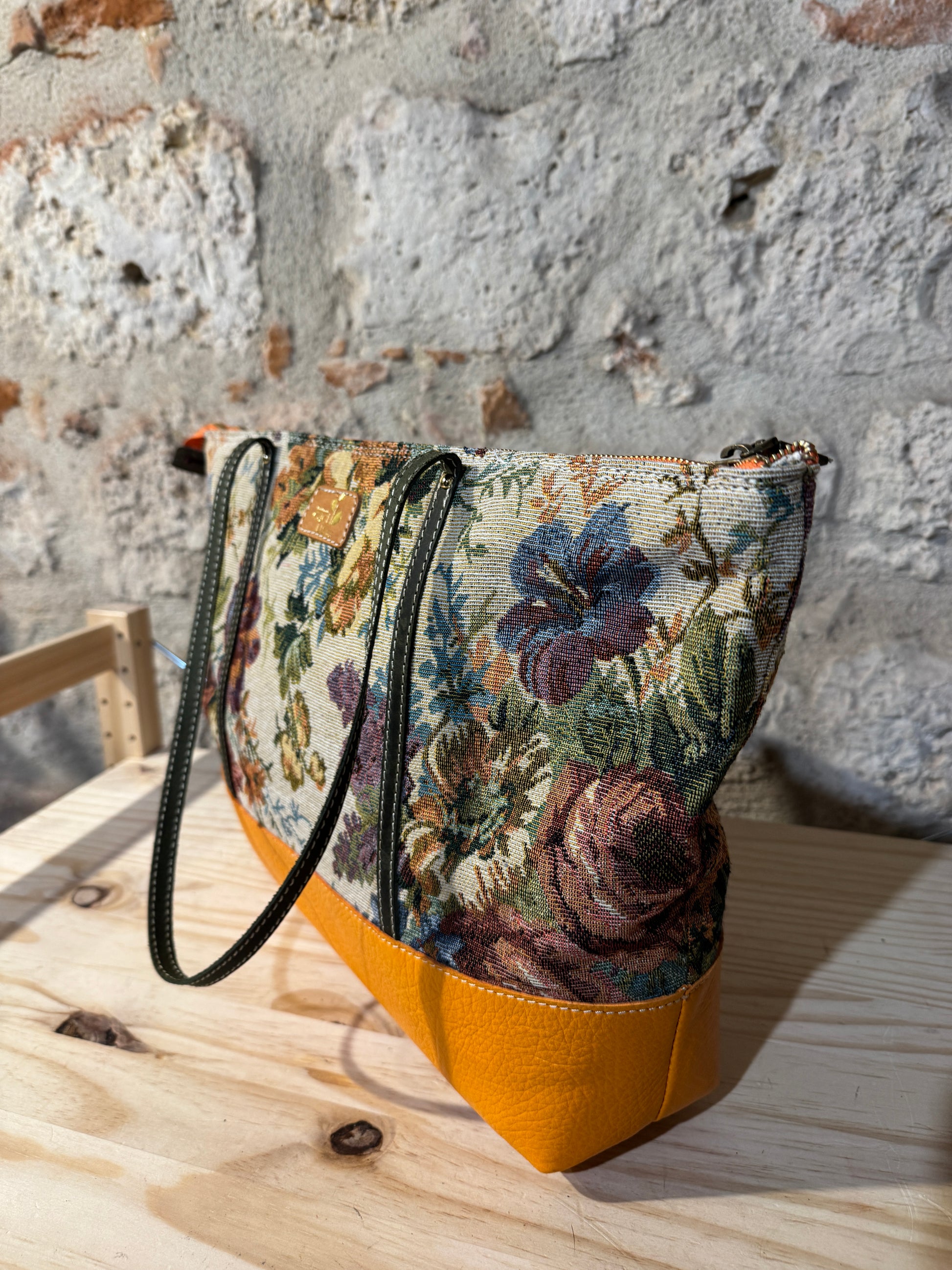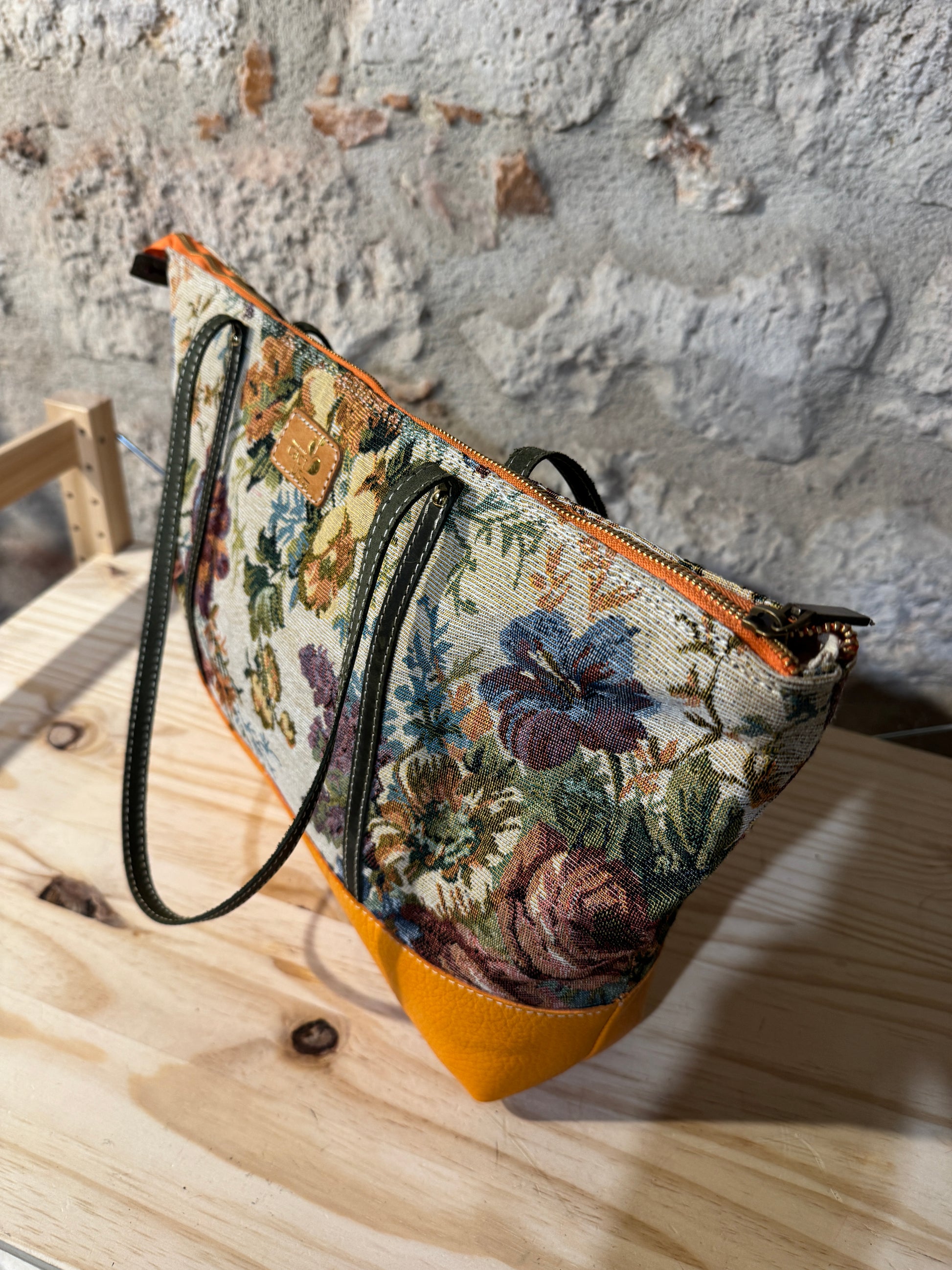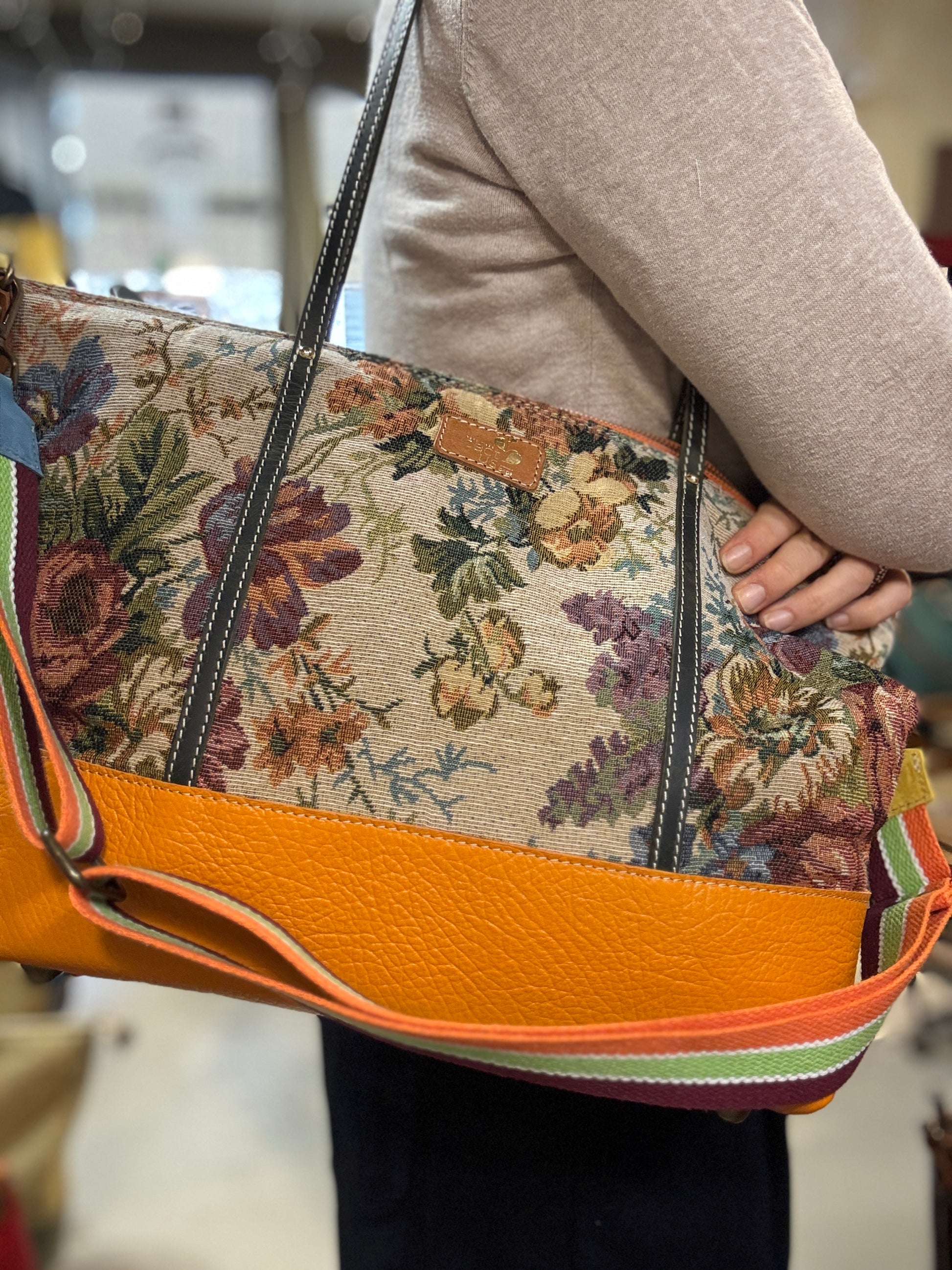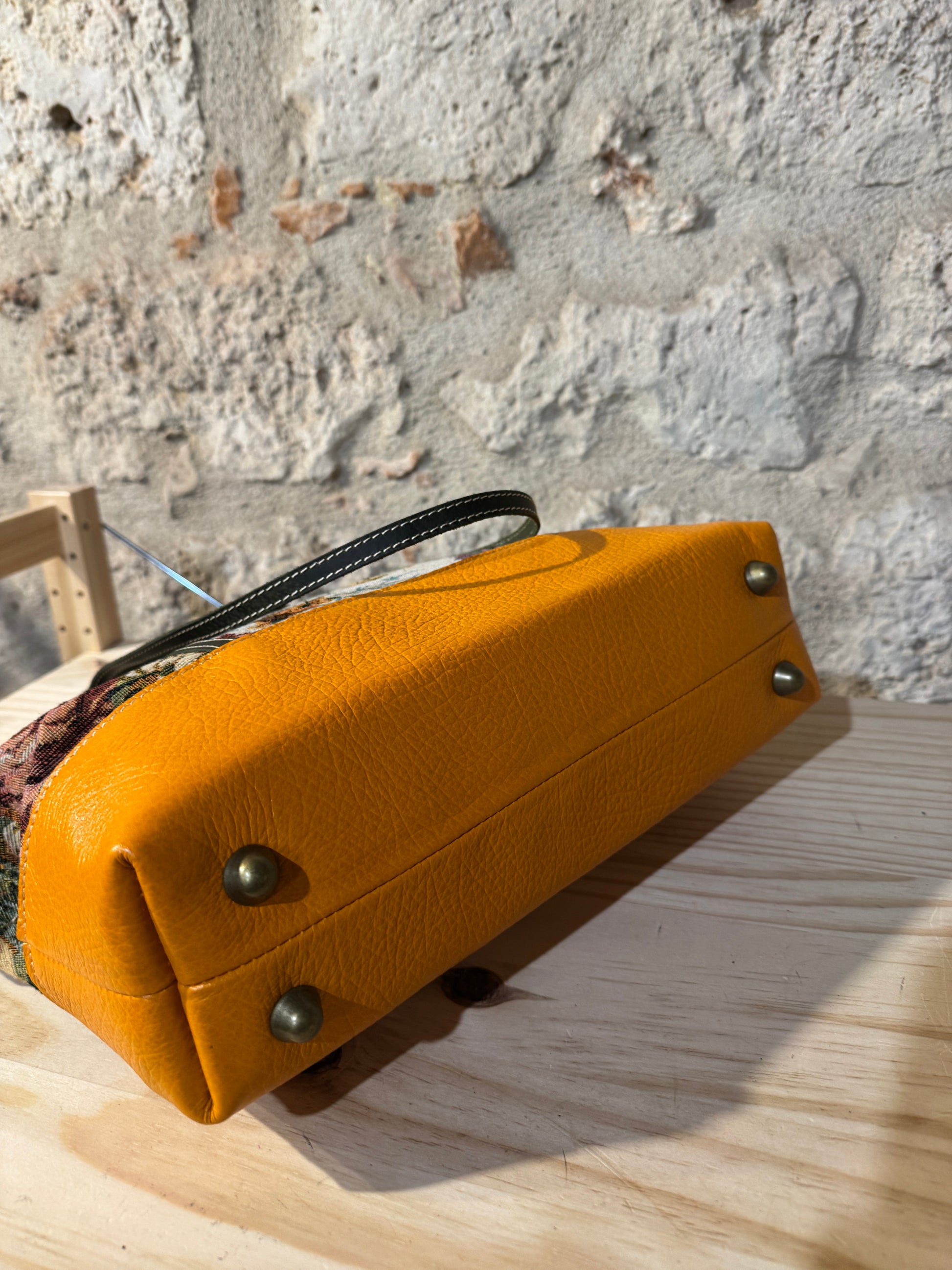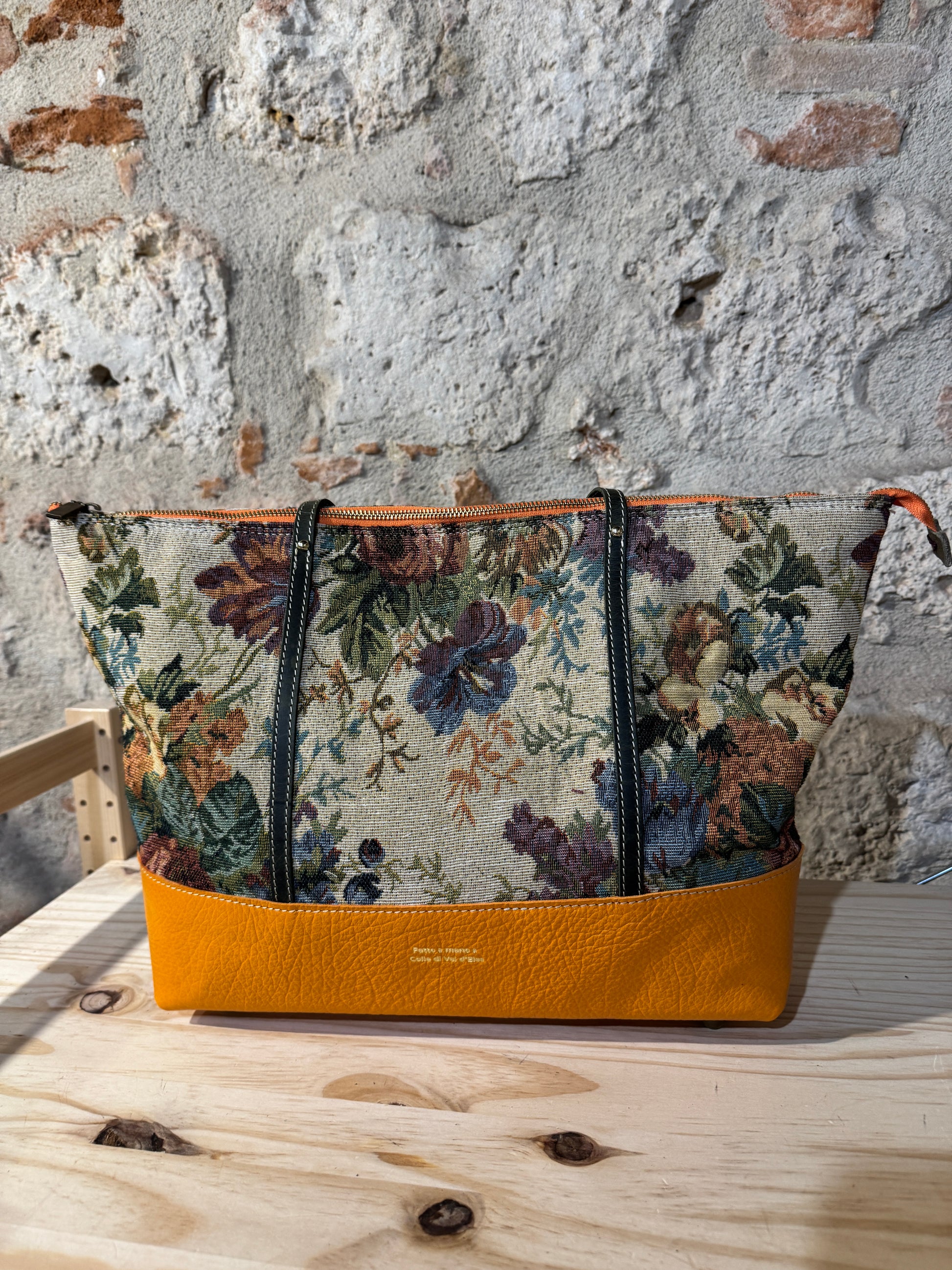 BORSA IN TESSUTO E MANICI E RIFINITURE IN PELLE