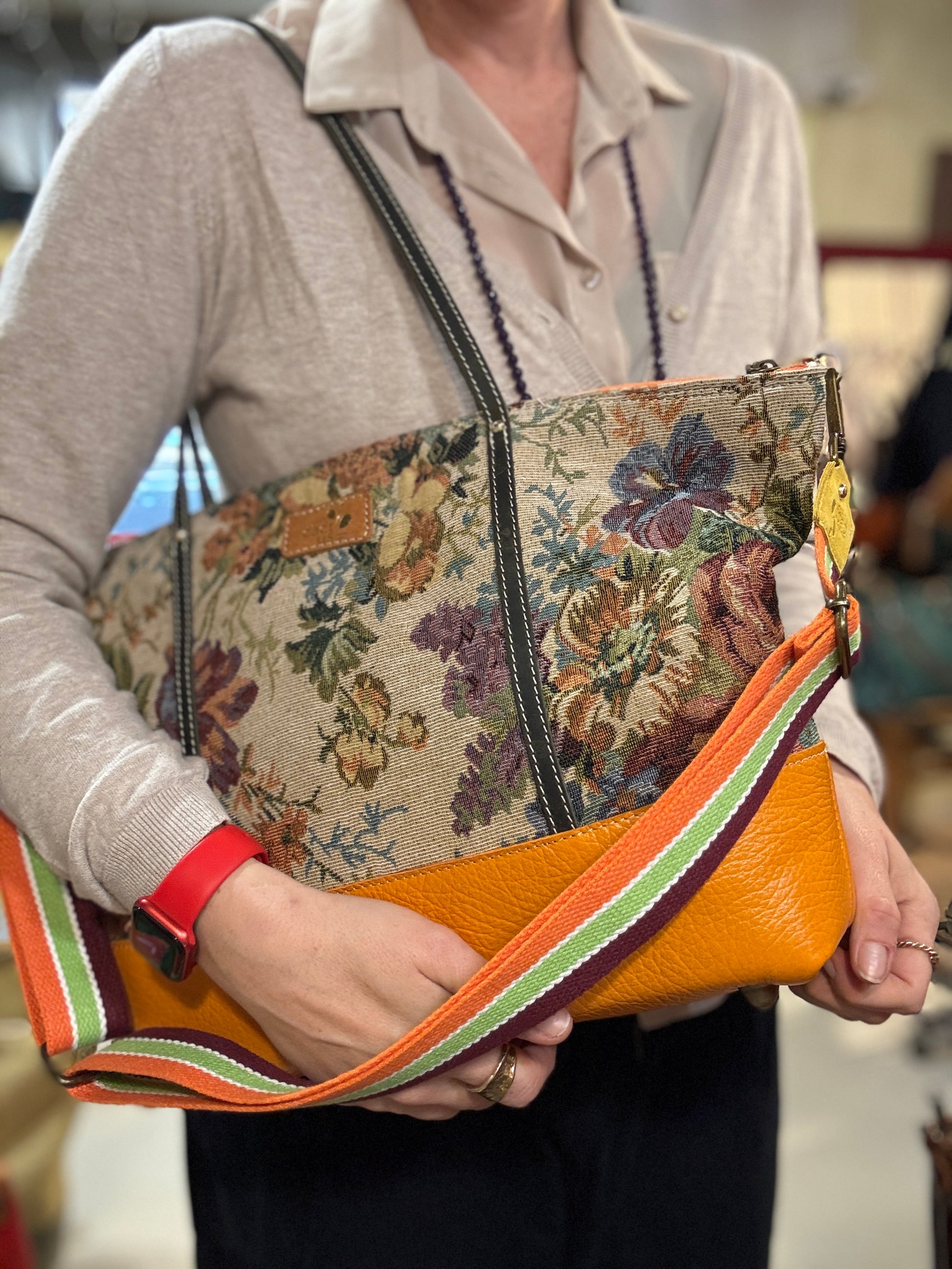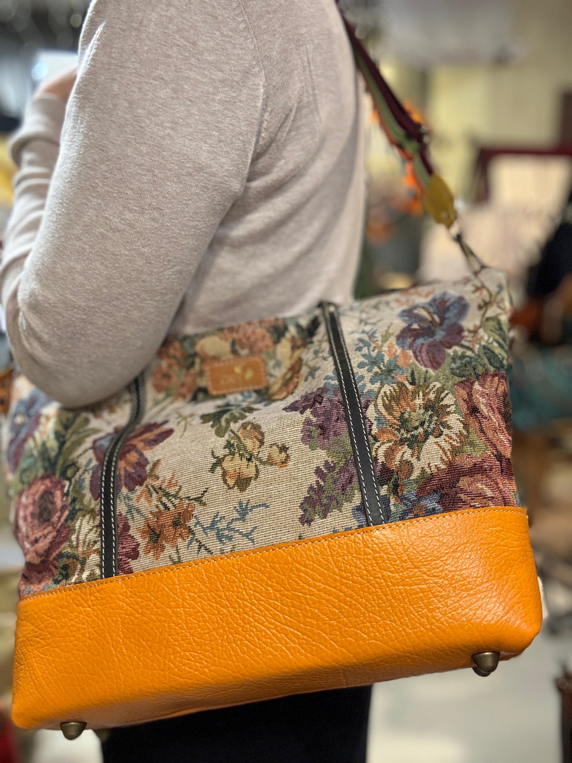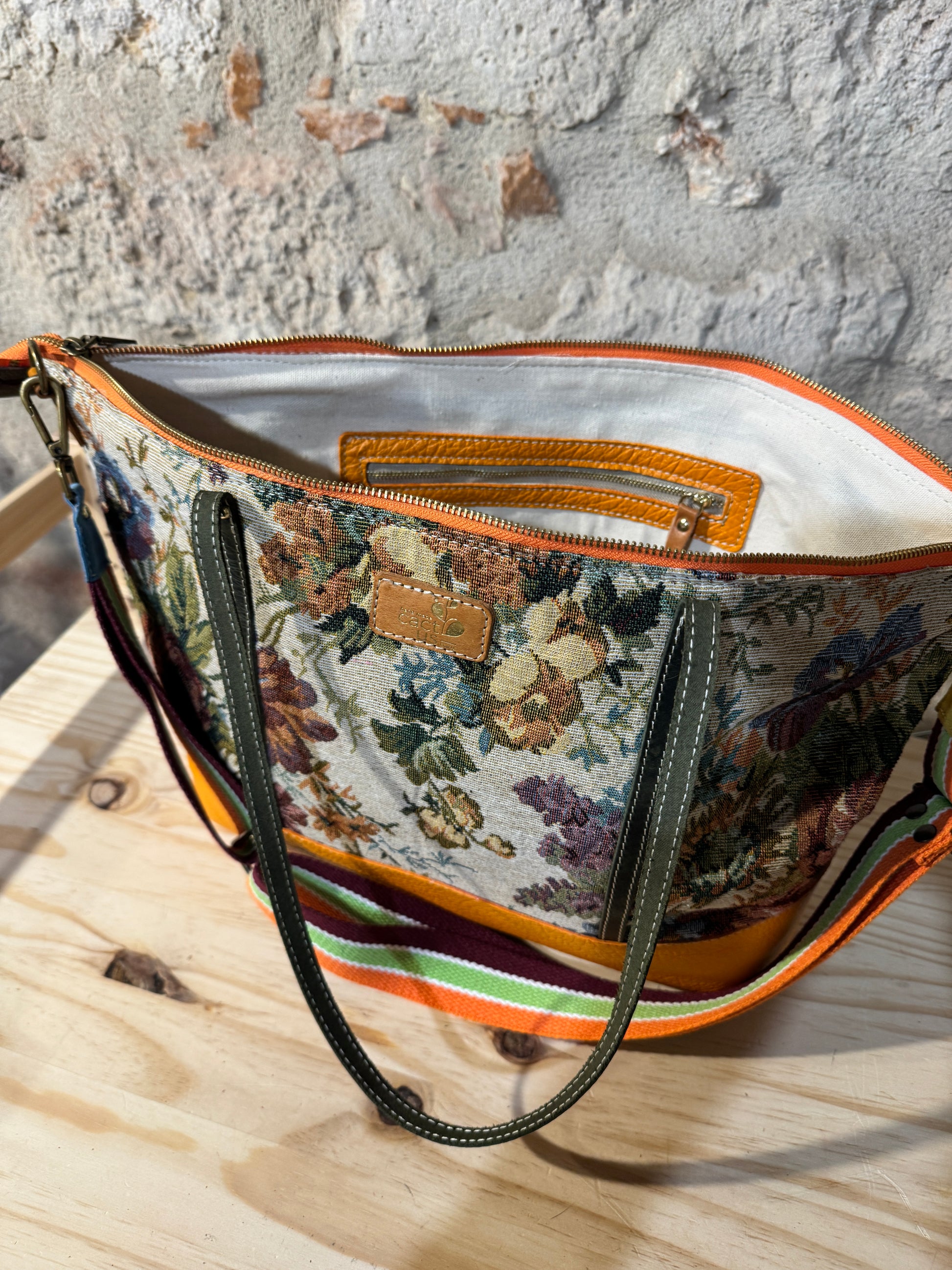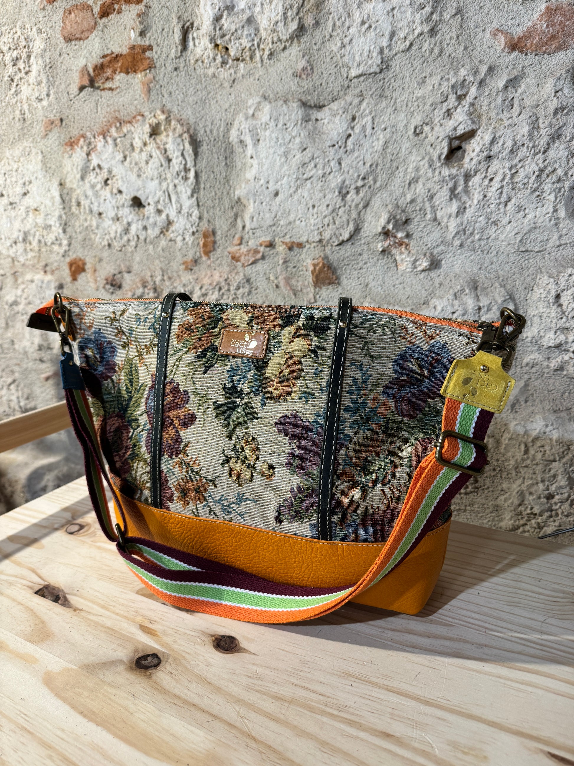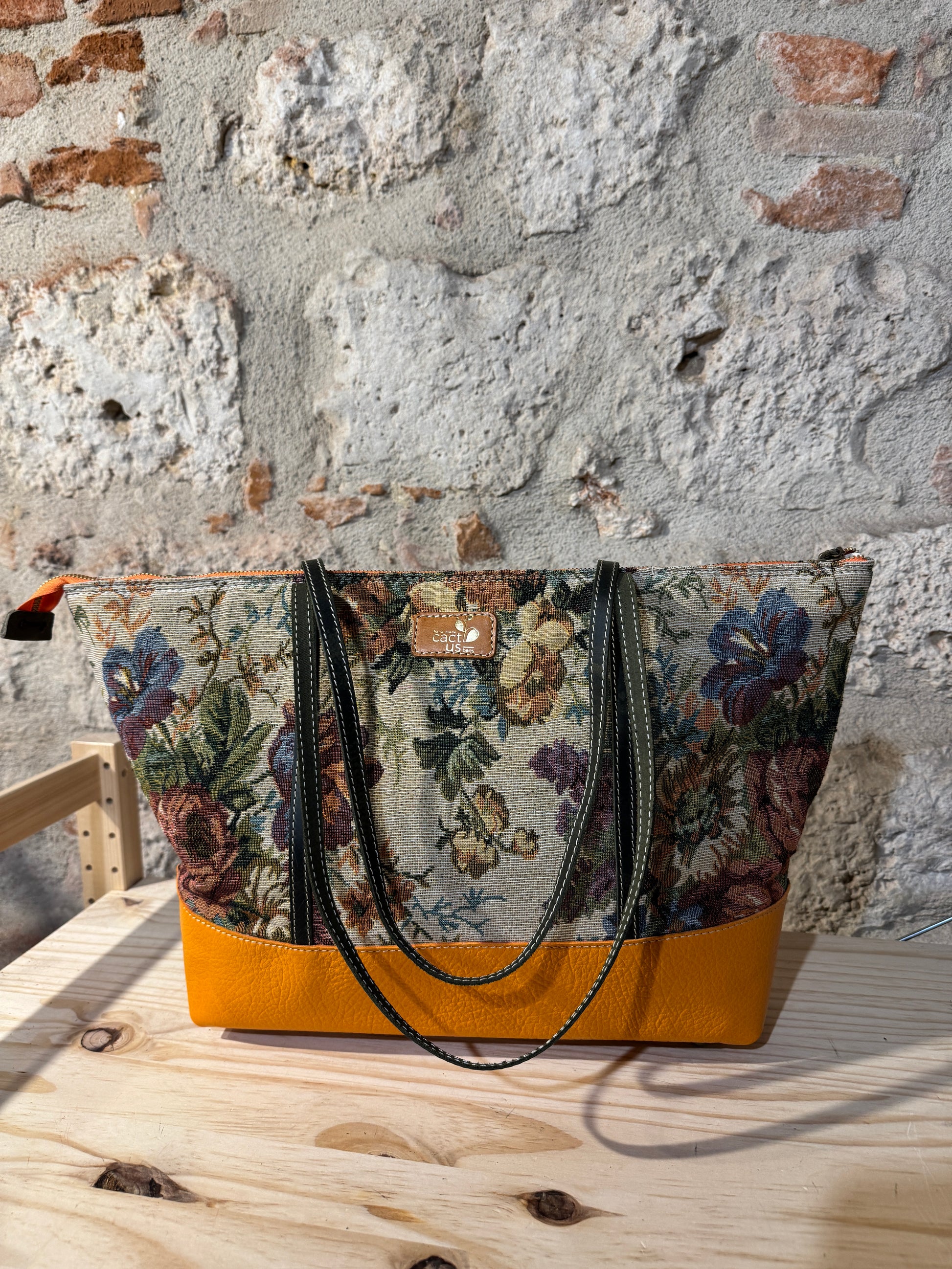 BORSA IN TESSUTO E MANICI E RIFINITURE IN PELLE