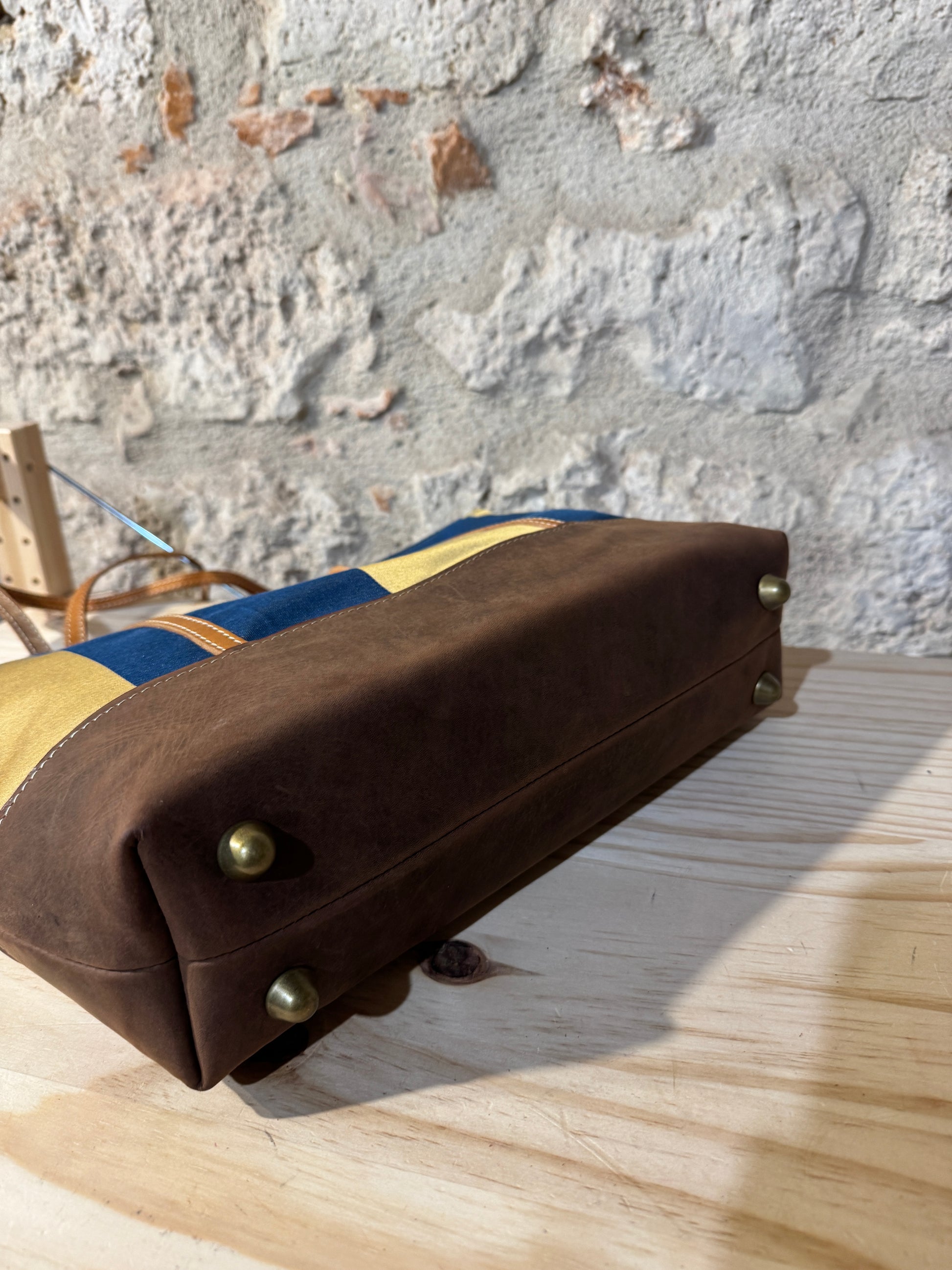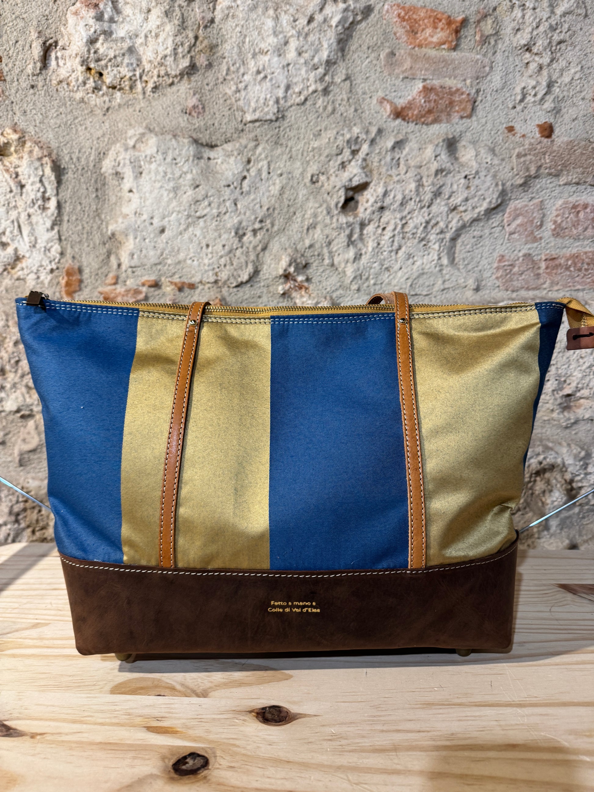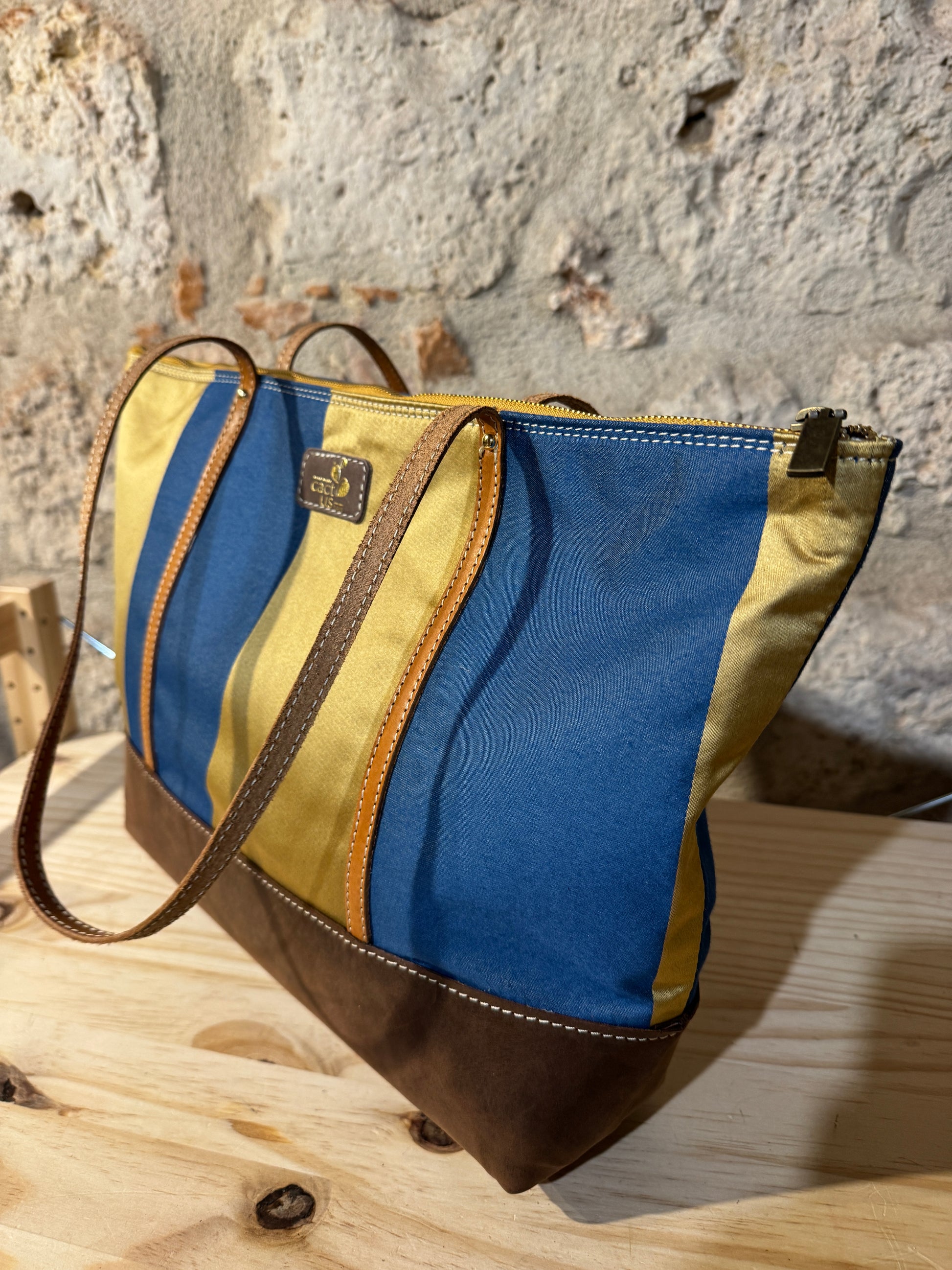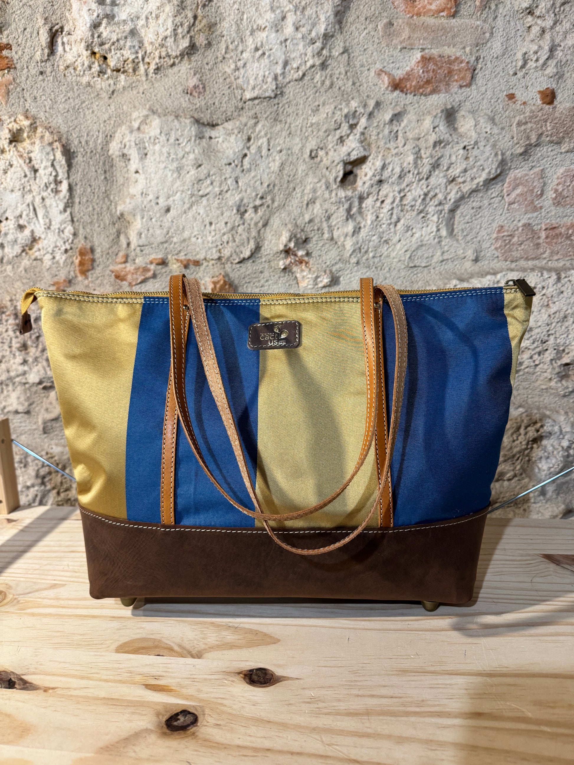 BORSA IN TESSUTO E MANICI E RIFINITURE IN PELLE