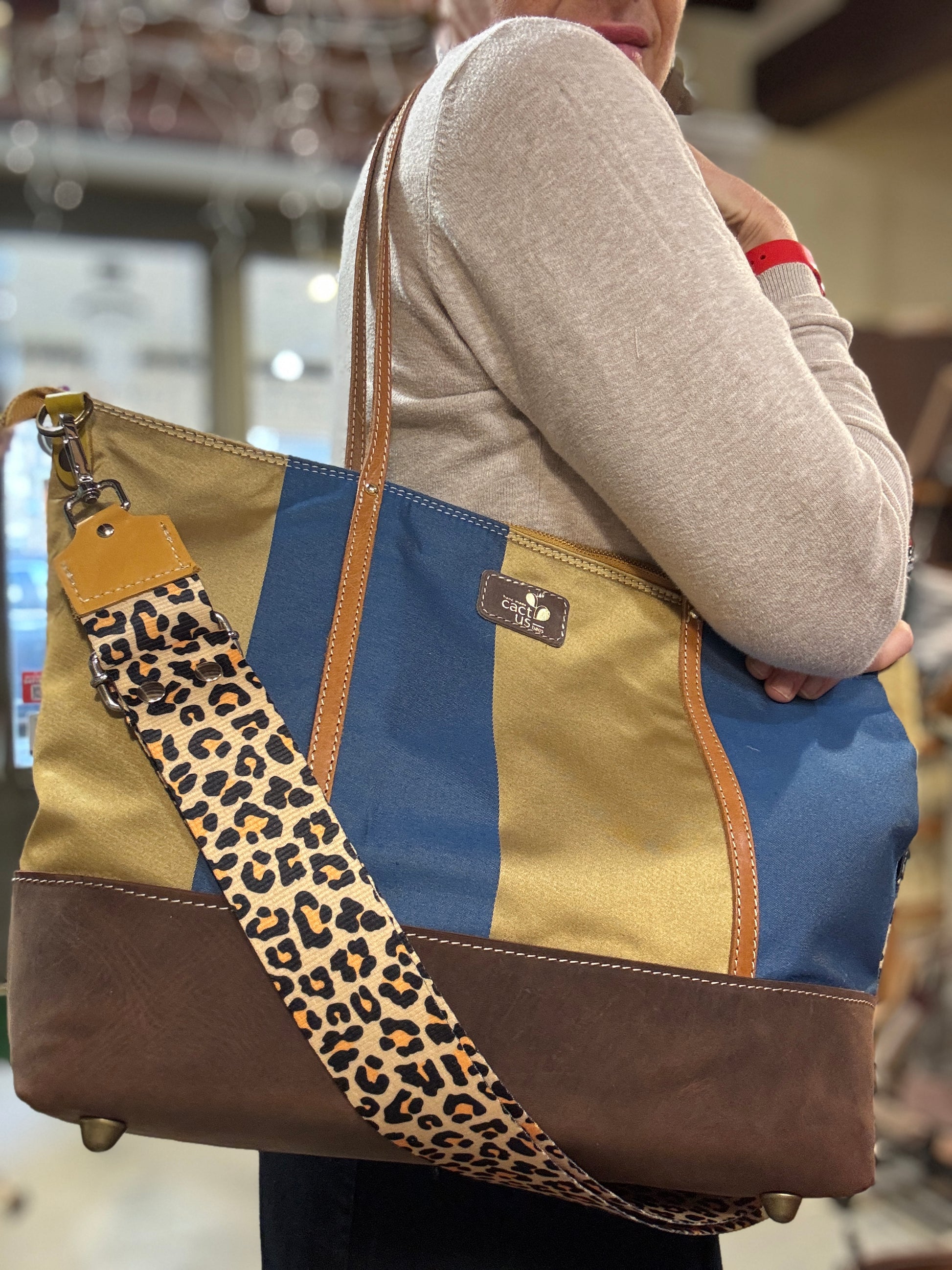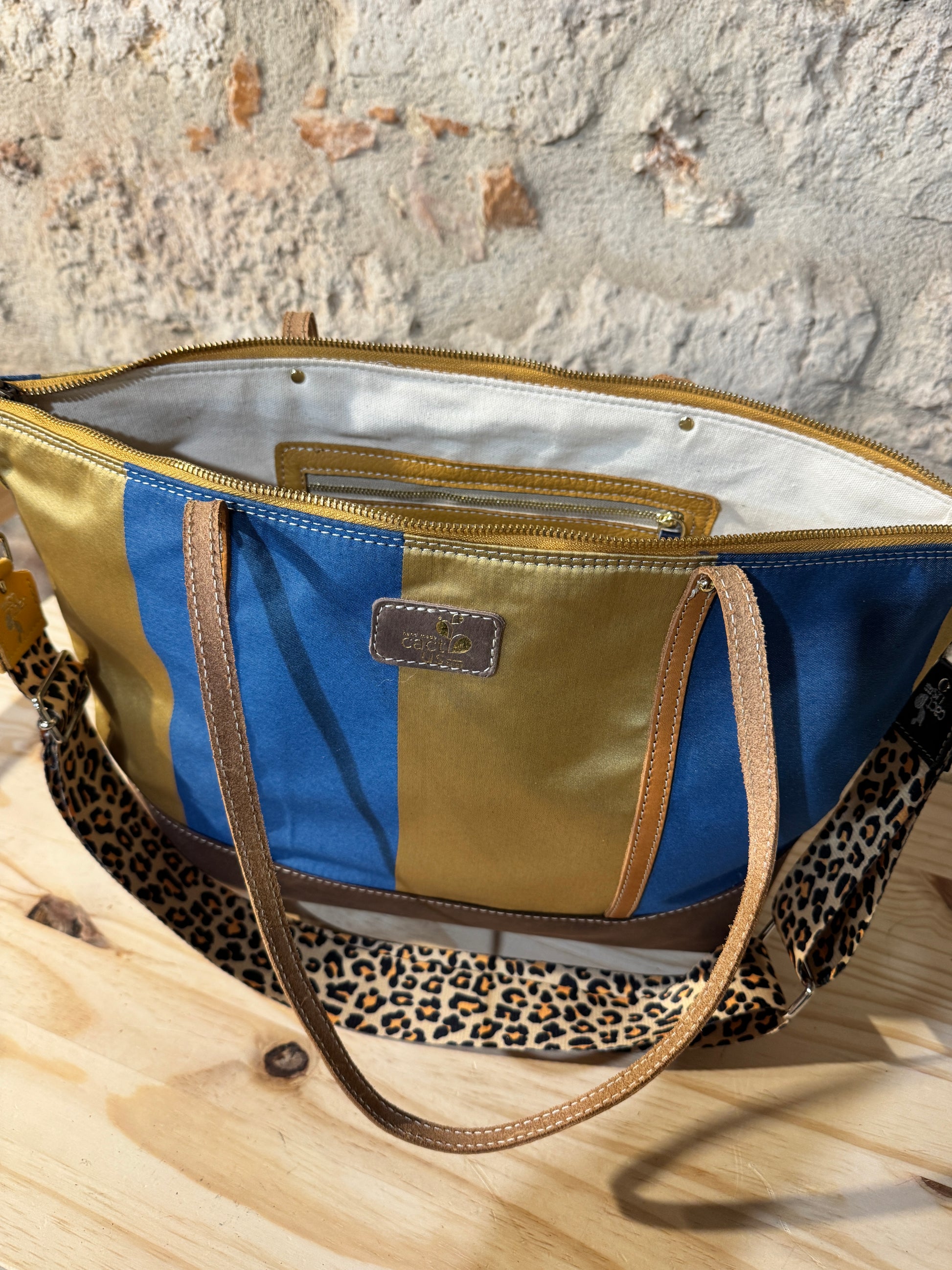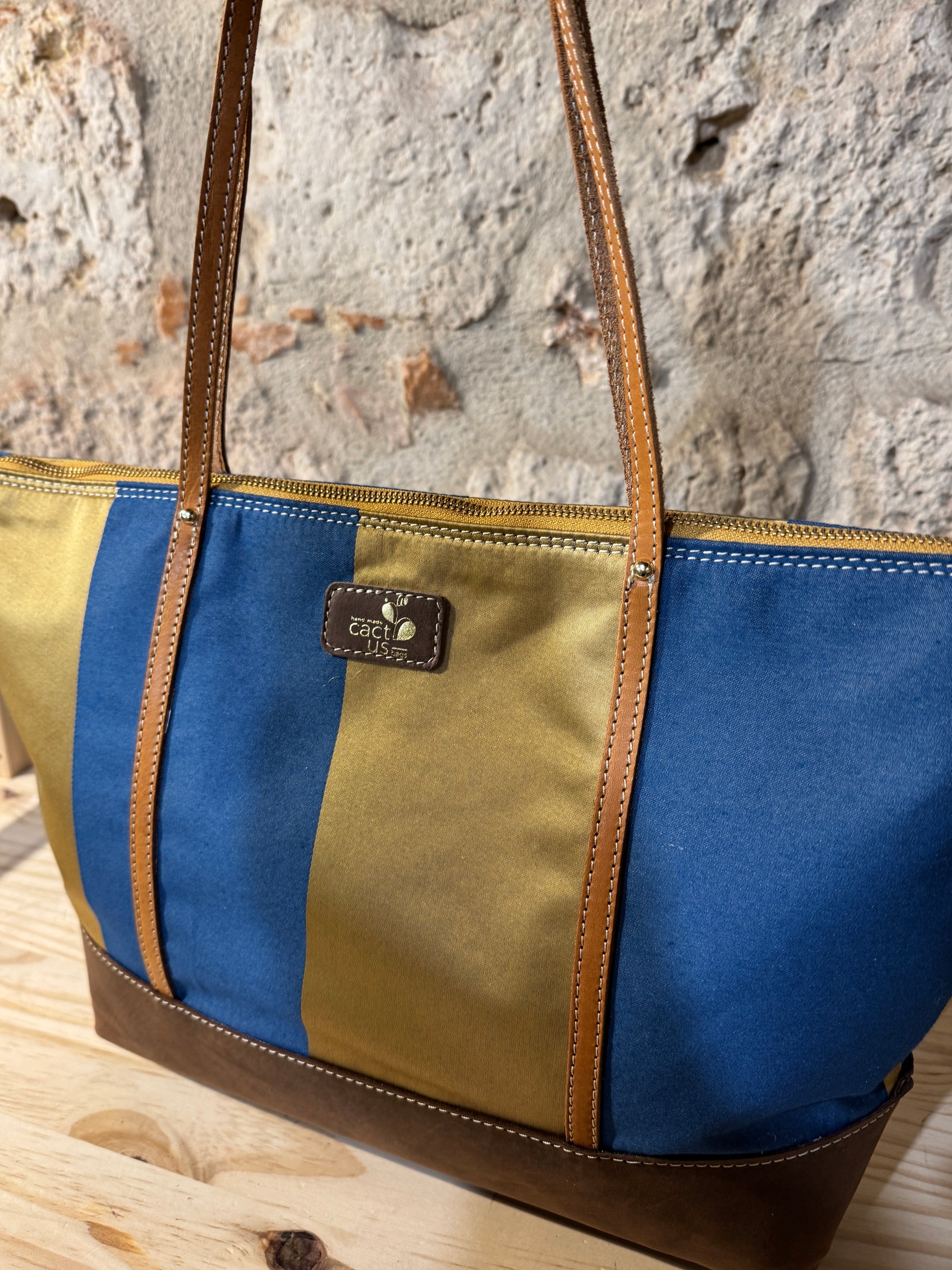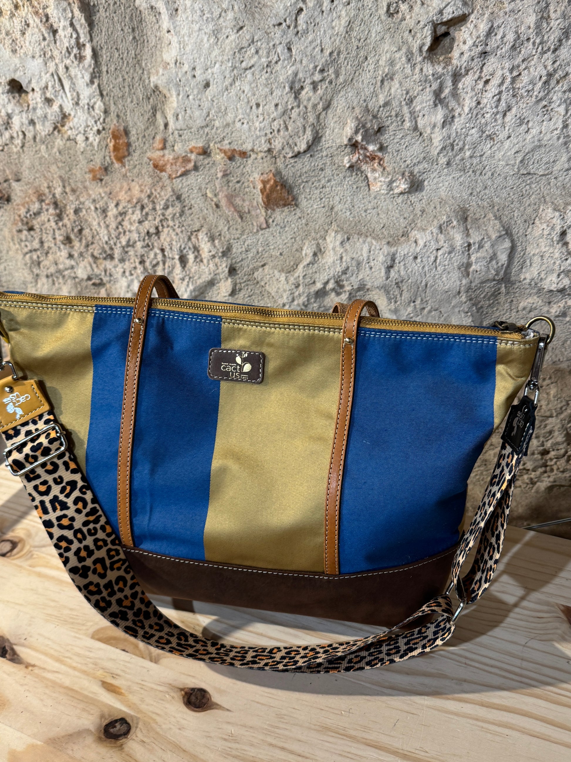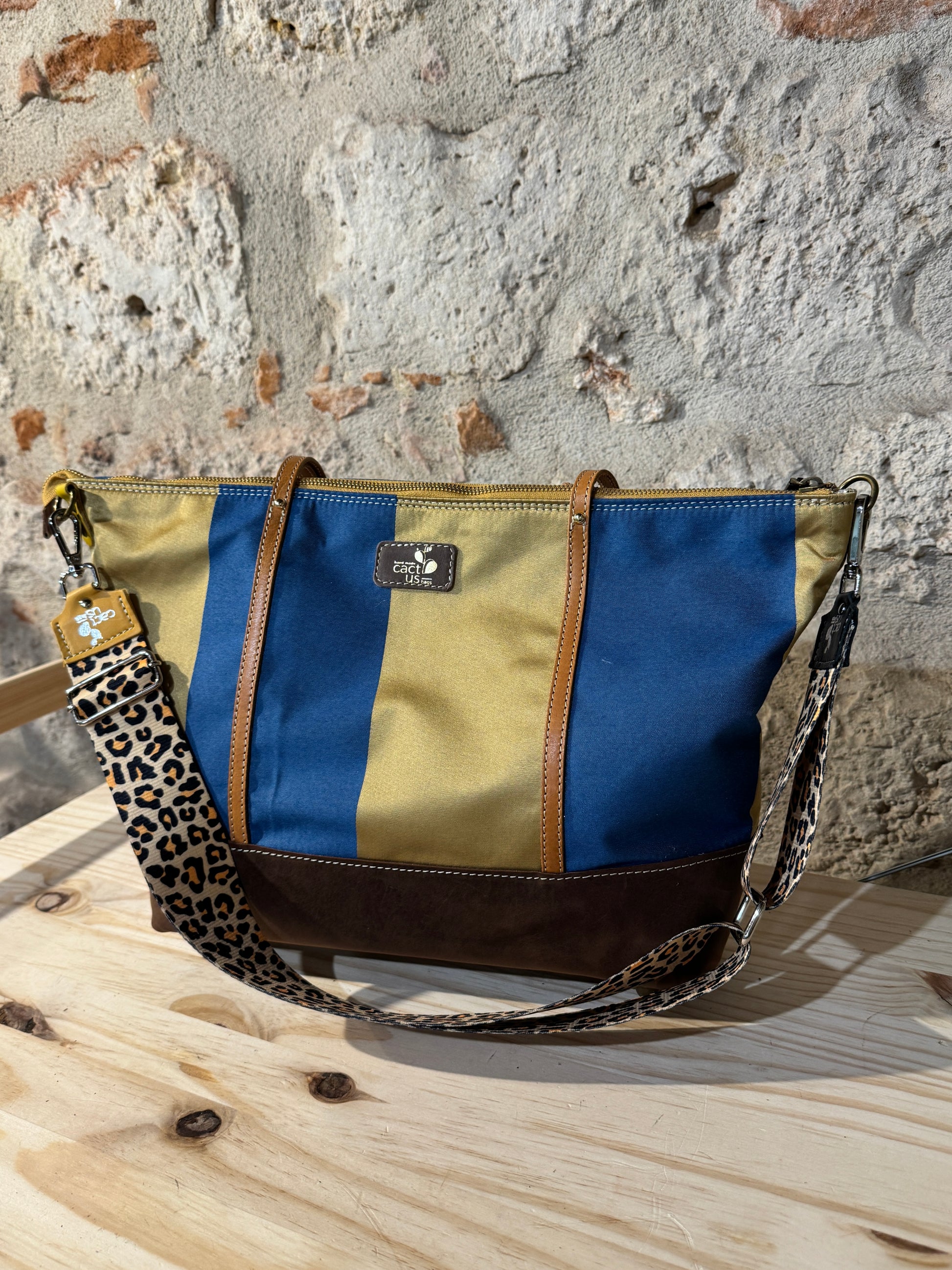 BORSA IN TESSUTO E MANICI E RIFINITURE IN PELLE