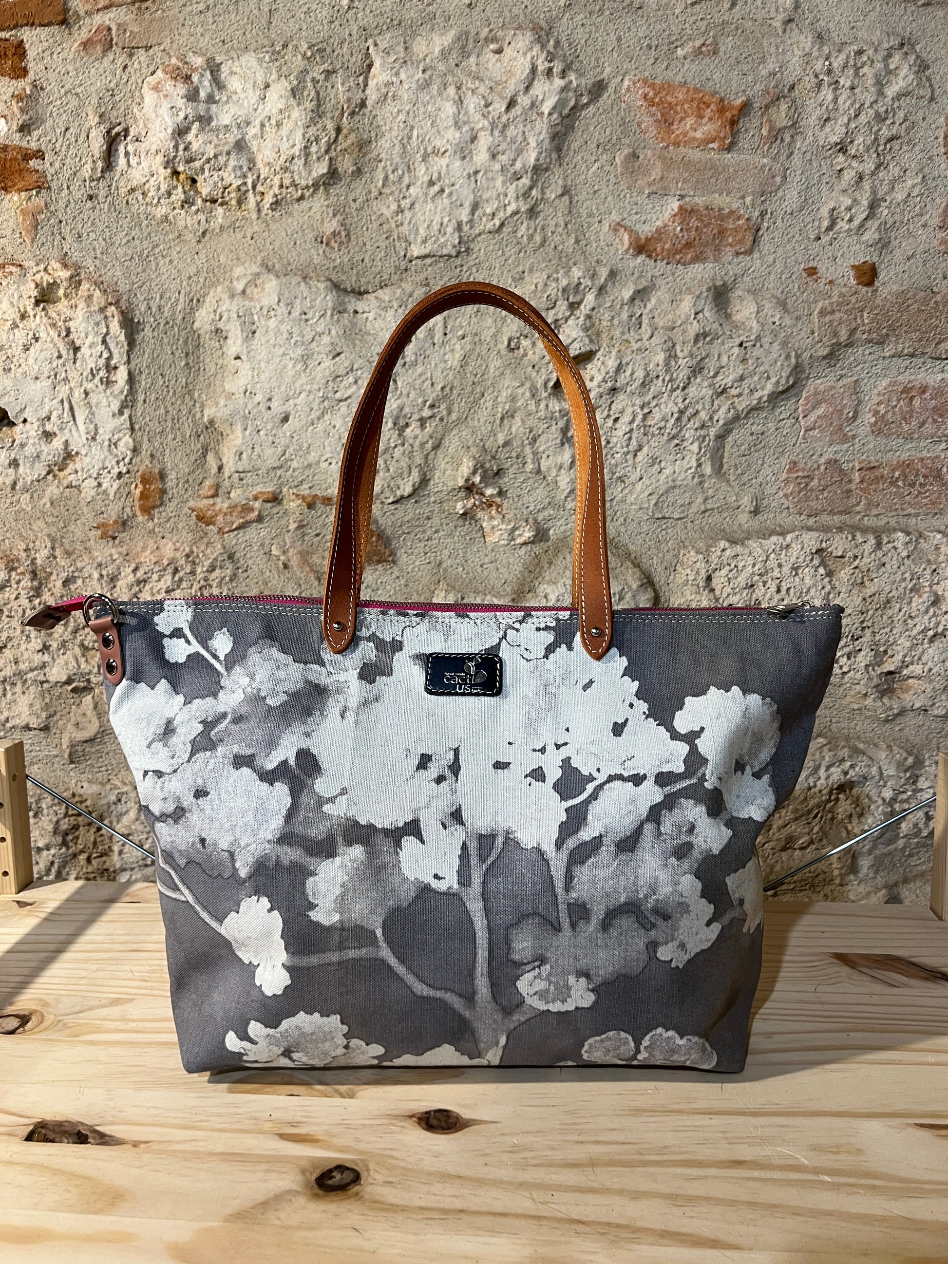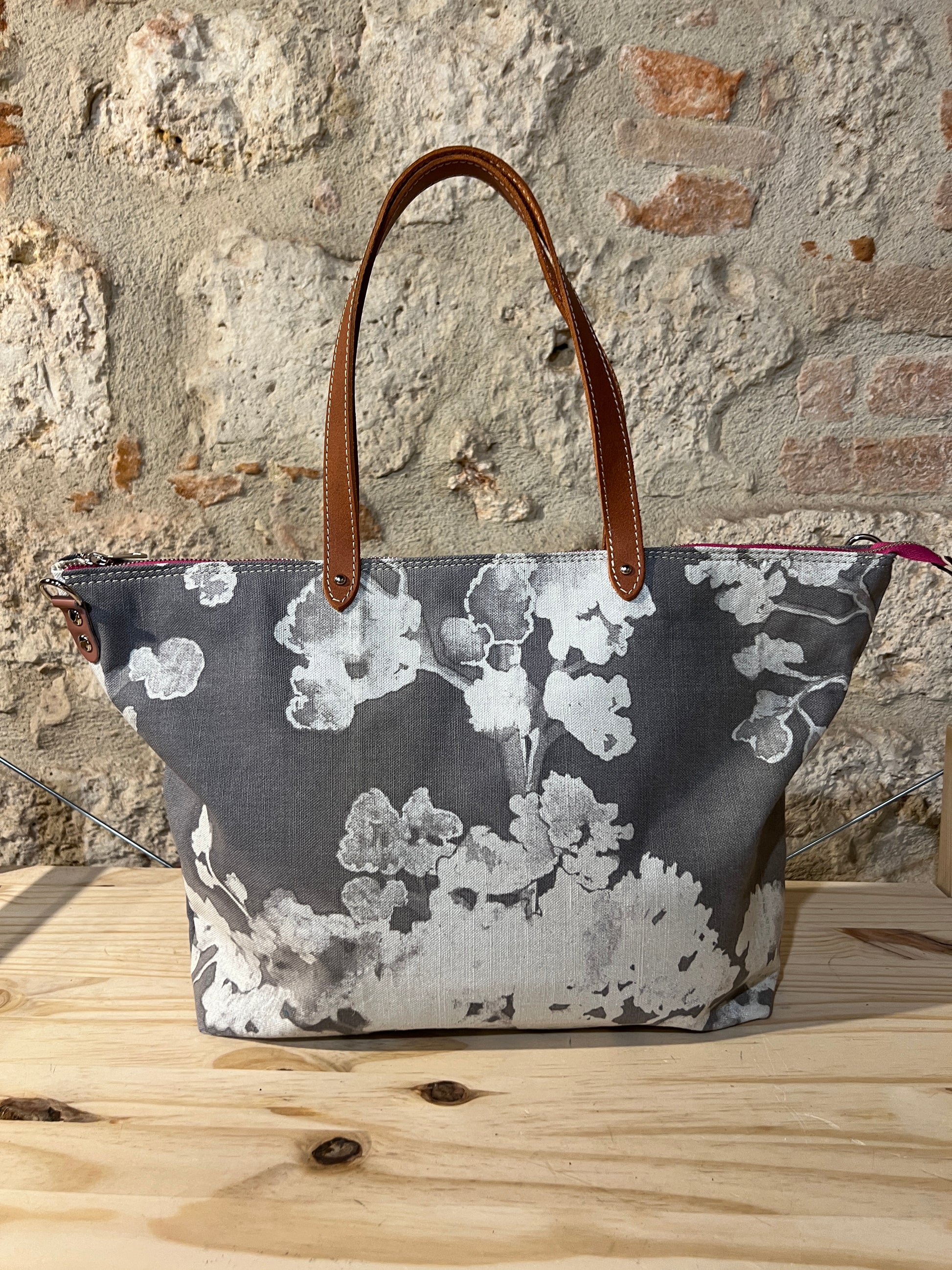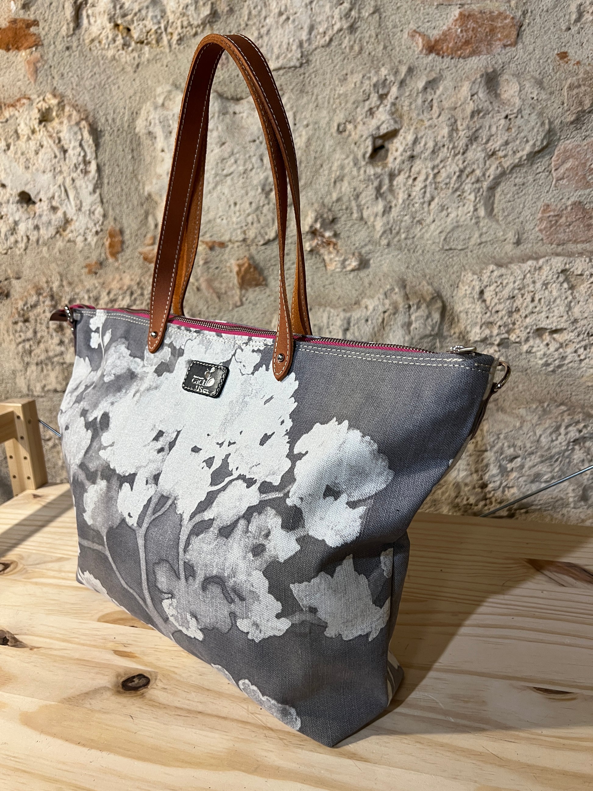 BORSA IN TESSUTO E MANICI E RIFINITURE IN PELLE