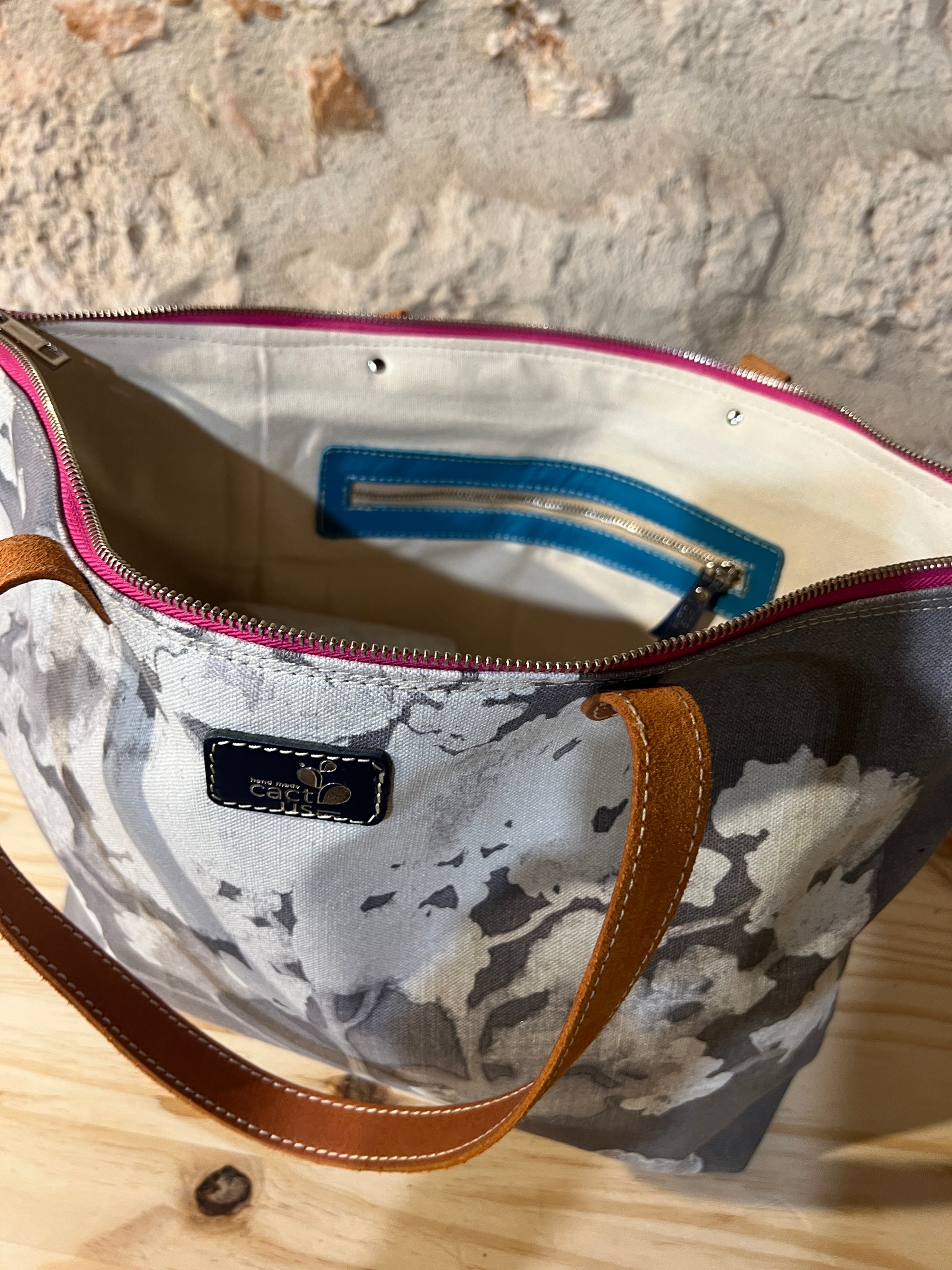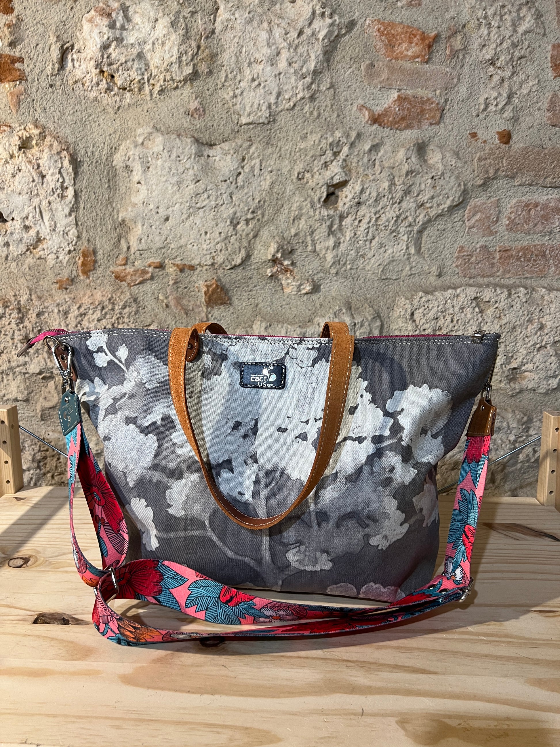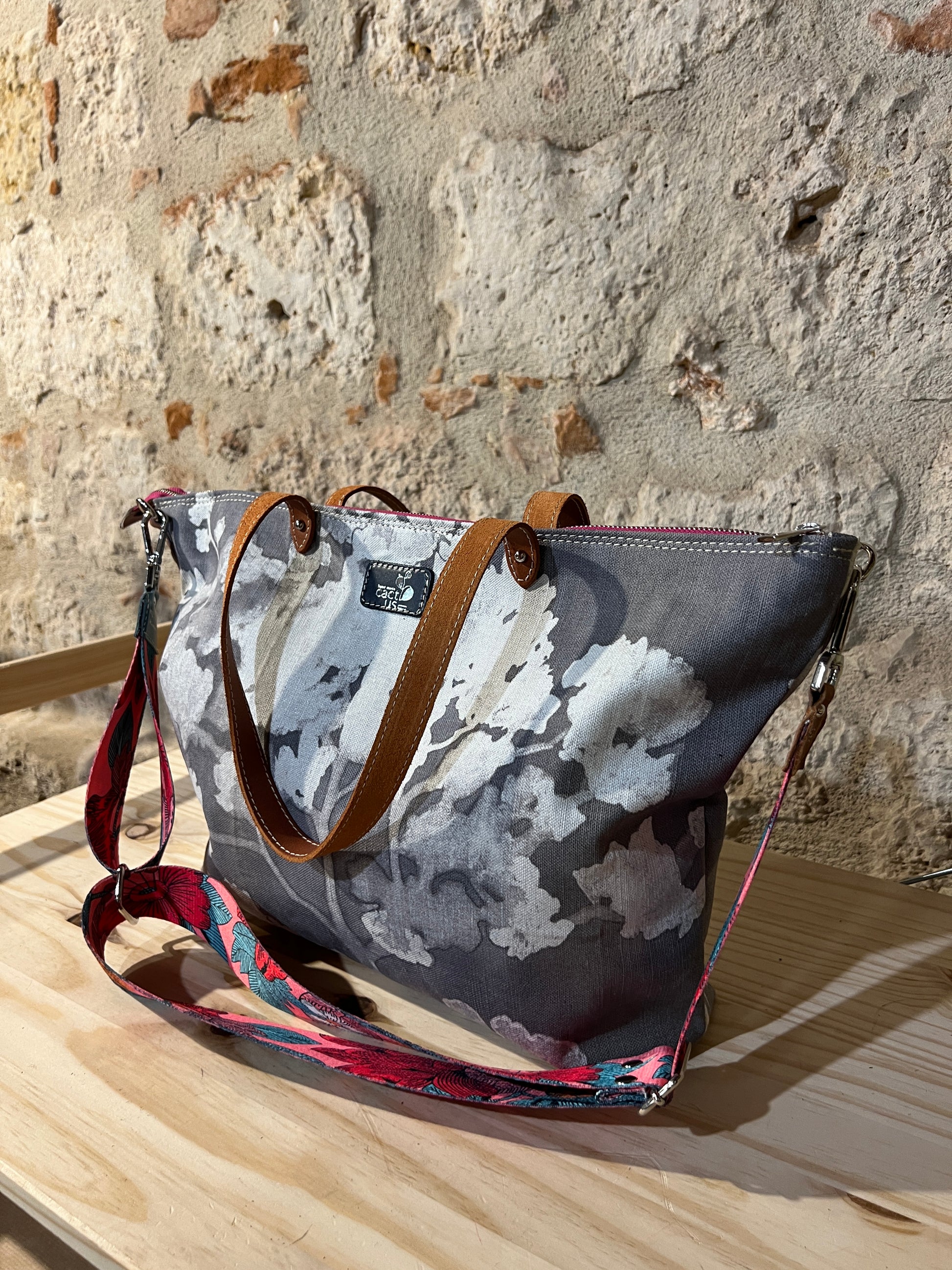 BORSA IN TESSUTO E MANICI E RIFINITURE IN PELLE