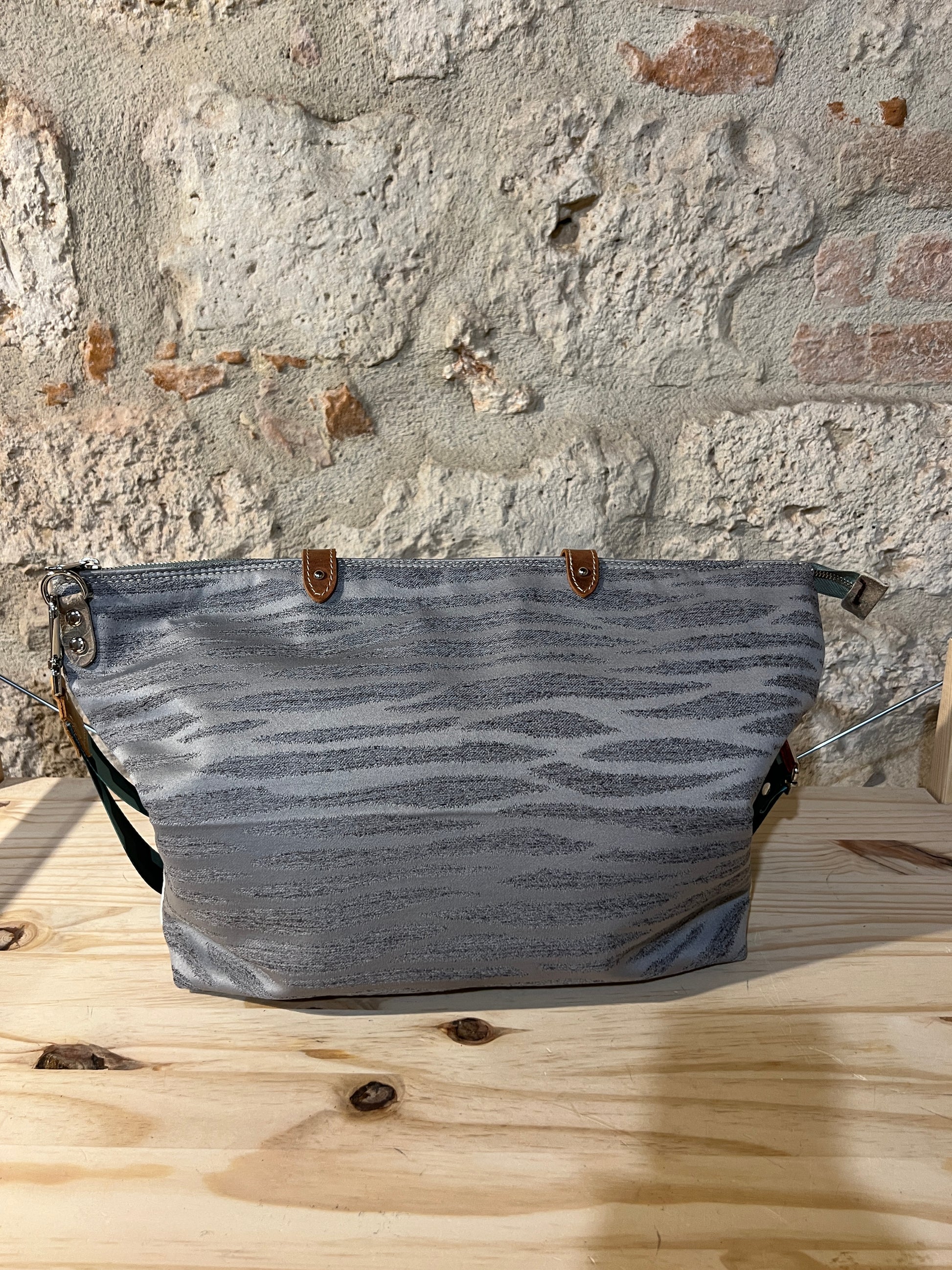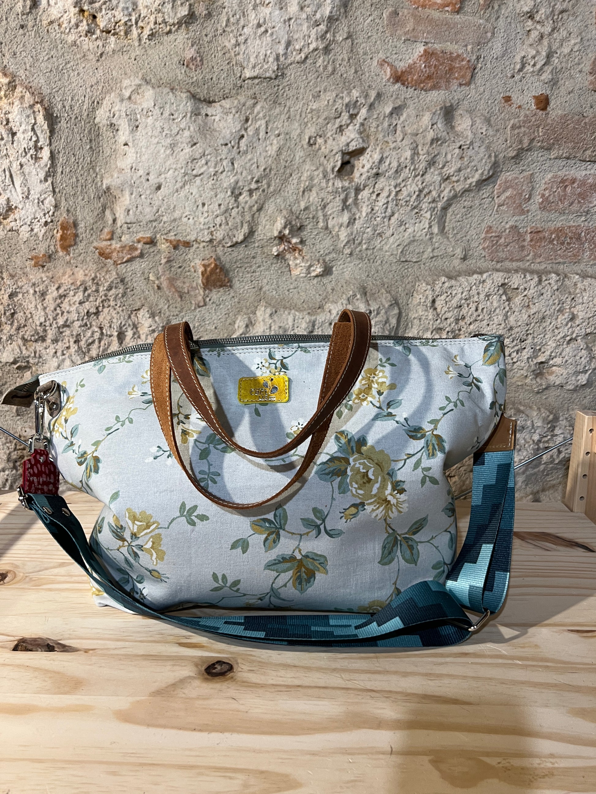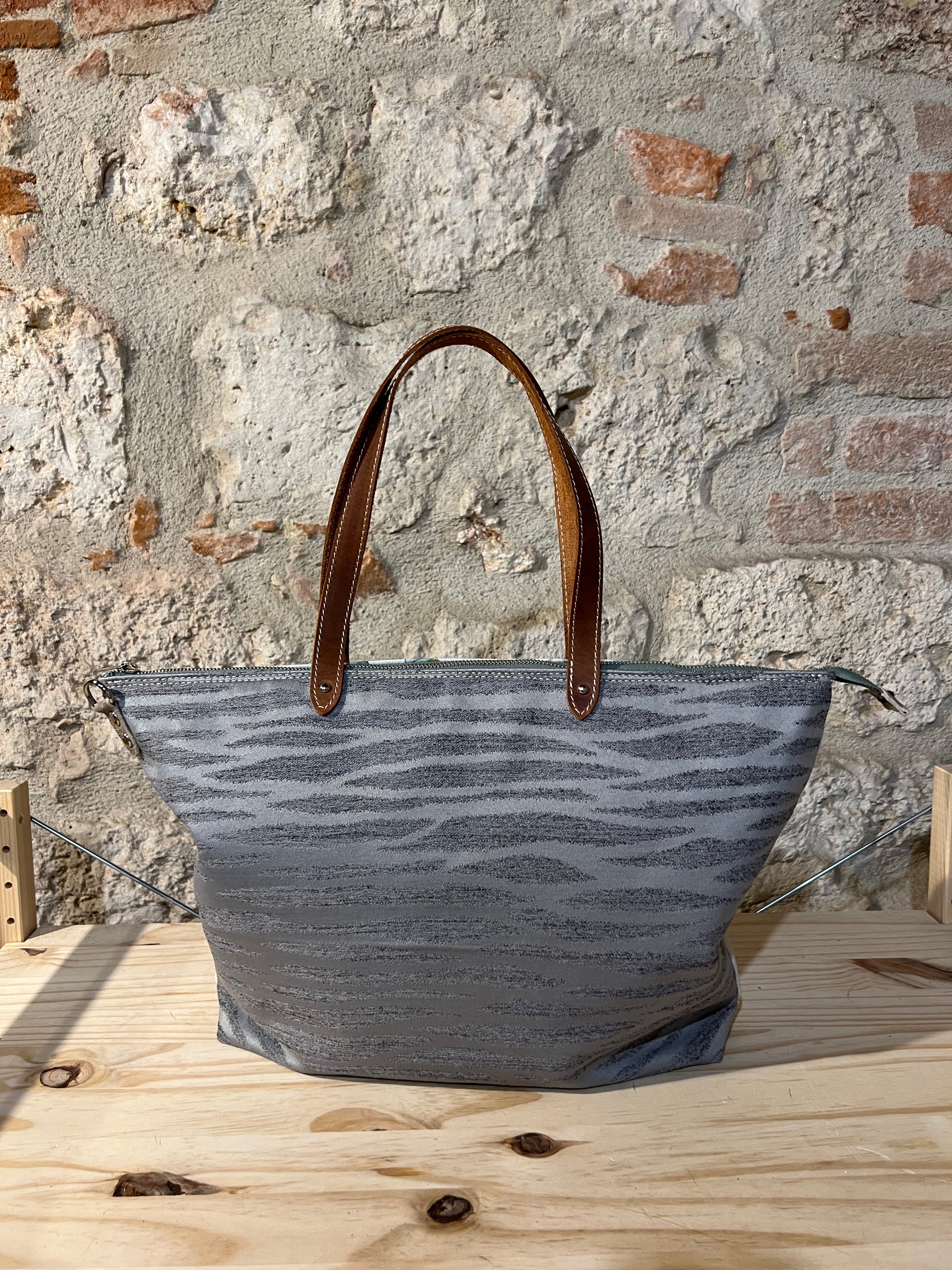 BORSA IN TESSUTO E MANICI E RIFINITURE IN PELLE