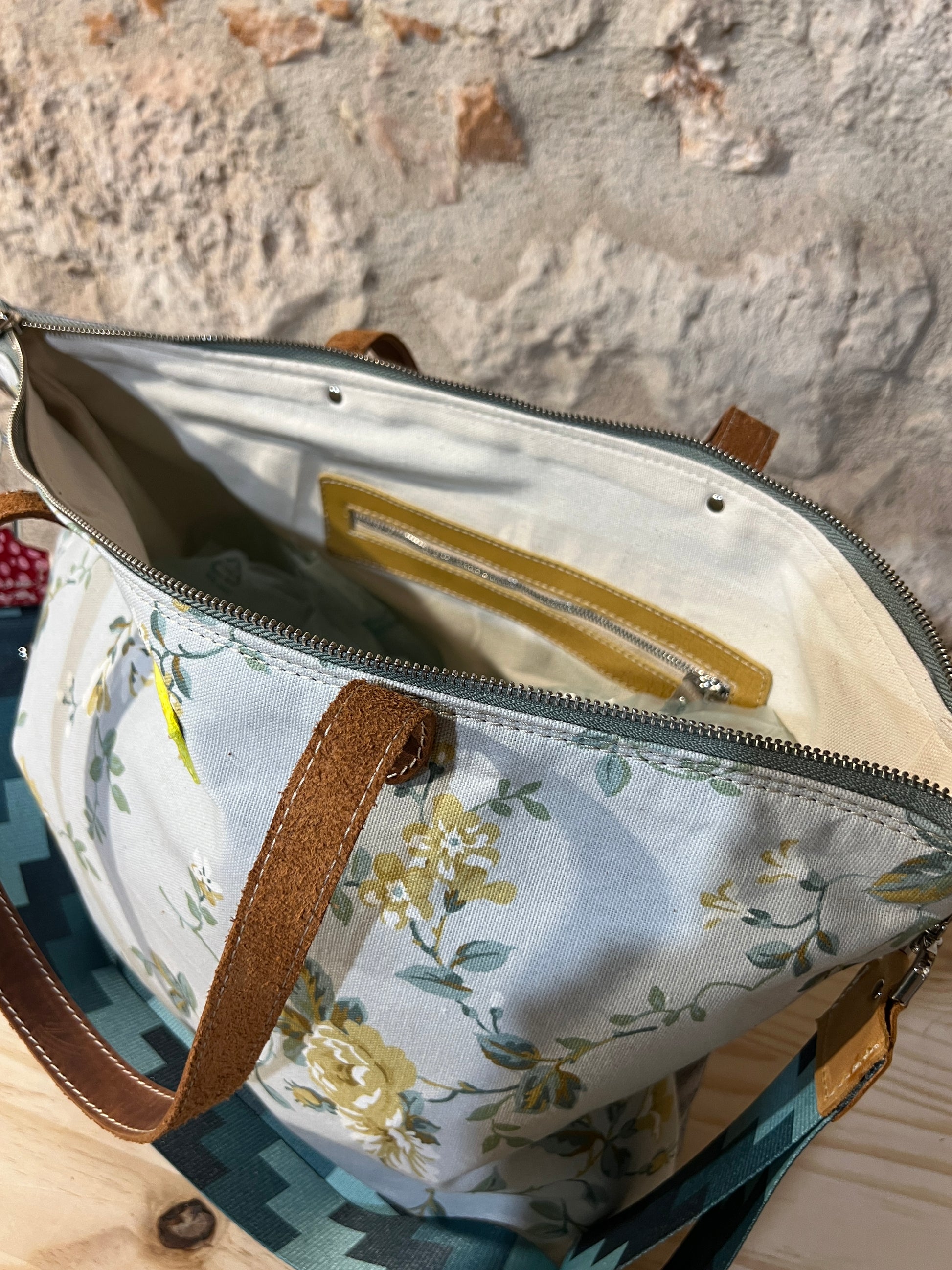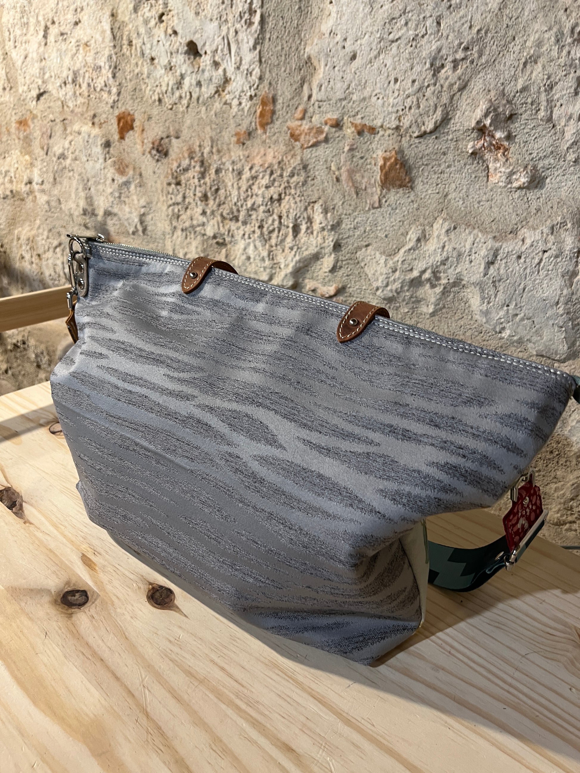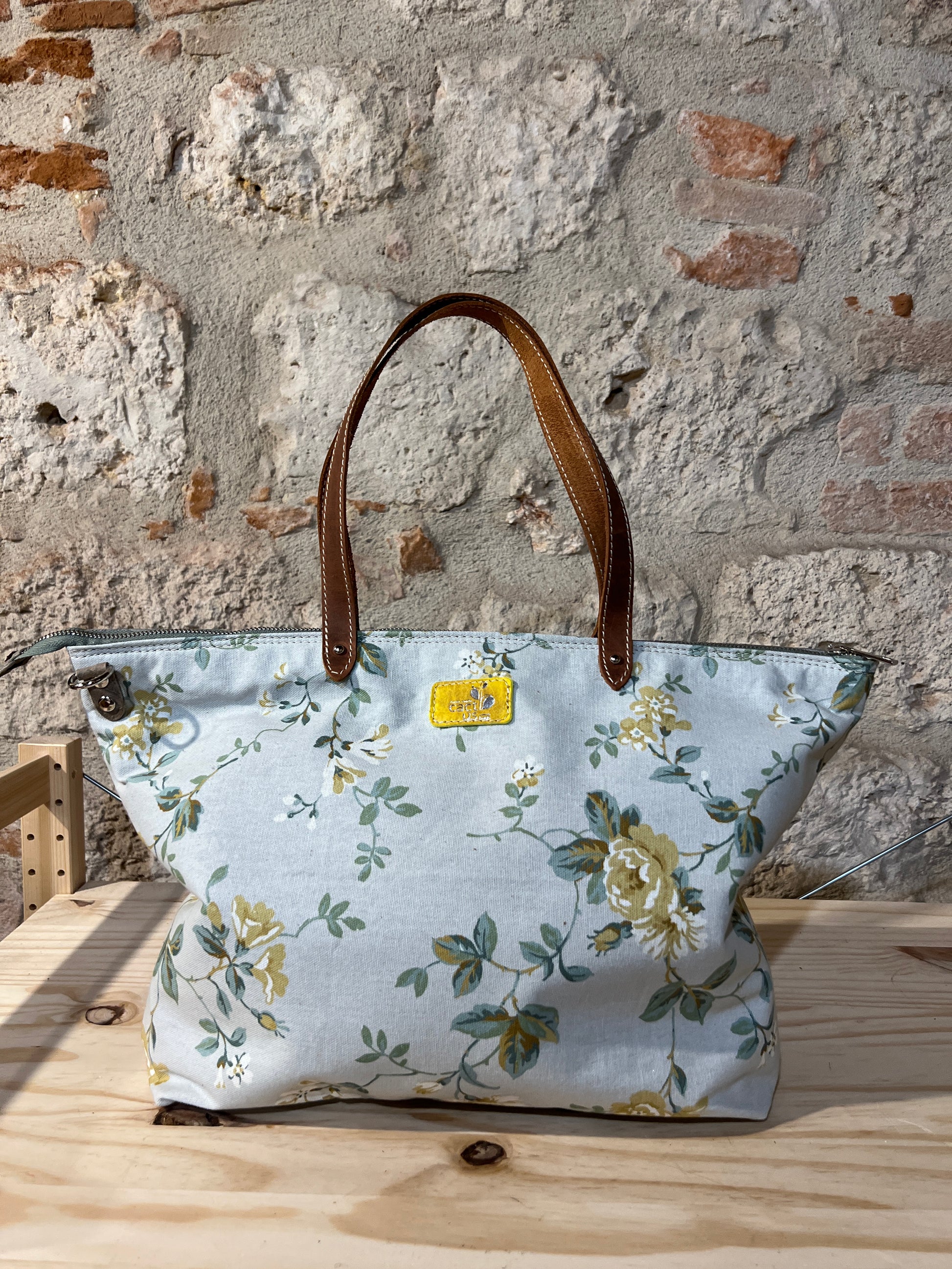 BORSA IN TESSUTO E MANICI E RIFINITURE IN PELLE