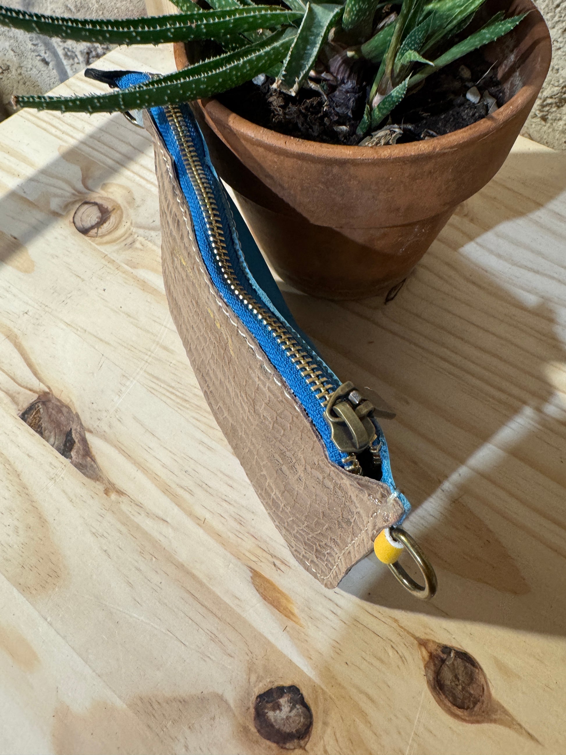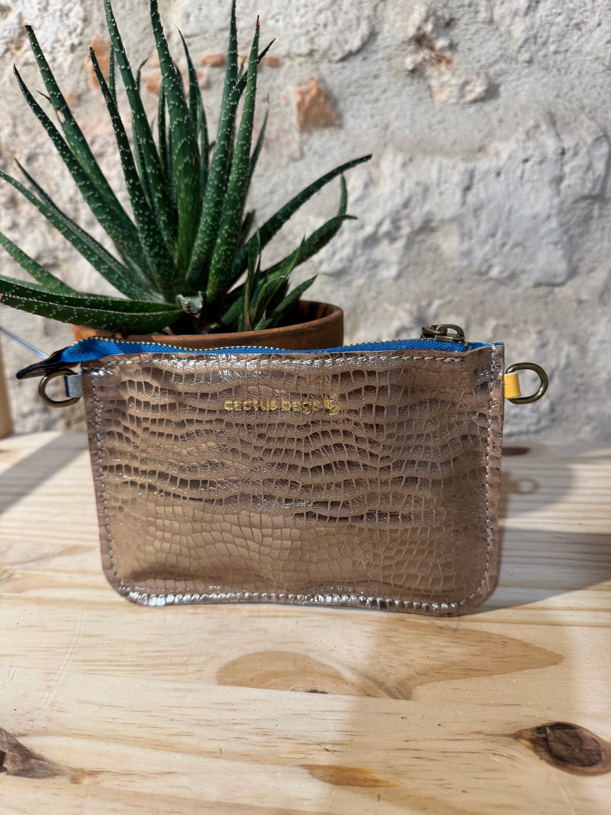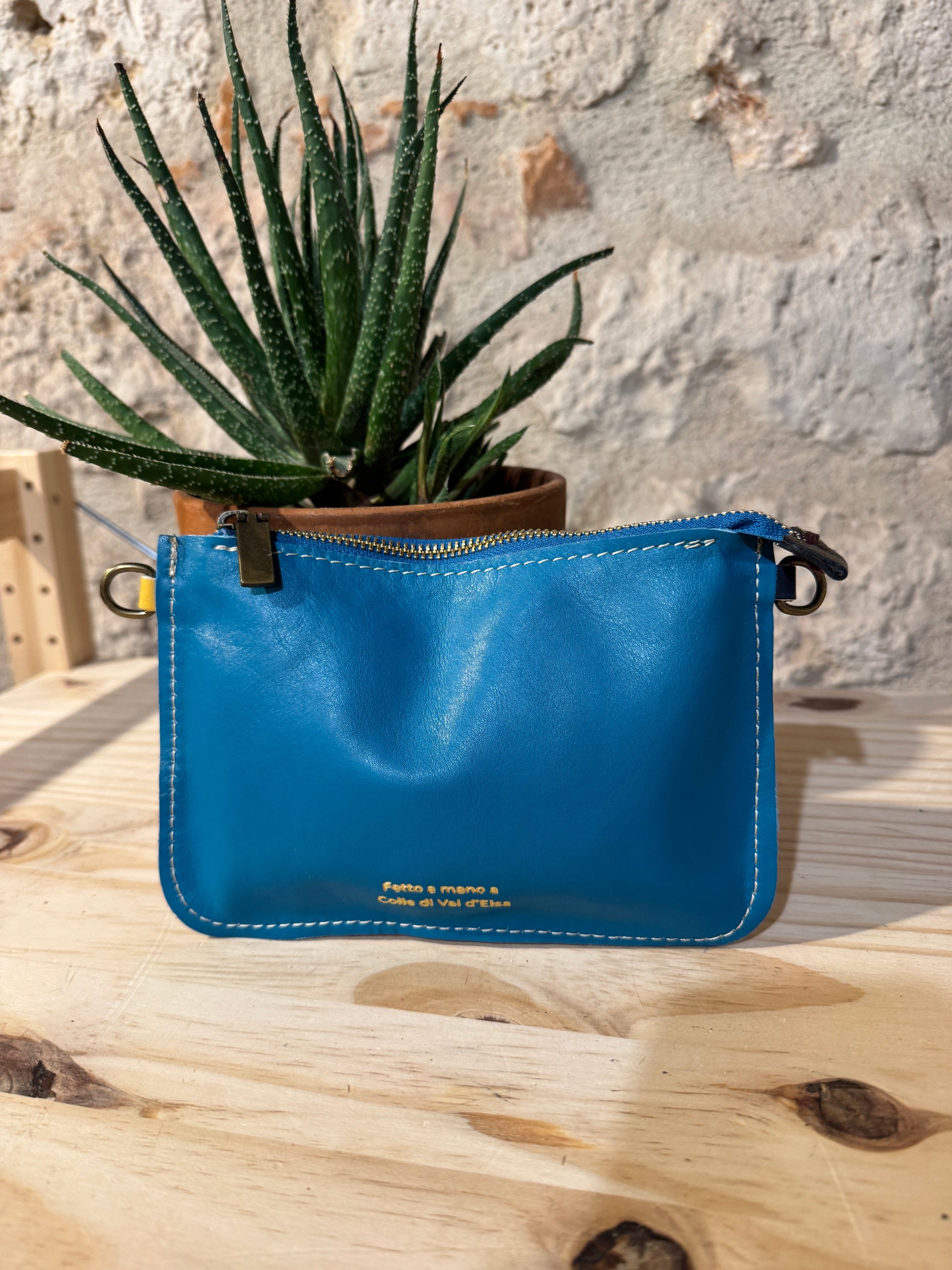 Completamente in pelle con la possibilità di realizzare una tracolla in metallo oppure con un polsino in pelle...