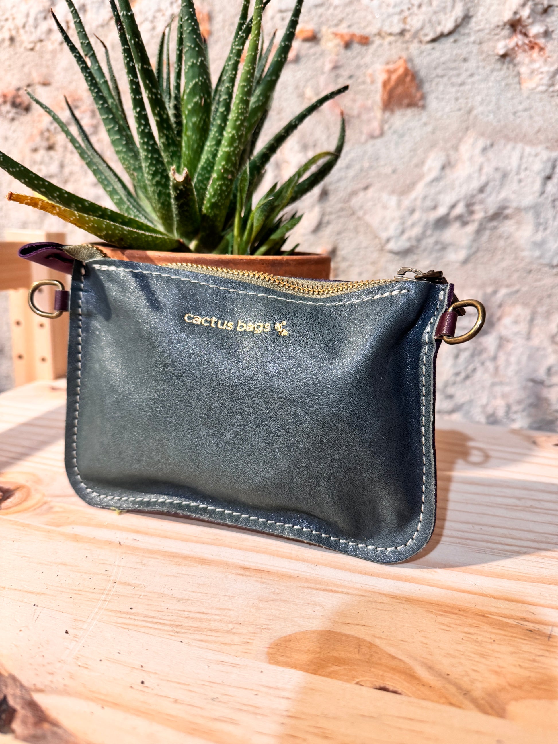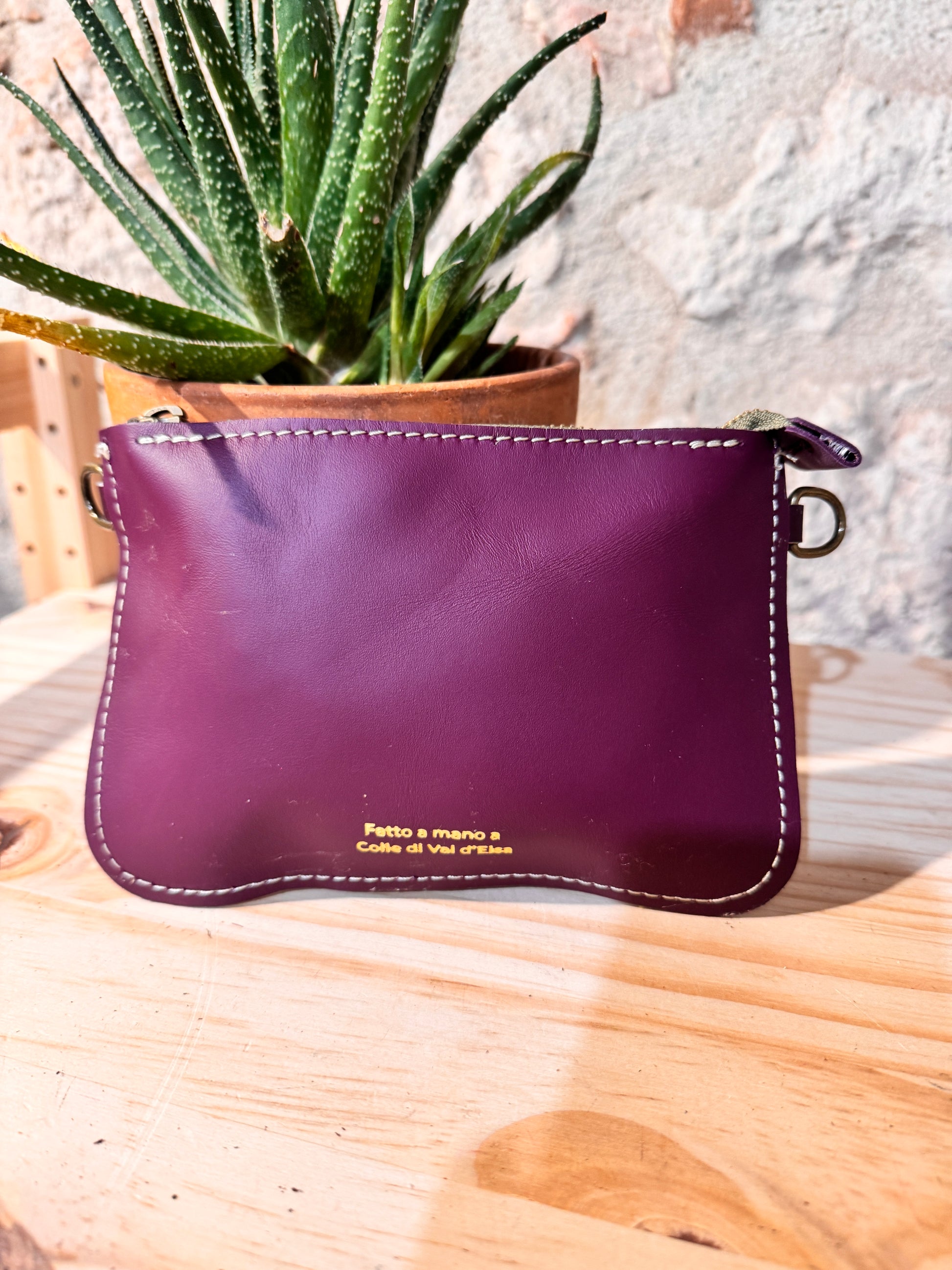 Completamente in pelle con la possibilità di realizzare una tracolla in metallo oppure con un polsino in pelle...