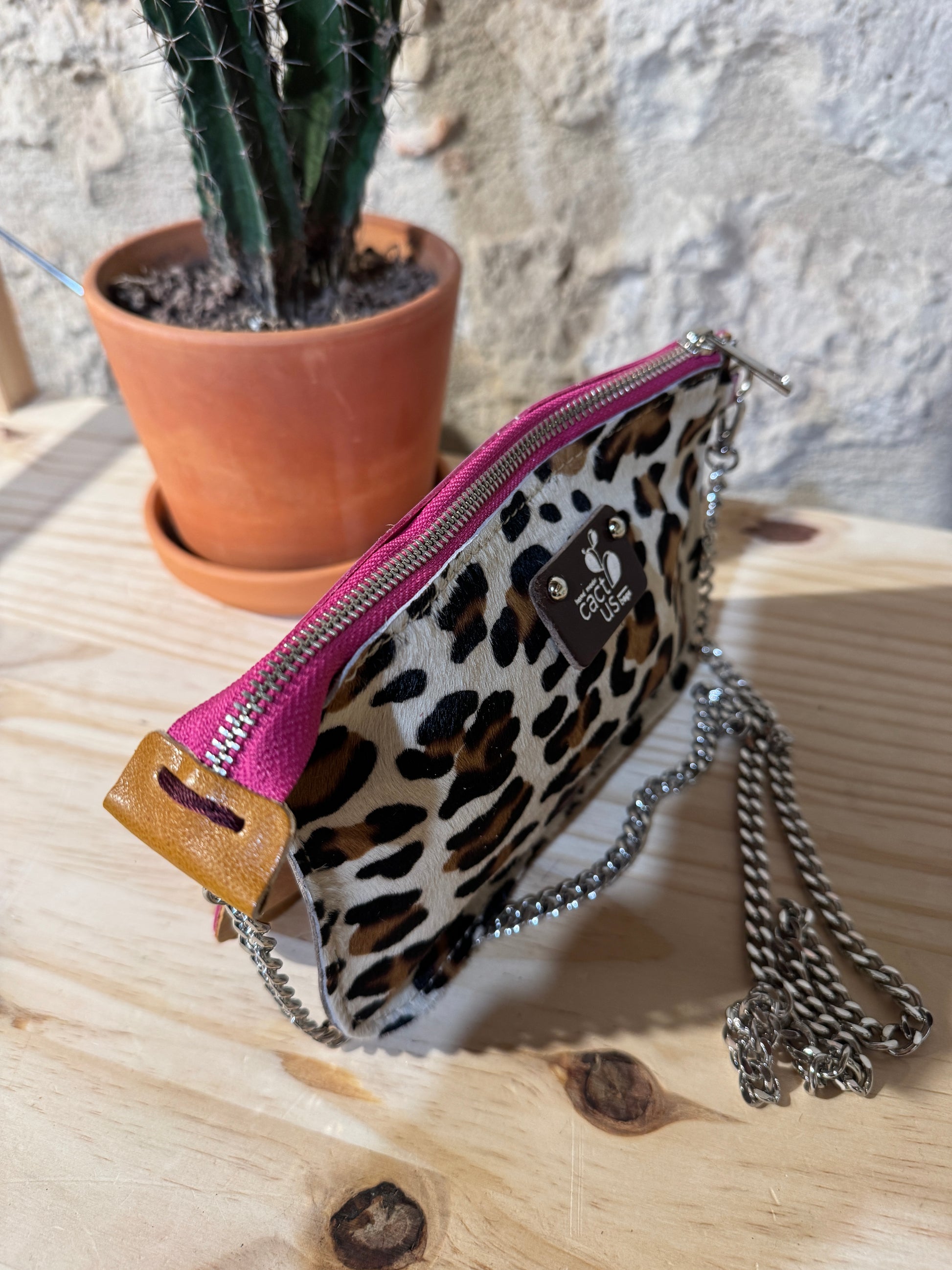 La pochette in pelle con tasca doppia, chiusa con cerniera.