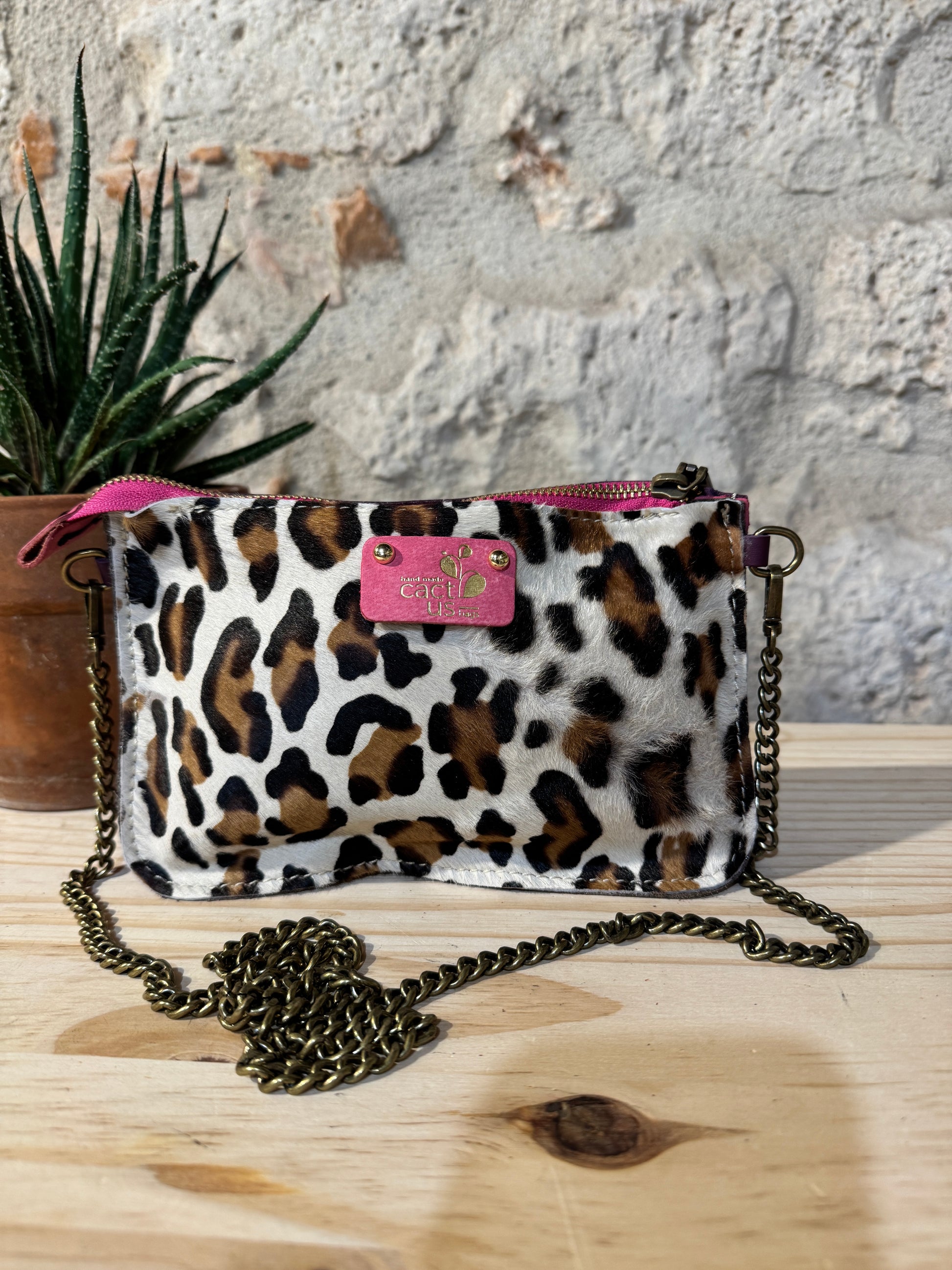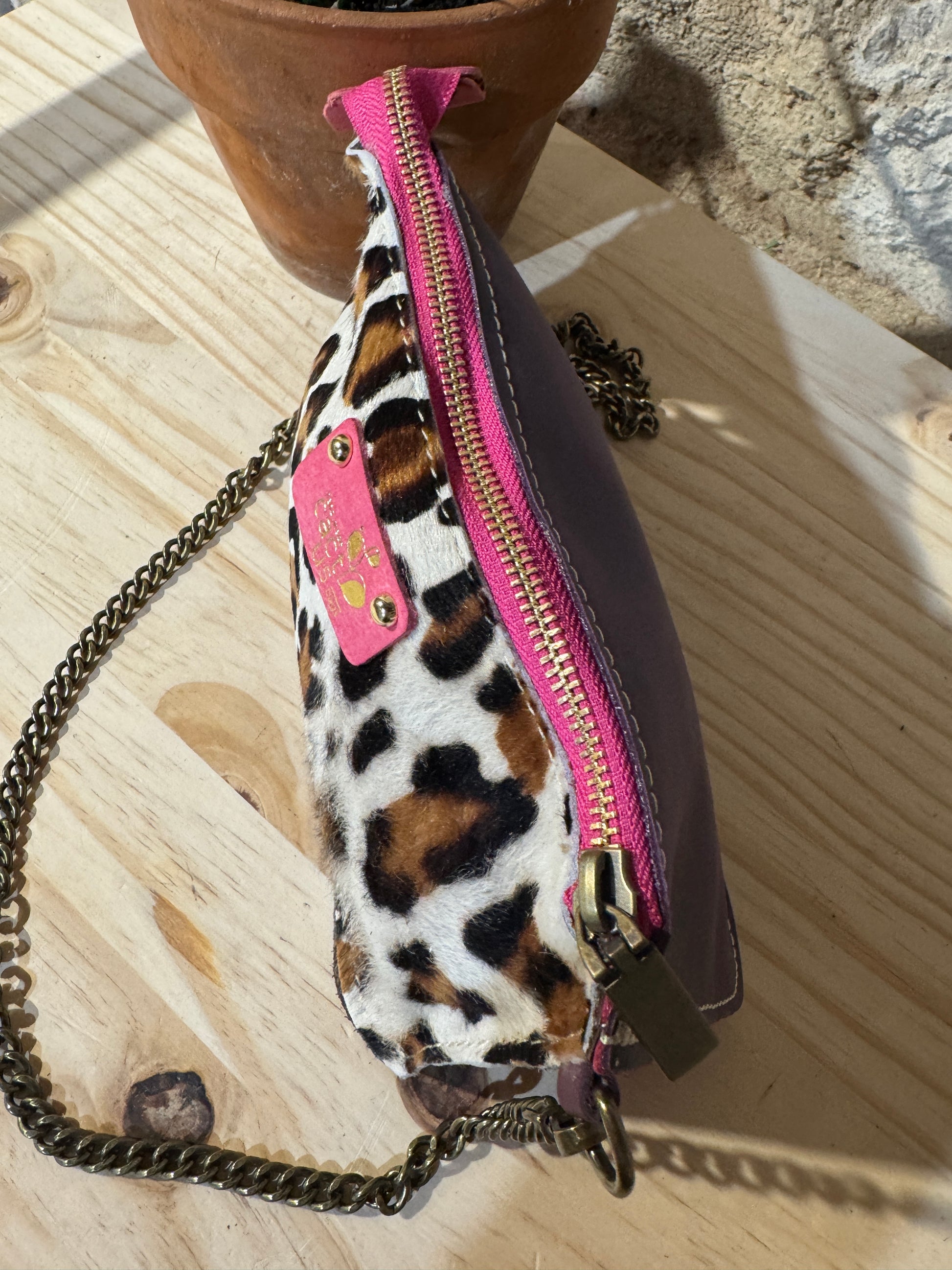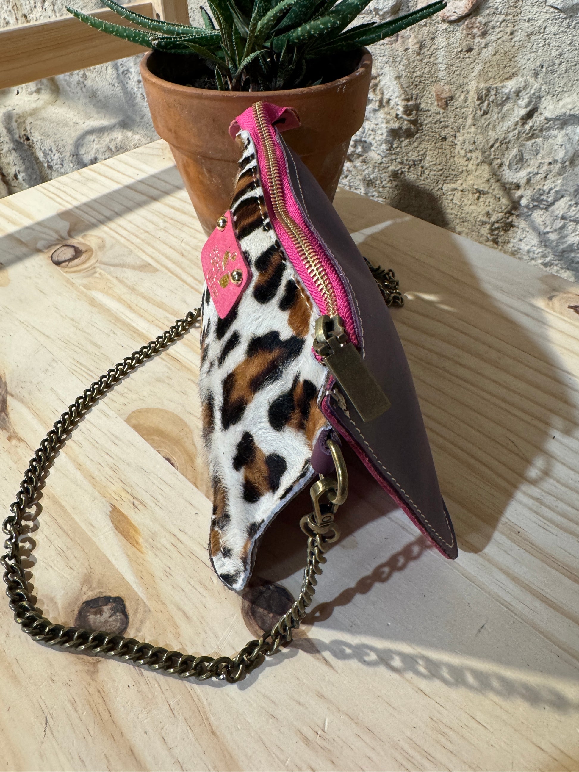 La pochette in pelle con tasca doppia, chiusa con cerniera.