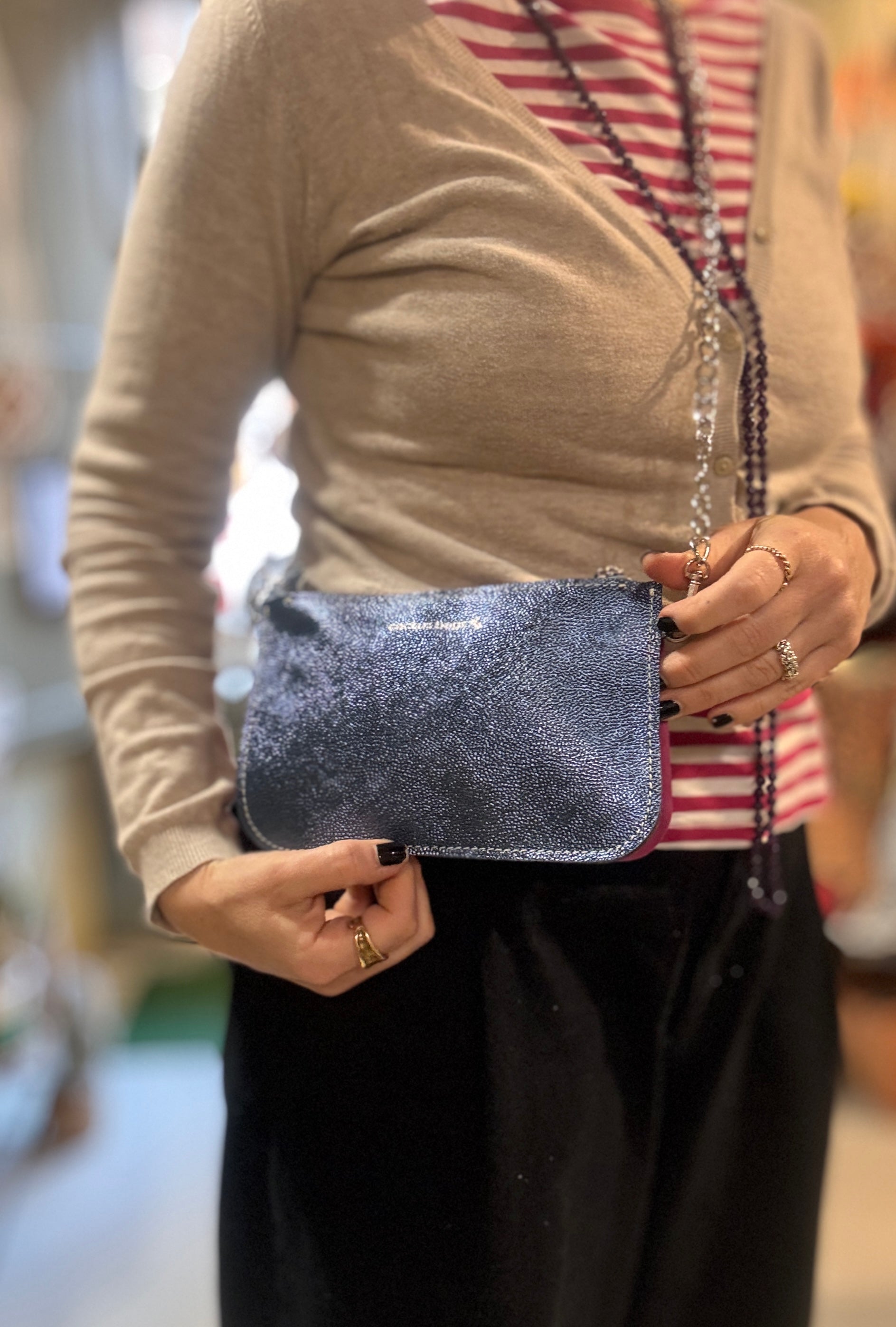 Quando non la utilizzi, riponila sempre nella sua sacca in cotone, per evitare il contatto con luce e umidità, così che la pelle possa mantenere la sua bellezza nel tempo.