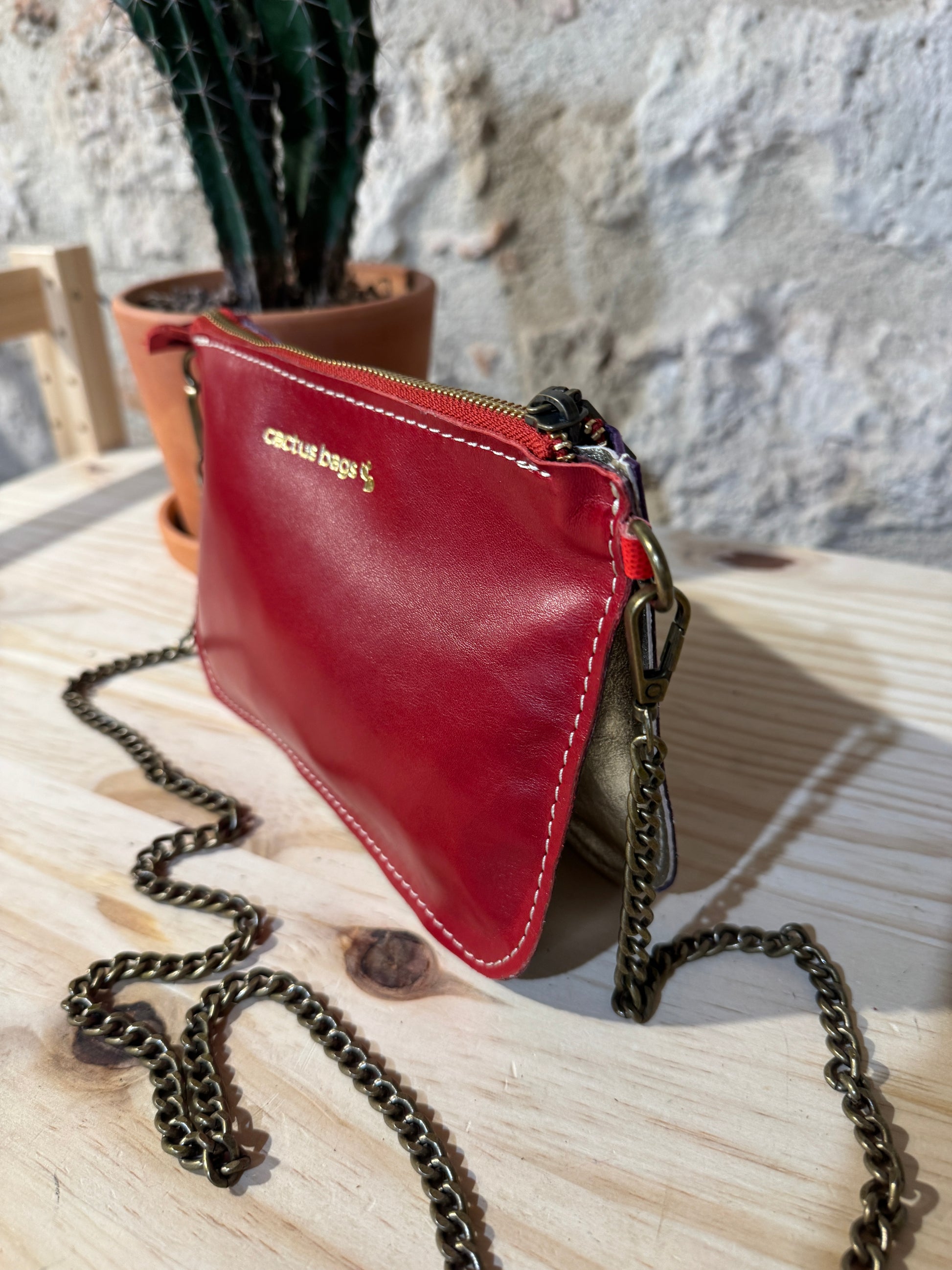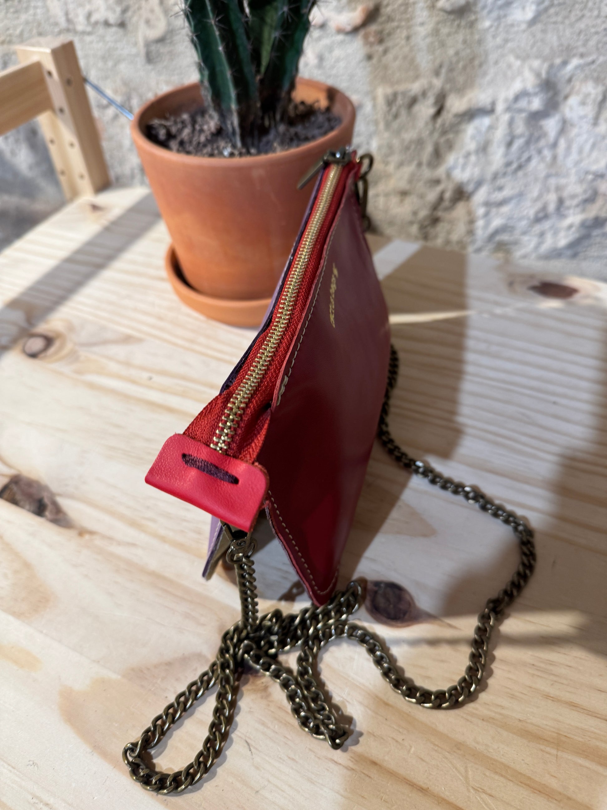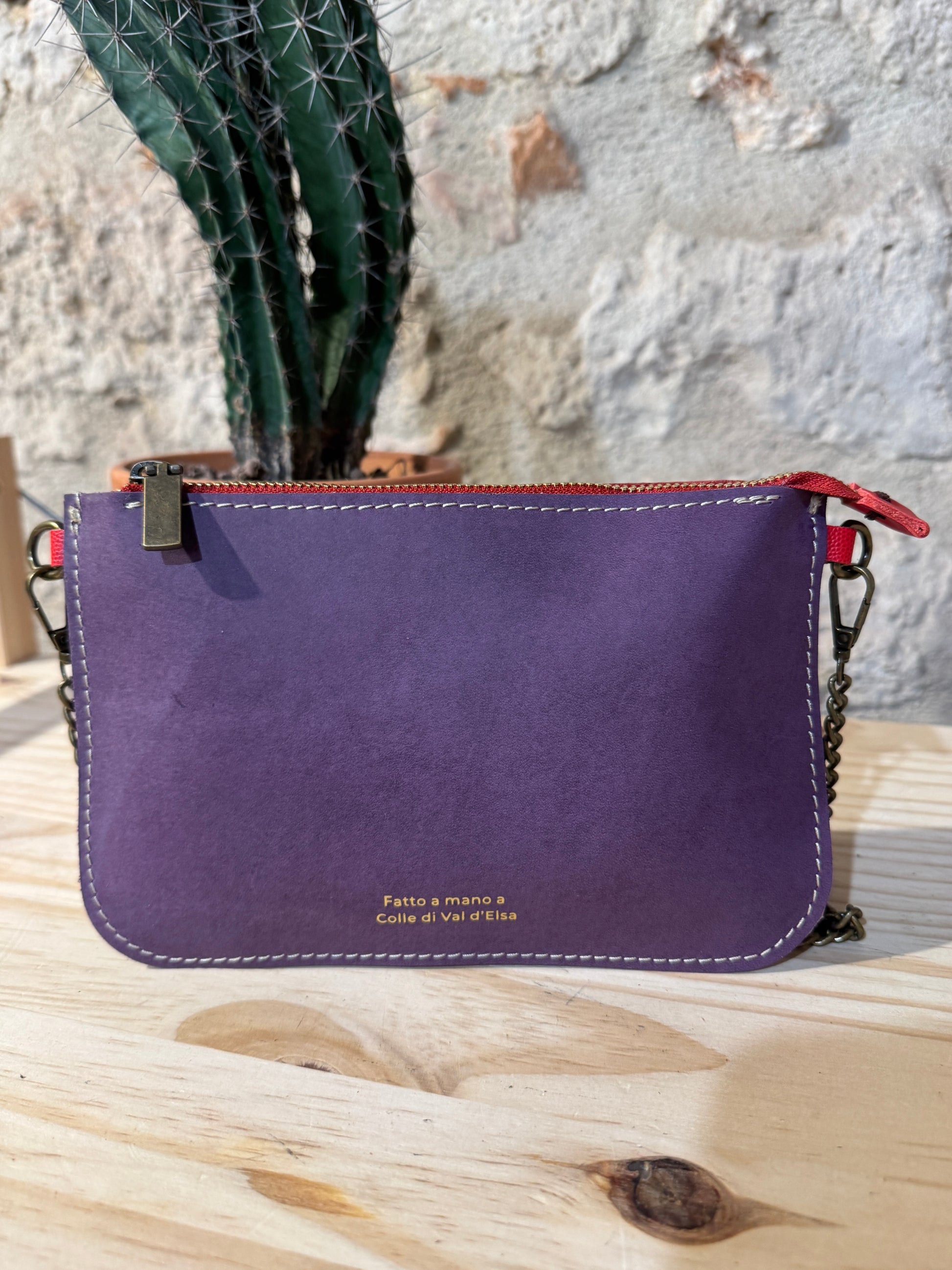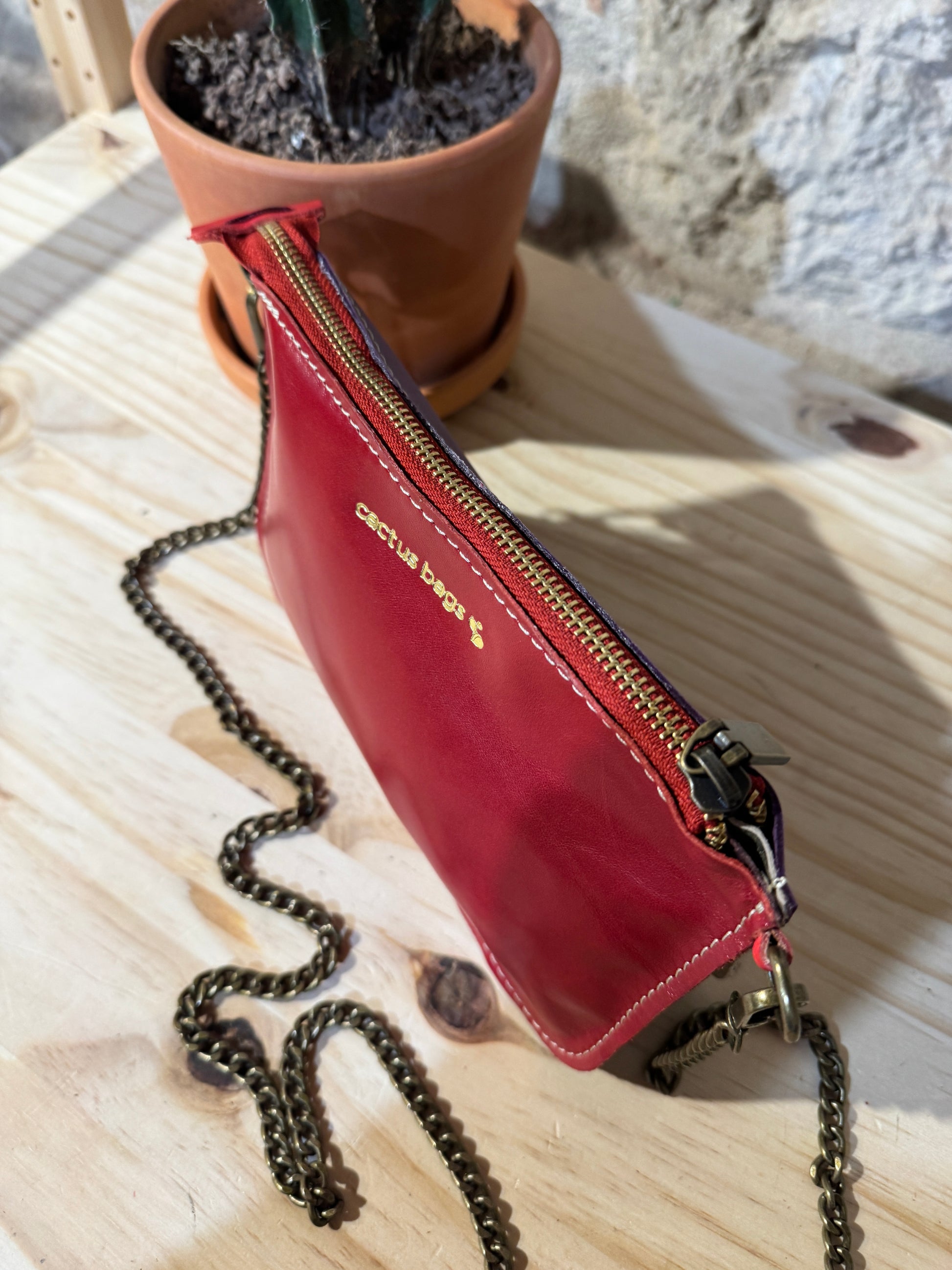 La pochette in pelle con tasca doppia, chiusa con cerniera.