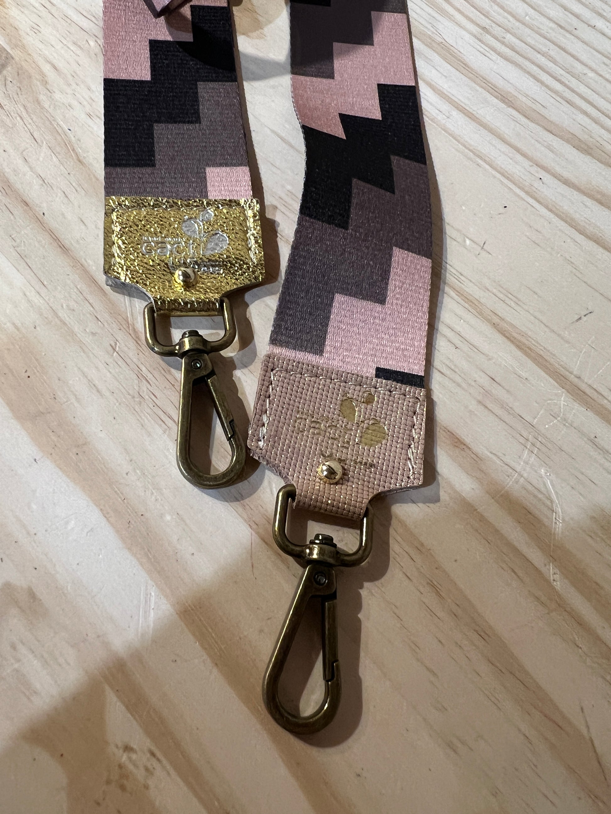 Tracolla in tessuto con finalini in pelle.