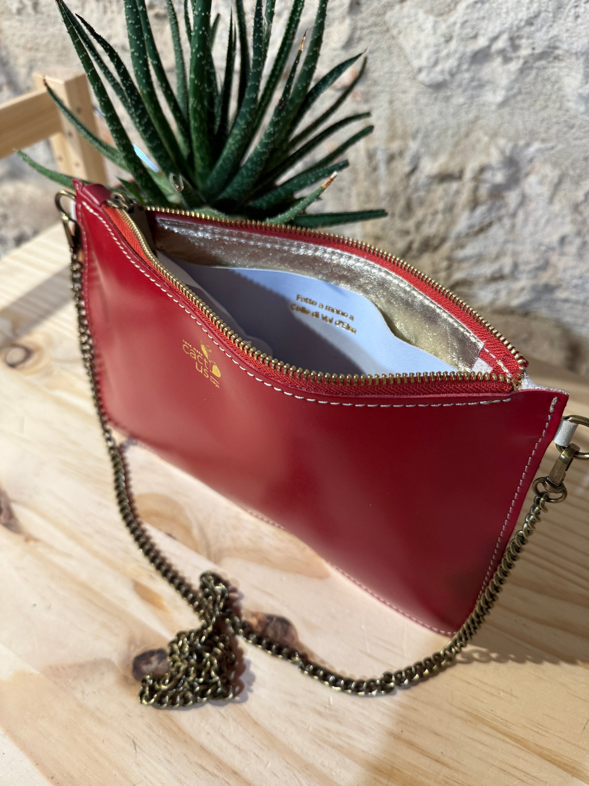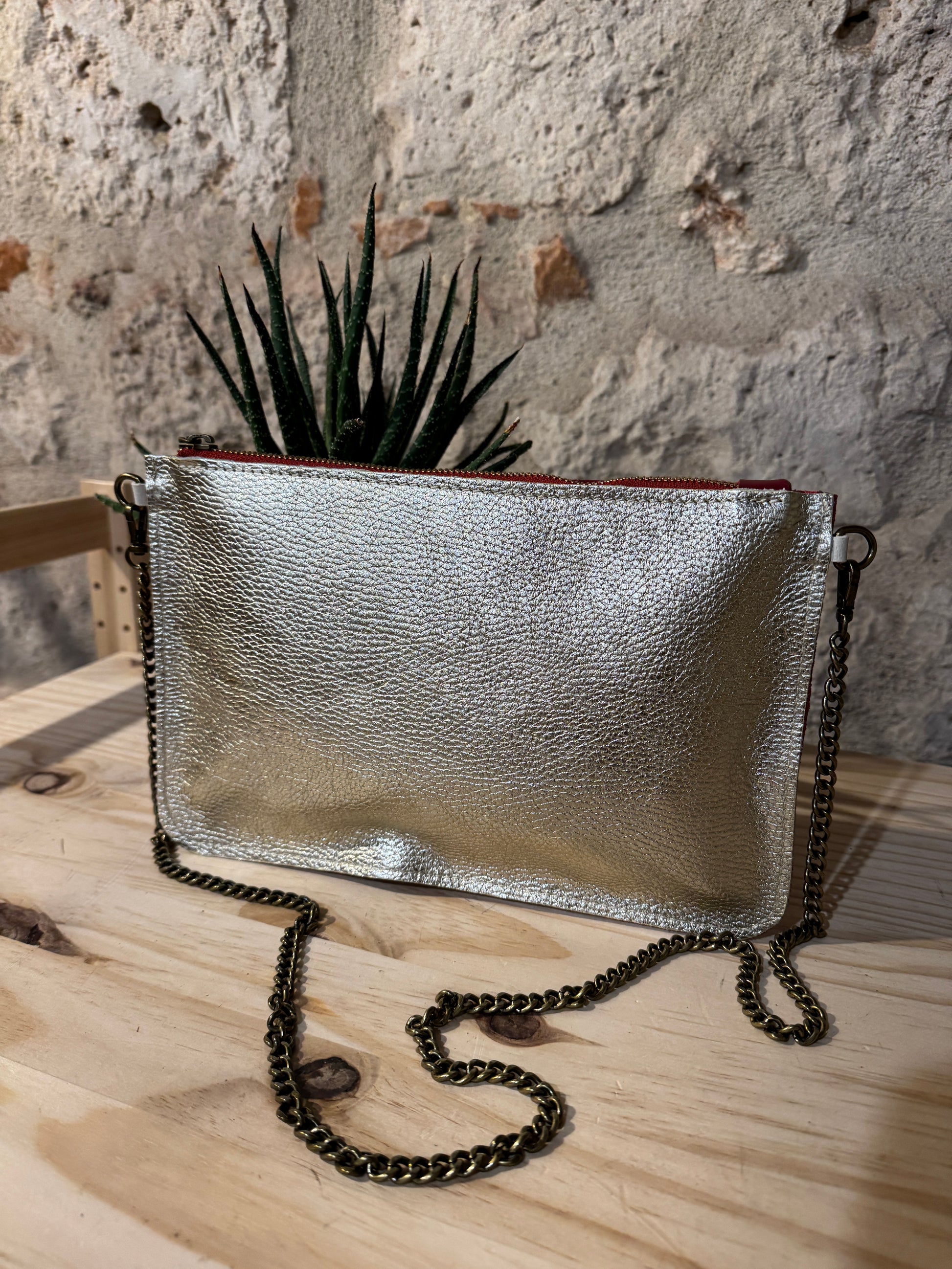 Completamente in pelle, con una tasca a toppa interna perfetta per il cellulare, e da oggi anche con l'opzione, scegli la tracolla che preferisci, in Pelle oppure in Metallo..