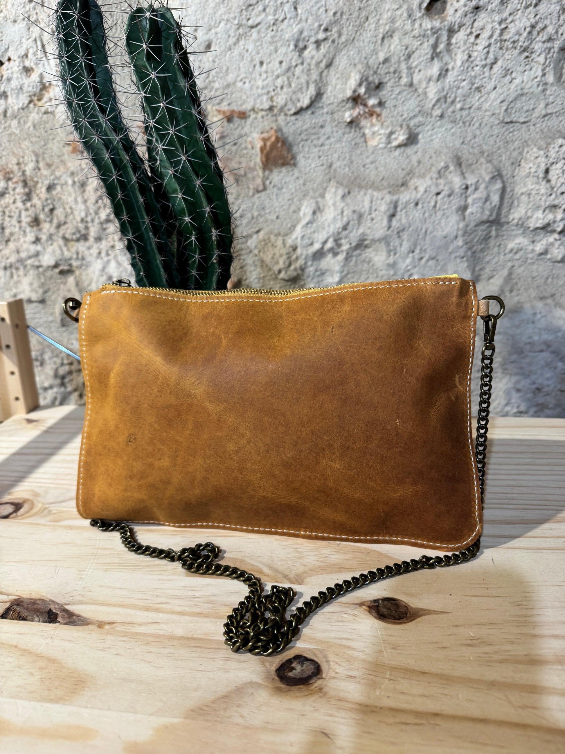 Completamente in pelle, con una tasca a toppa interna perfetta per il cellulare, e da oggi anche con l'opzione, scegli la tracolla che preferisci, in Pelle oppure in Metallo..