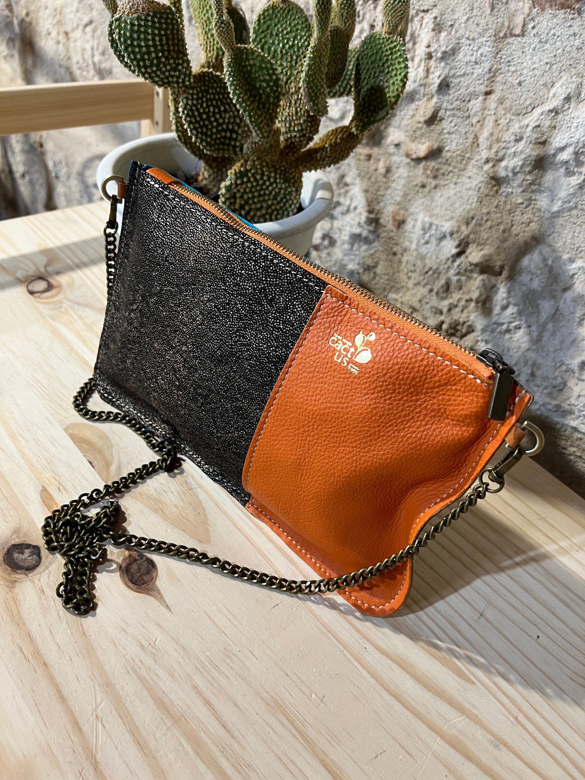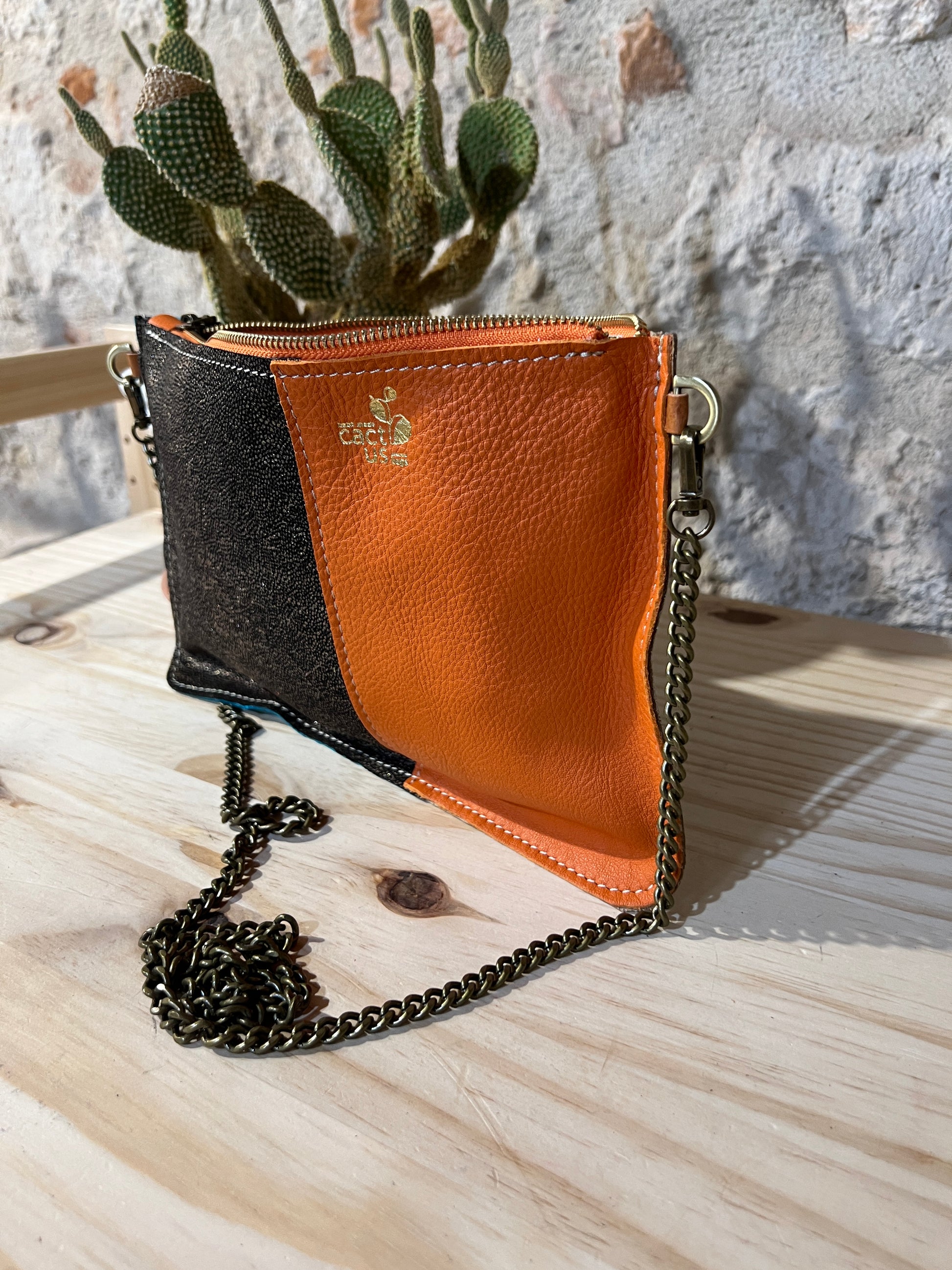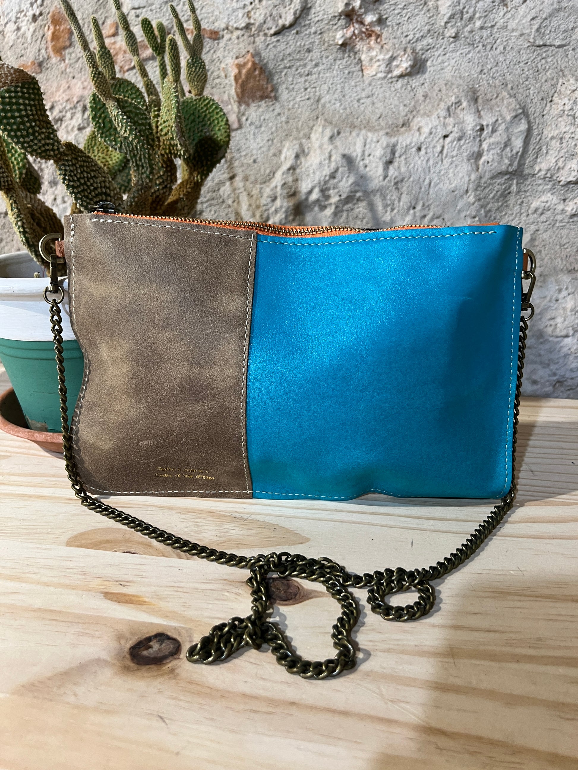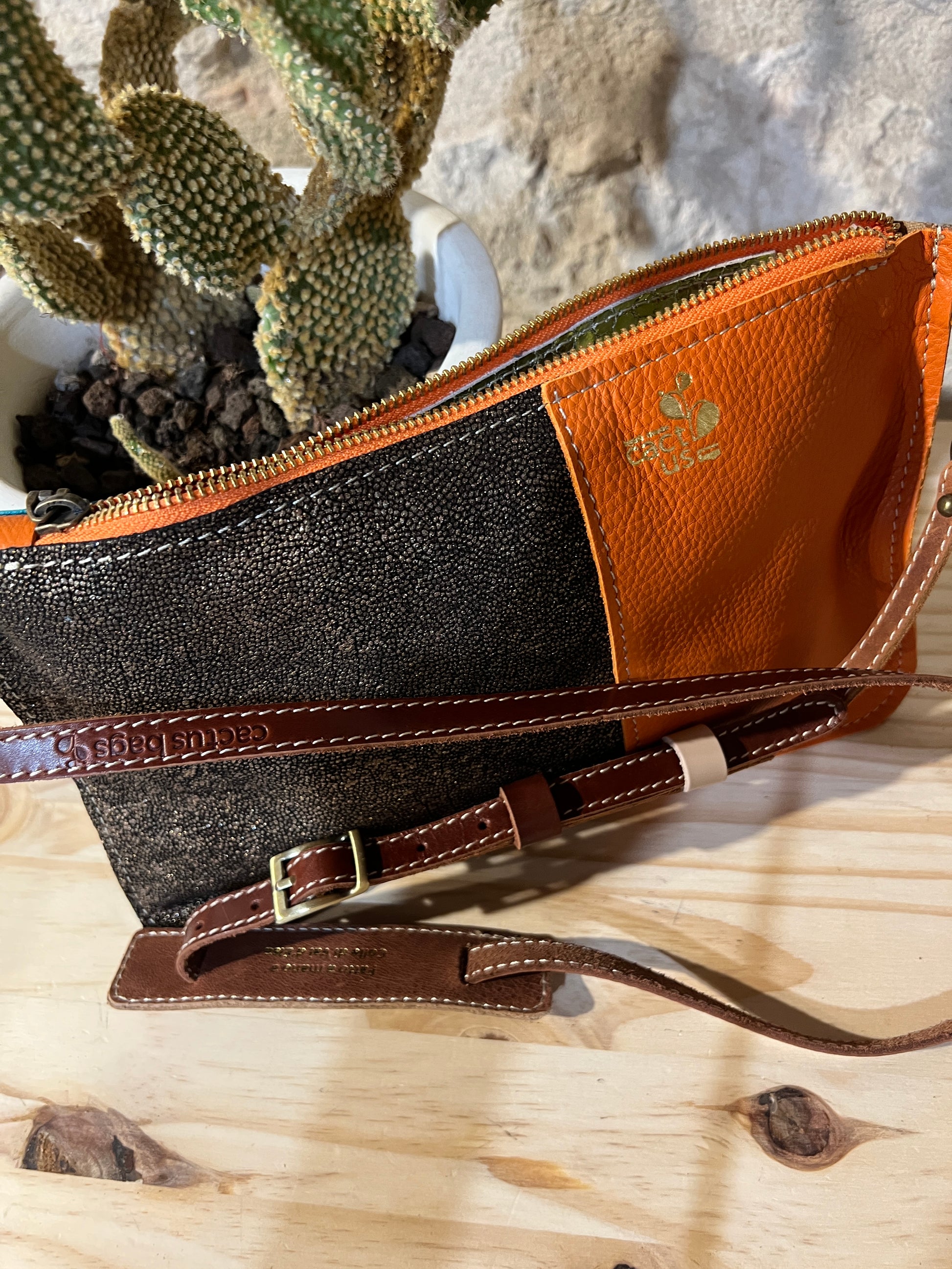 Completamente in pelle, con una tasca a toppa interna perfetta per il cellulare, e da oggi anche con l'opzione, scegli la tracolla che preferisci, in Pelle oppure in Metallo..