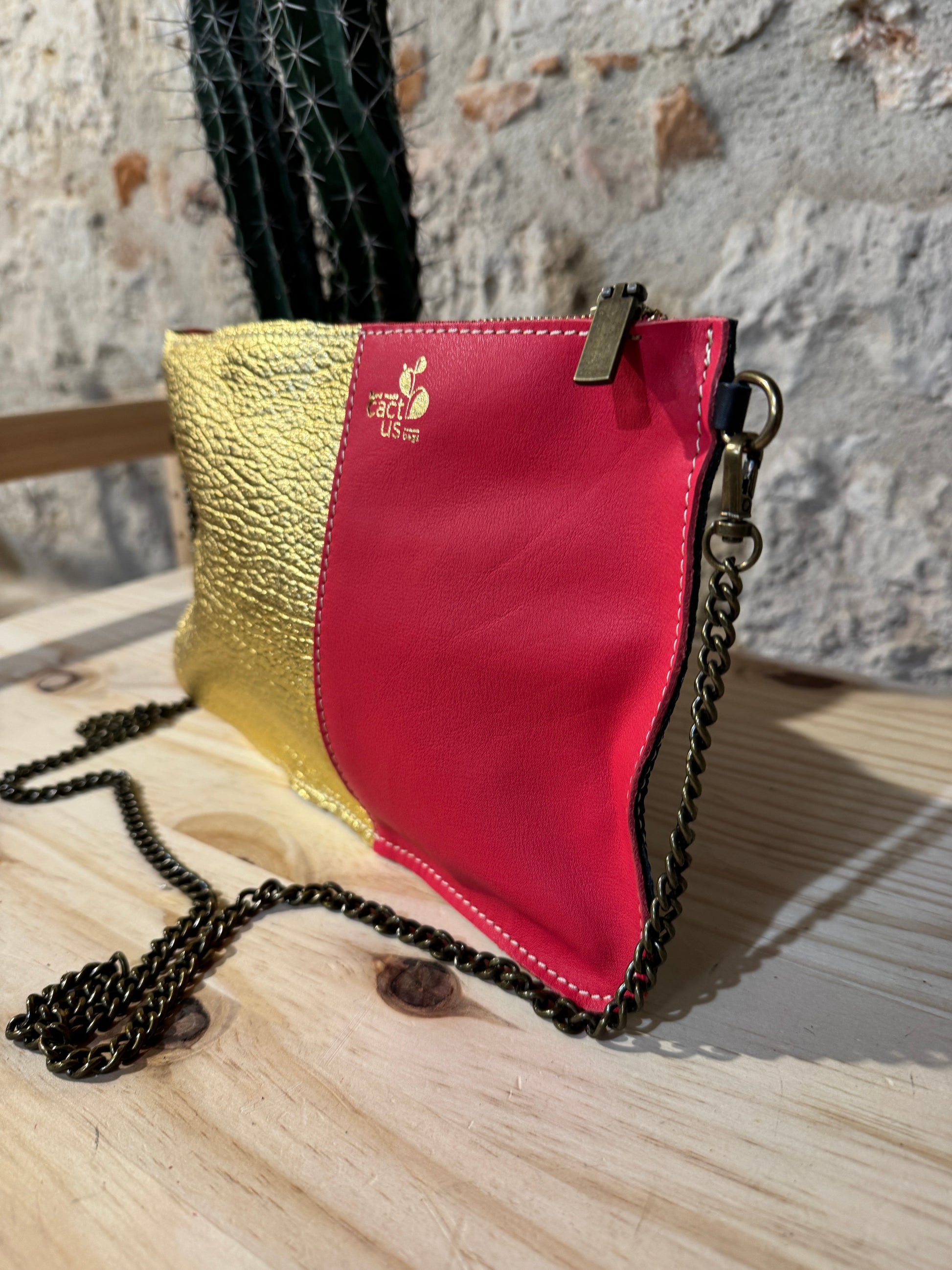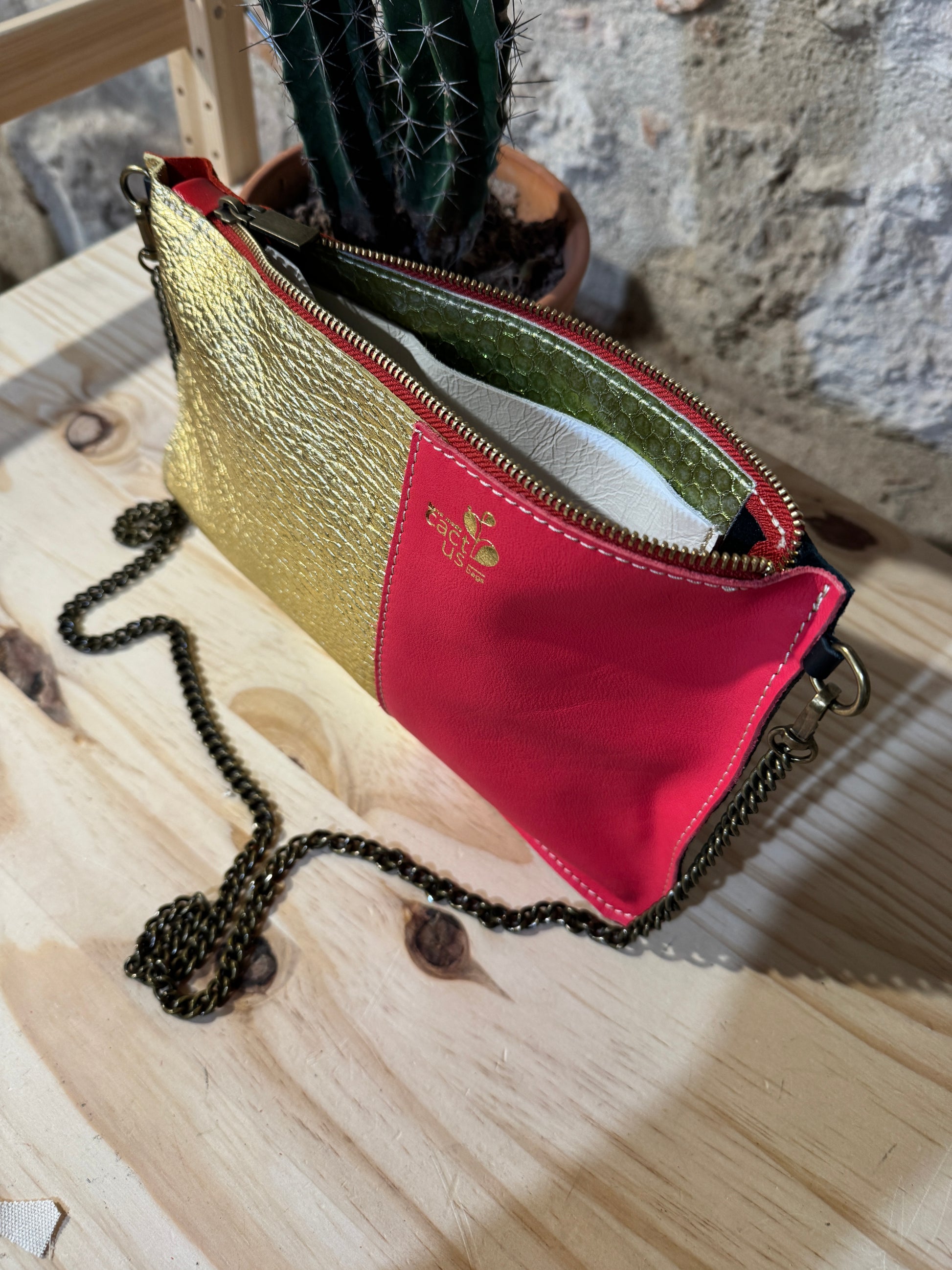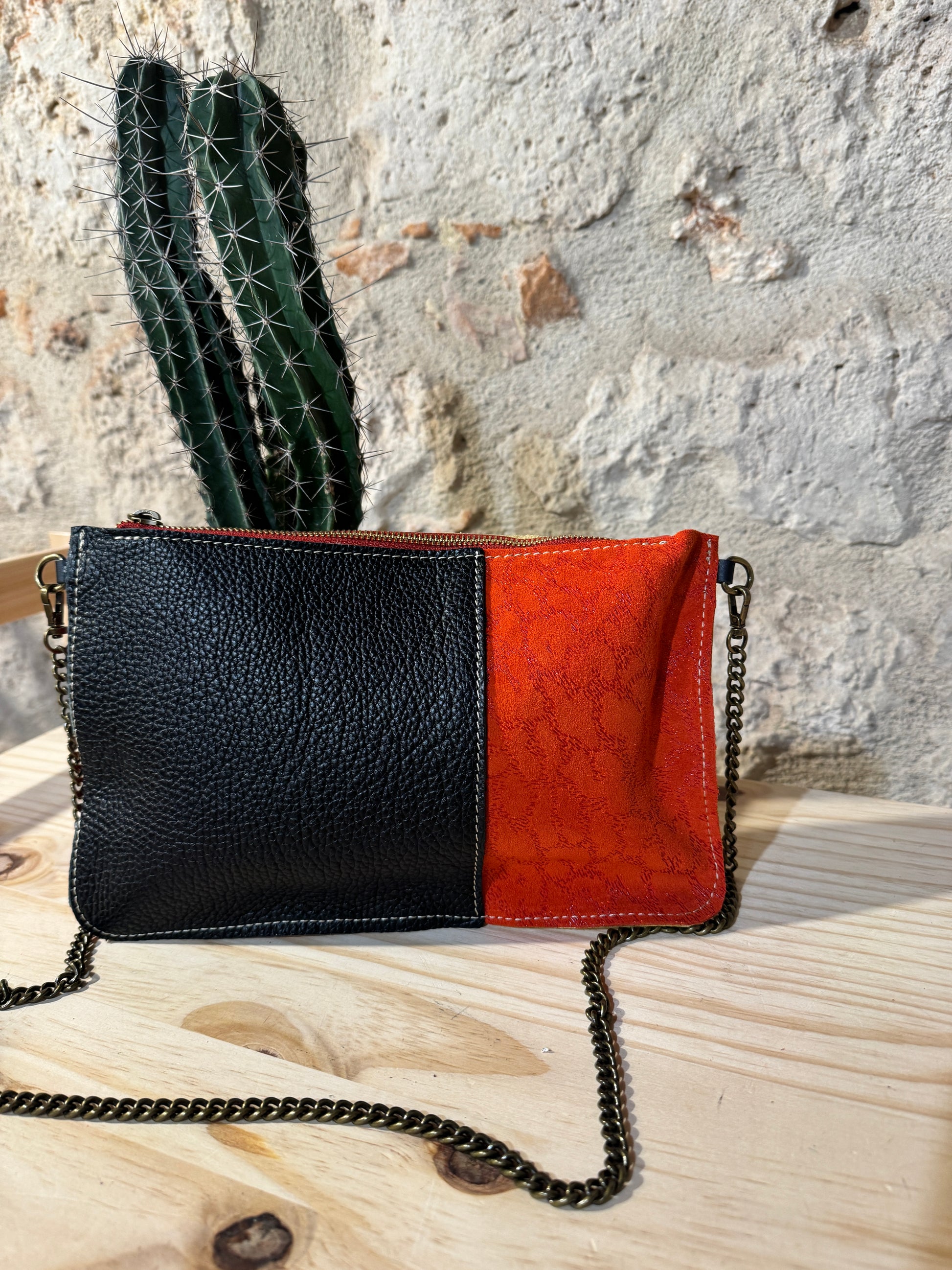 Completamente in pelle, con una tasca a toppa interna perfetta per il cellulare, e da oggi anche con l'opzione, scegli la tracolla che preferisci, in Pelle oppure in Metallo..